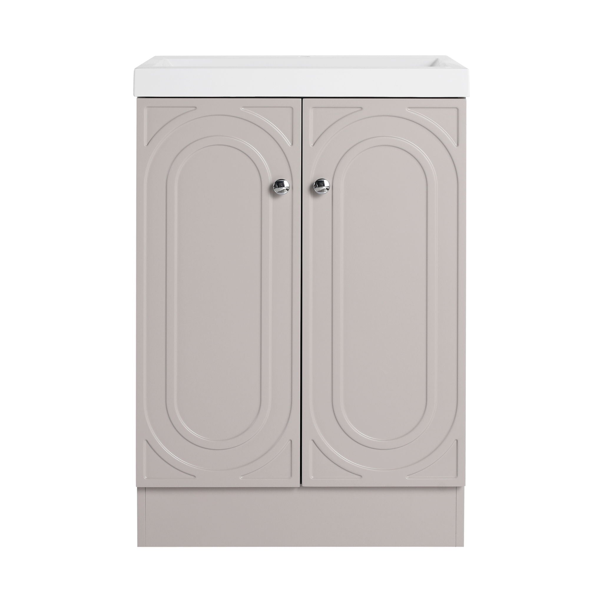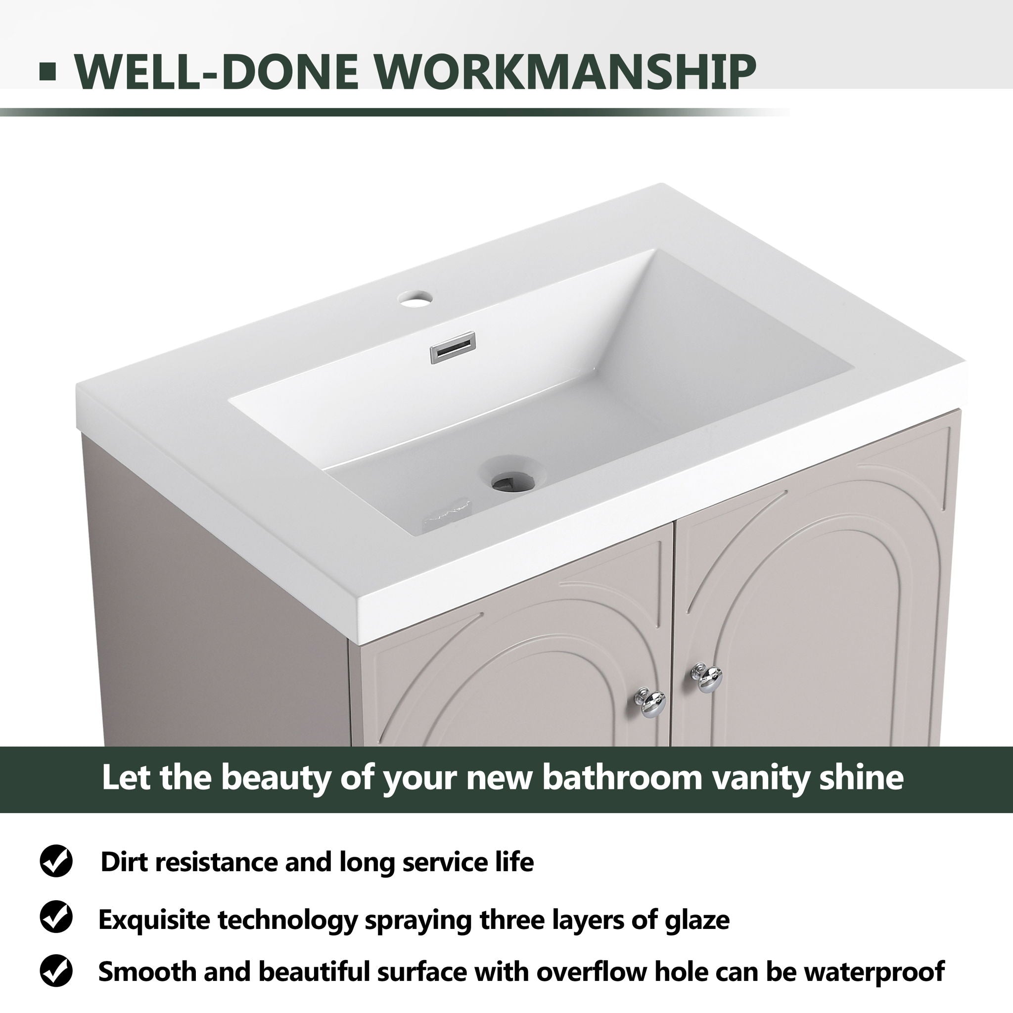 Modern Style Freestanding Bathroom Vanity With White Resin Sink & Soft Close Cabinet Doors - Khaki23.6"W x 19.7"D x 35.4"H - 72.47 lb