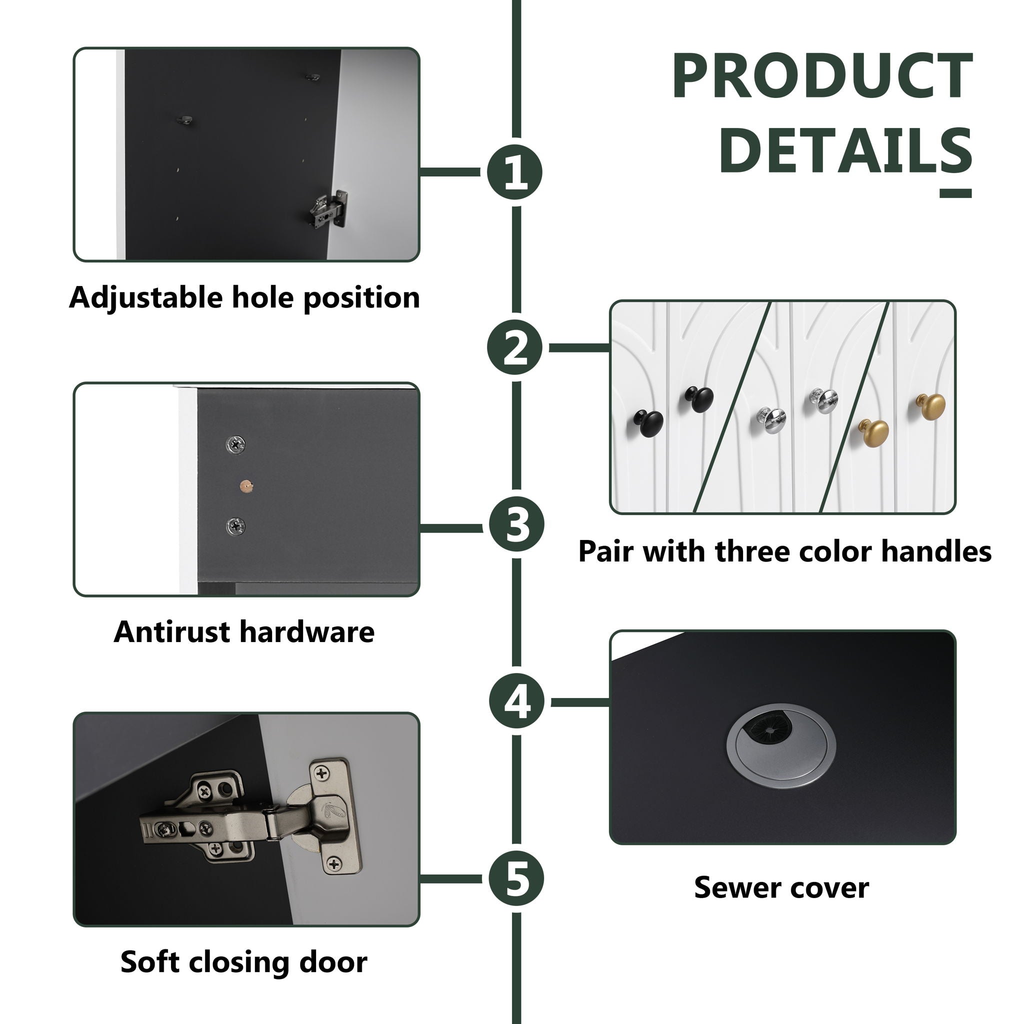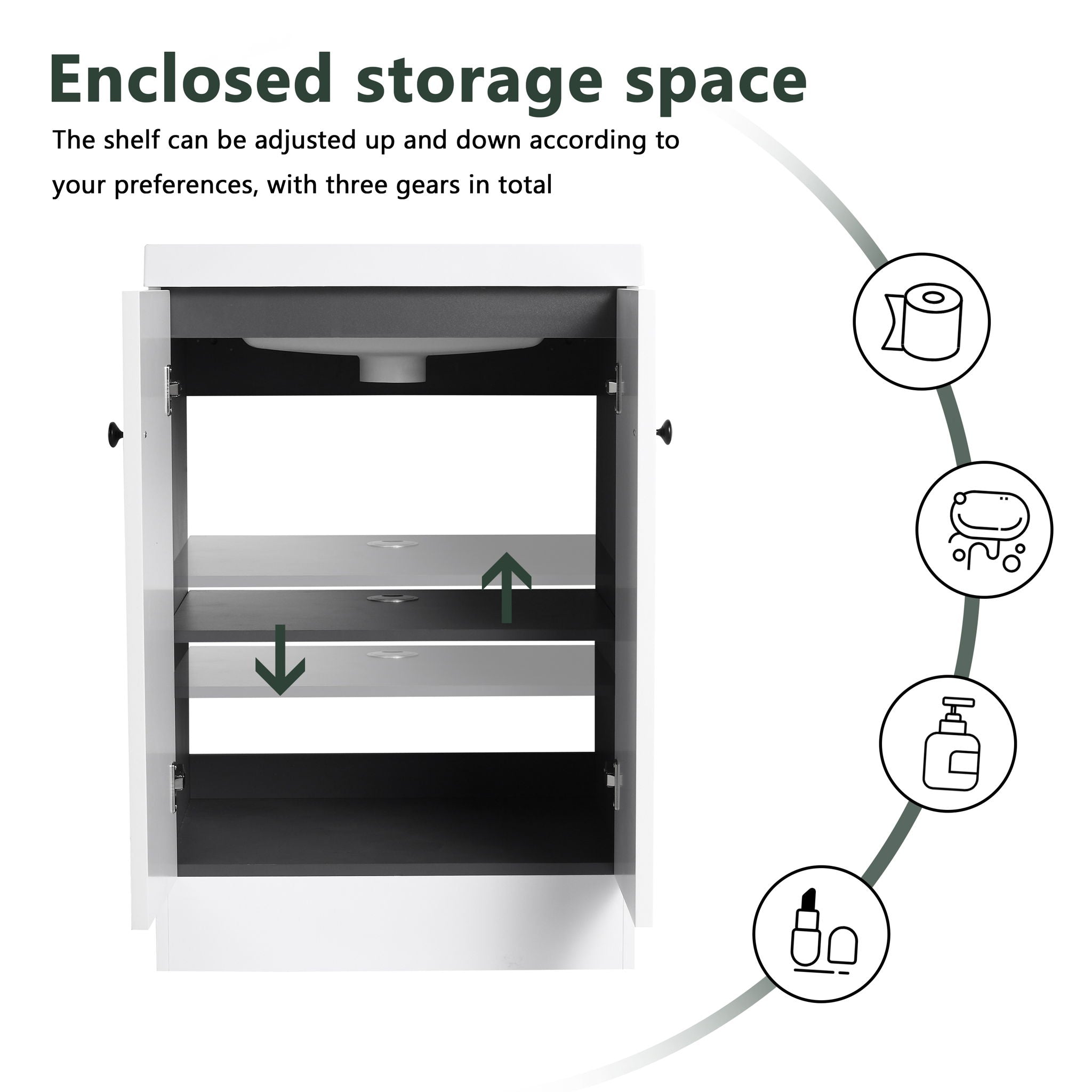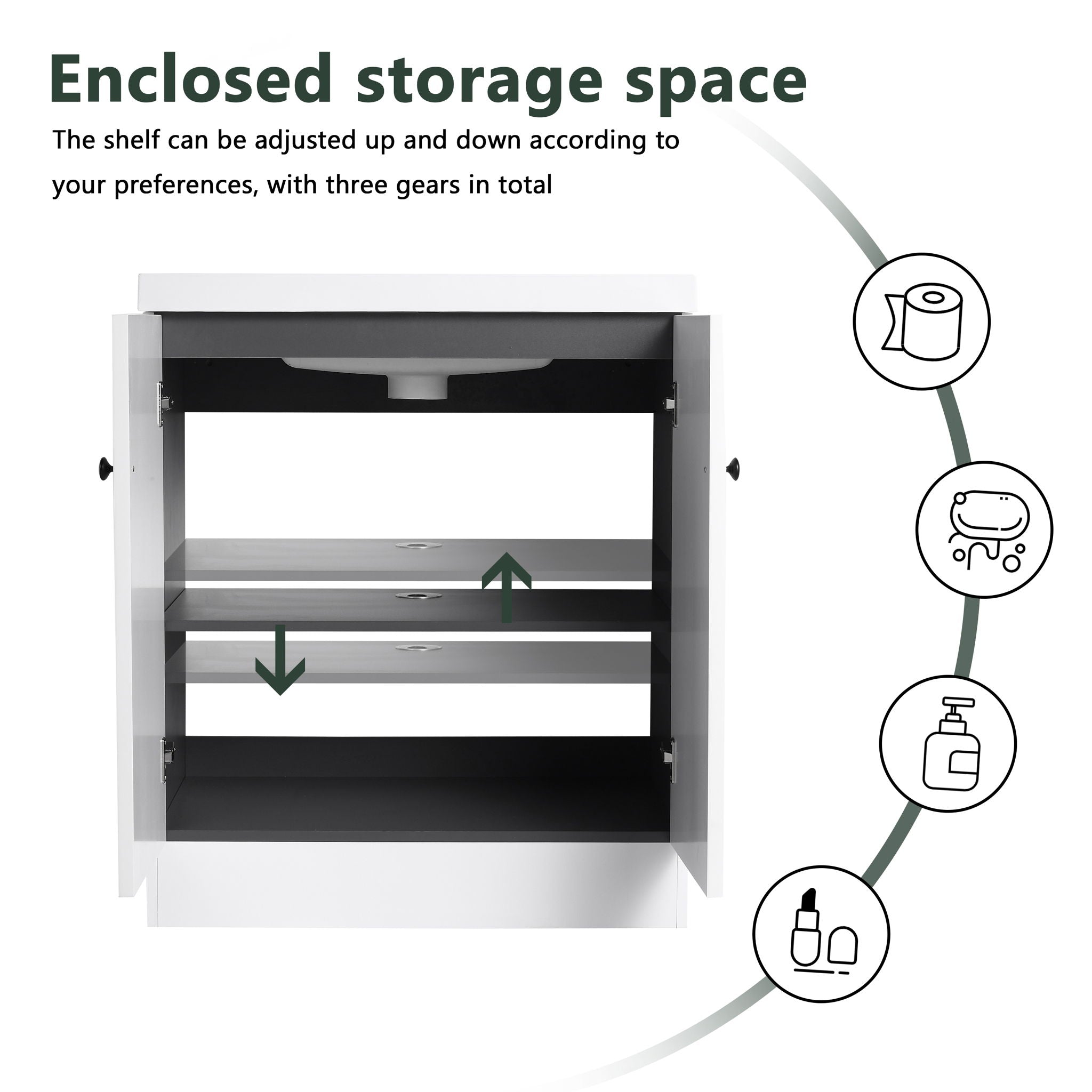Modern Freestanding Bathroom Vanity With Resin Sink & Soft Close Cabinet Doors, Durable - White23.6"W x 19.7"D x 35.4"H - 72.47 lb