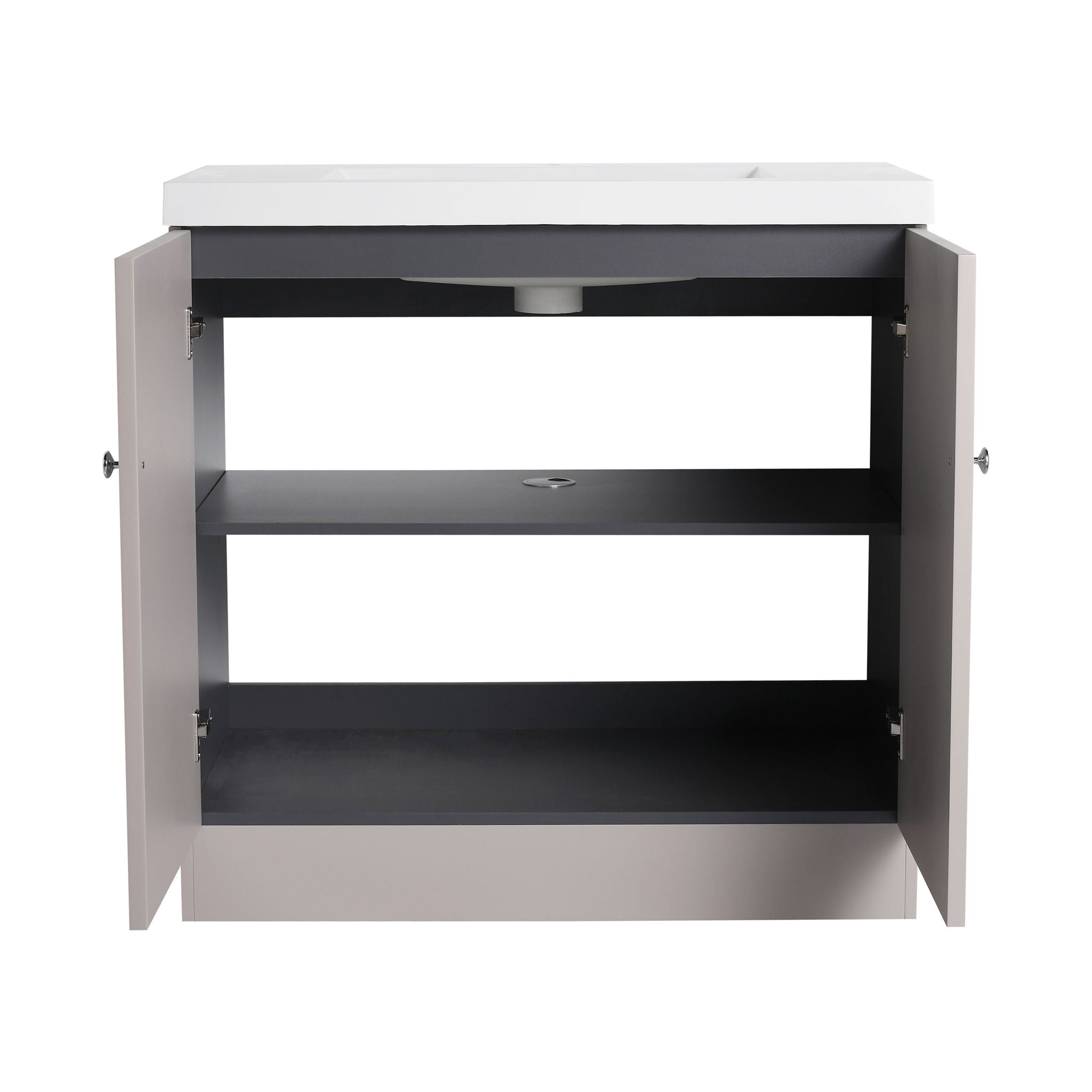 Contemporary Freestanding Bathroom Vanity With White Resin Sink & Soft Close Cabinet Doors - Khaki35.4"W x 19.7"D x 35.4"H - 100.98 lb