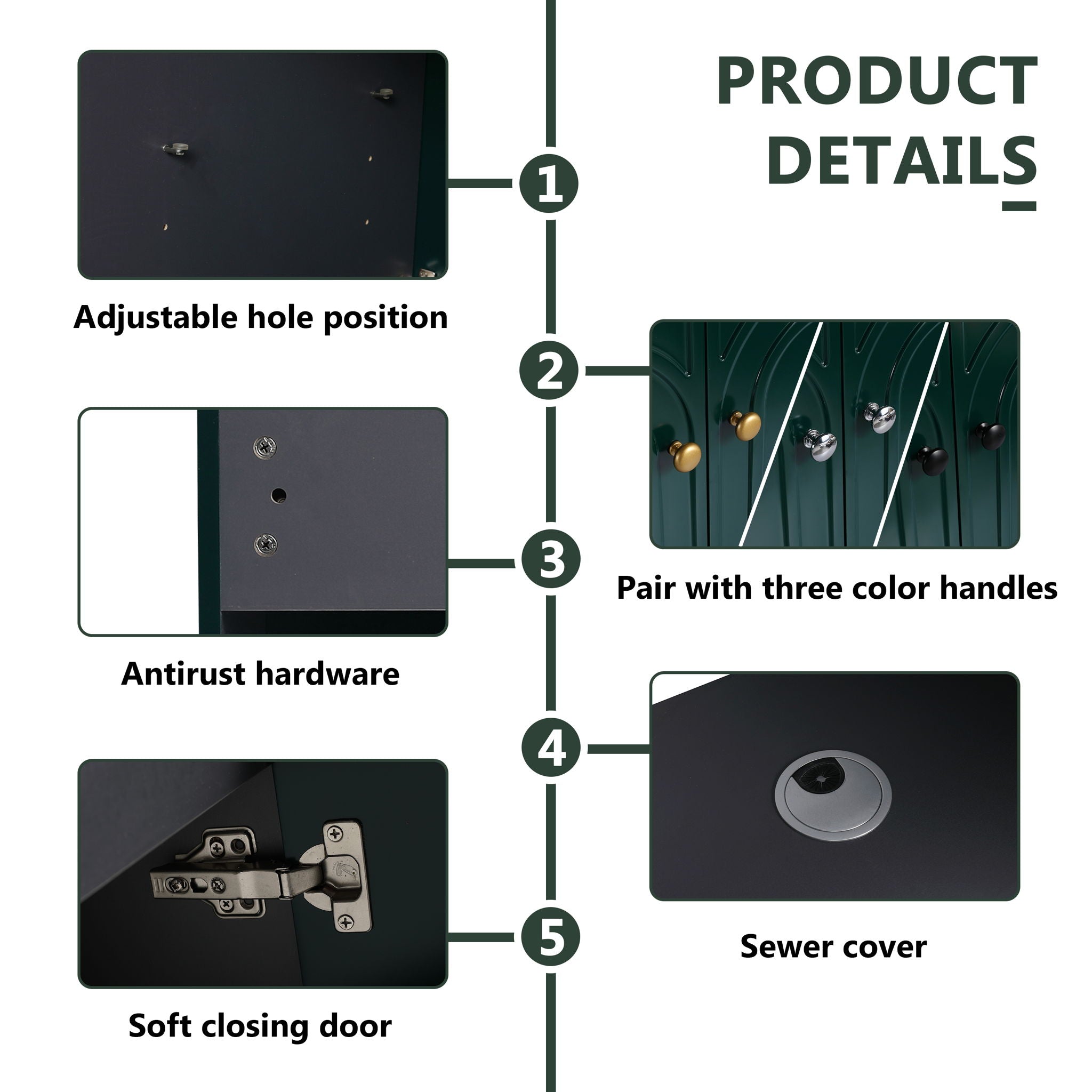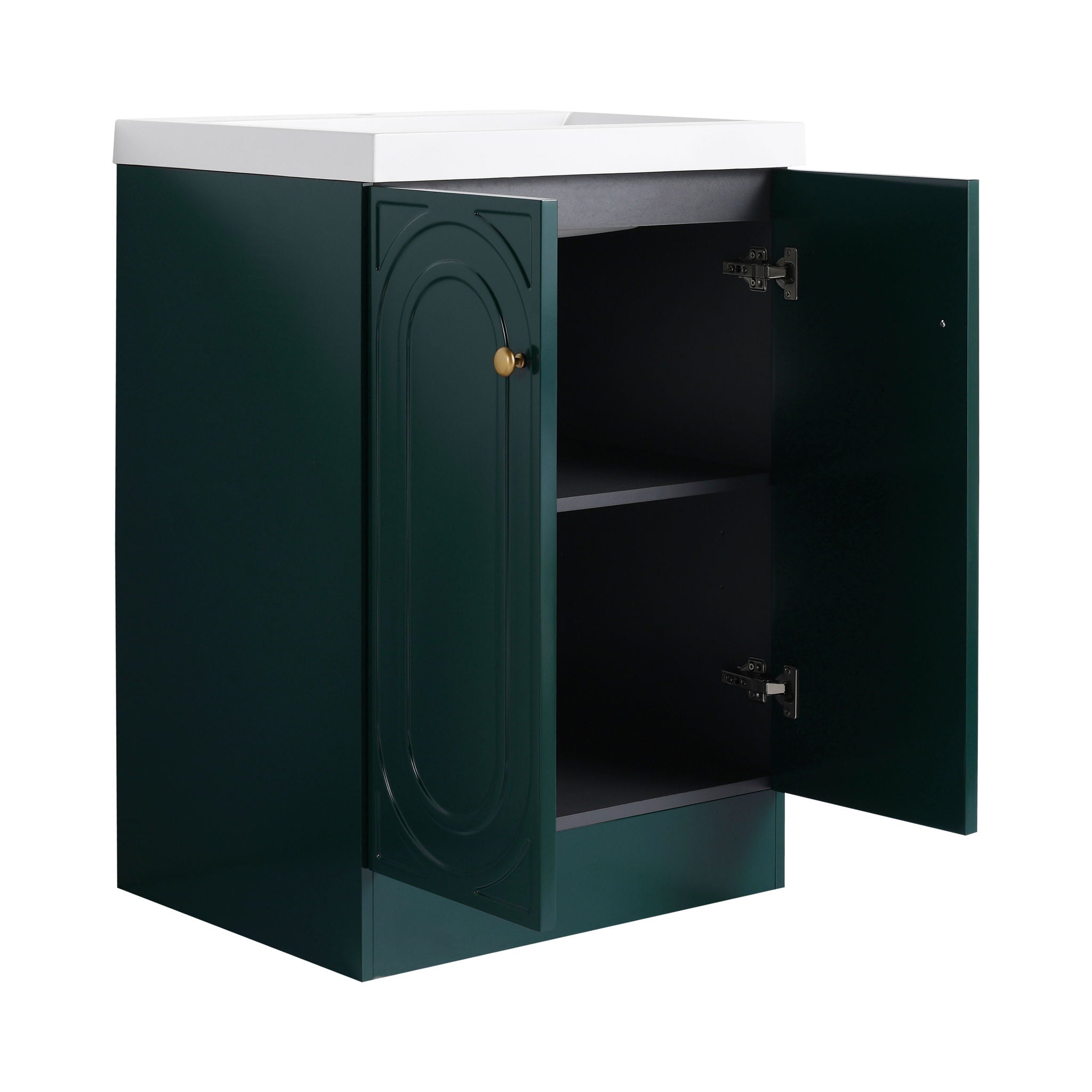 Contemporary Freestanding Bathroom Vanity With White Resin Sink & Soft Close Doors - Dark Green23.6"W x 19.7"D x 35.4"H - 72.47 lb