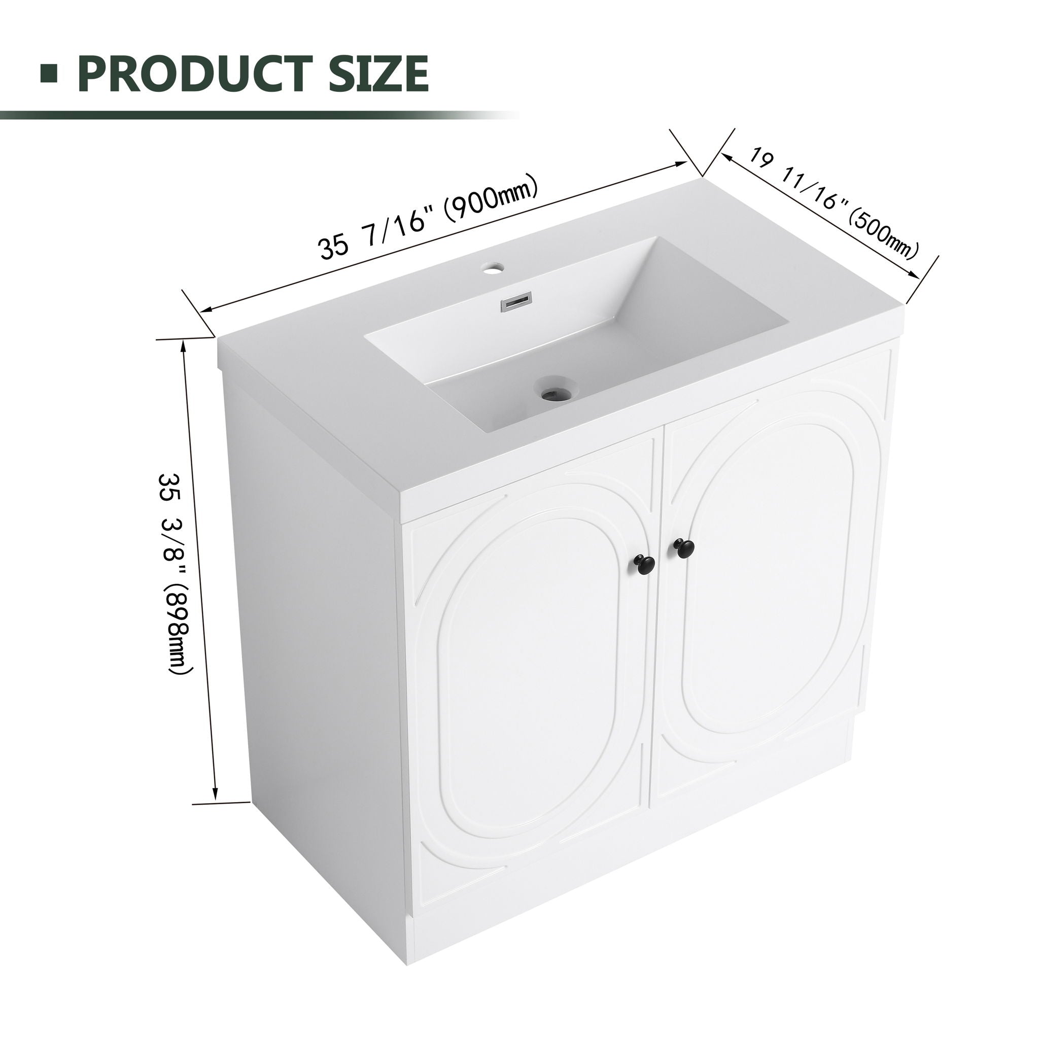 Modern Bathroom Vanity With Resin Sink & Soft Close Cabinet Doors, Durable - White35.4"W x 19.7"D x 35.4"H - 100.98 lb
