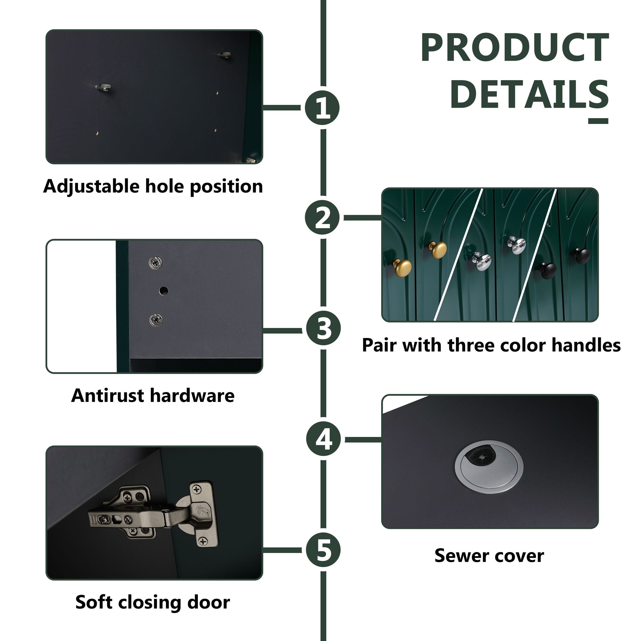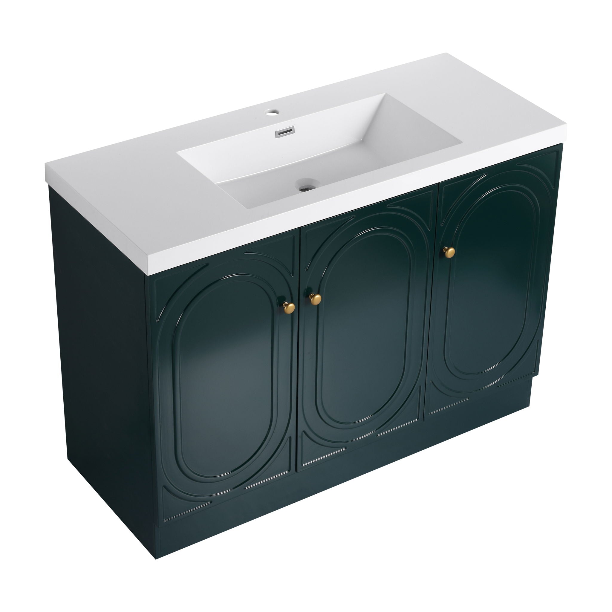 Modern Freestanding Bathroom Vanity With White Resin Sink & 3 Soft Close Cabinet Doors - Dark Green47.3"W x 19.7"D x 35.4"H - 129.95 lb