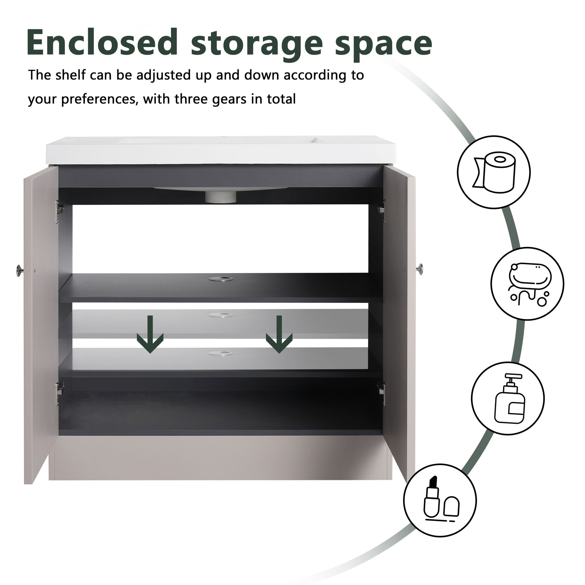 Modern Freestanding Bathroom Vanity With White Resin Sink & Soft Close Doors - Khaki29.5"W x 19.7"D x 35.4"H - 81.11 lb