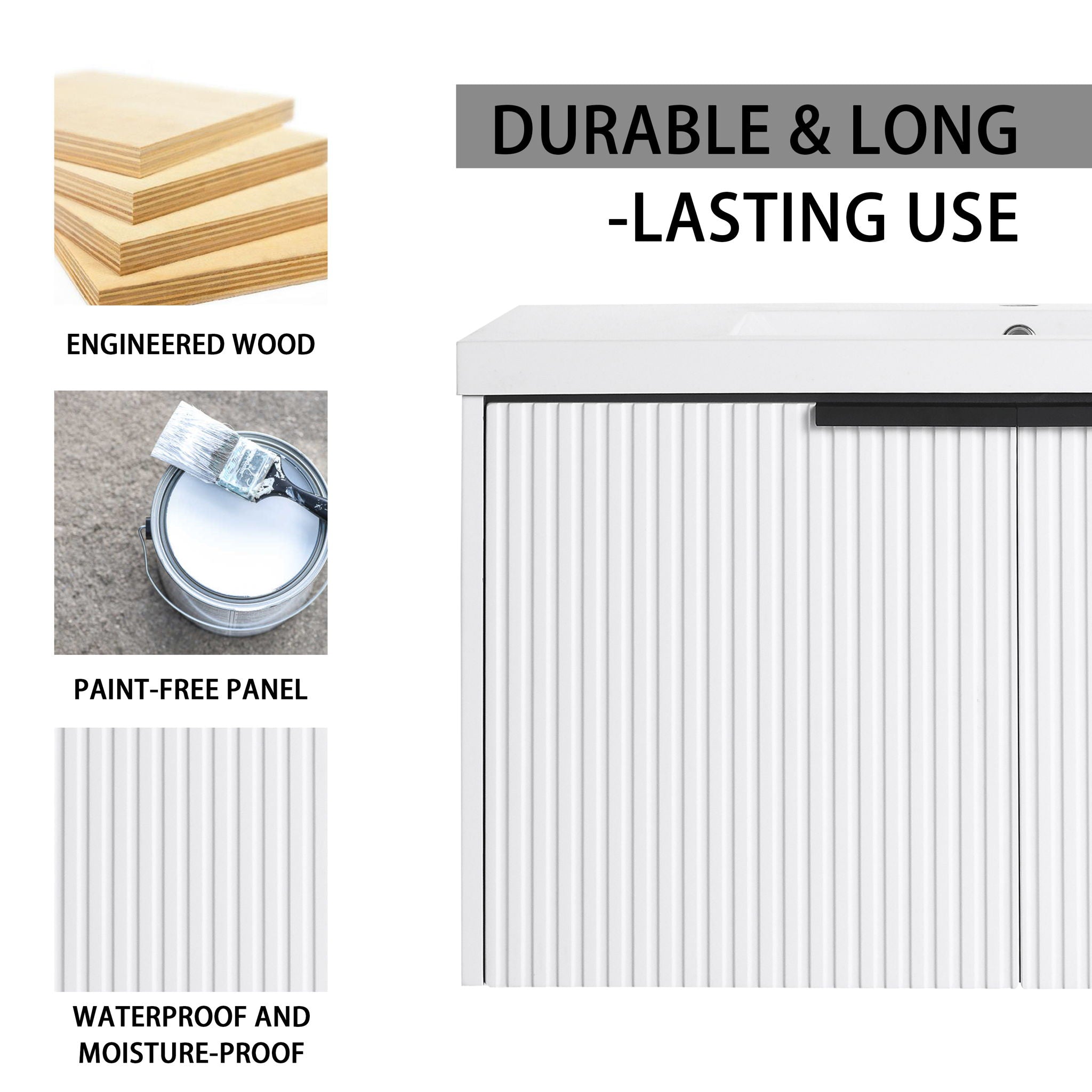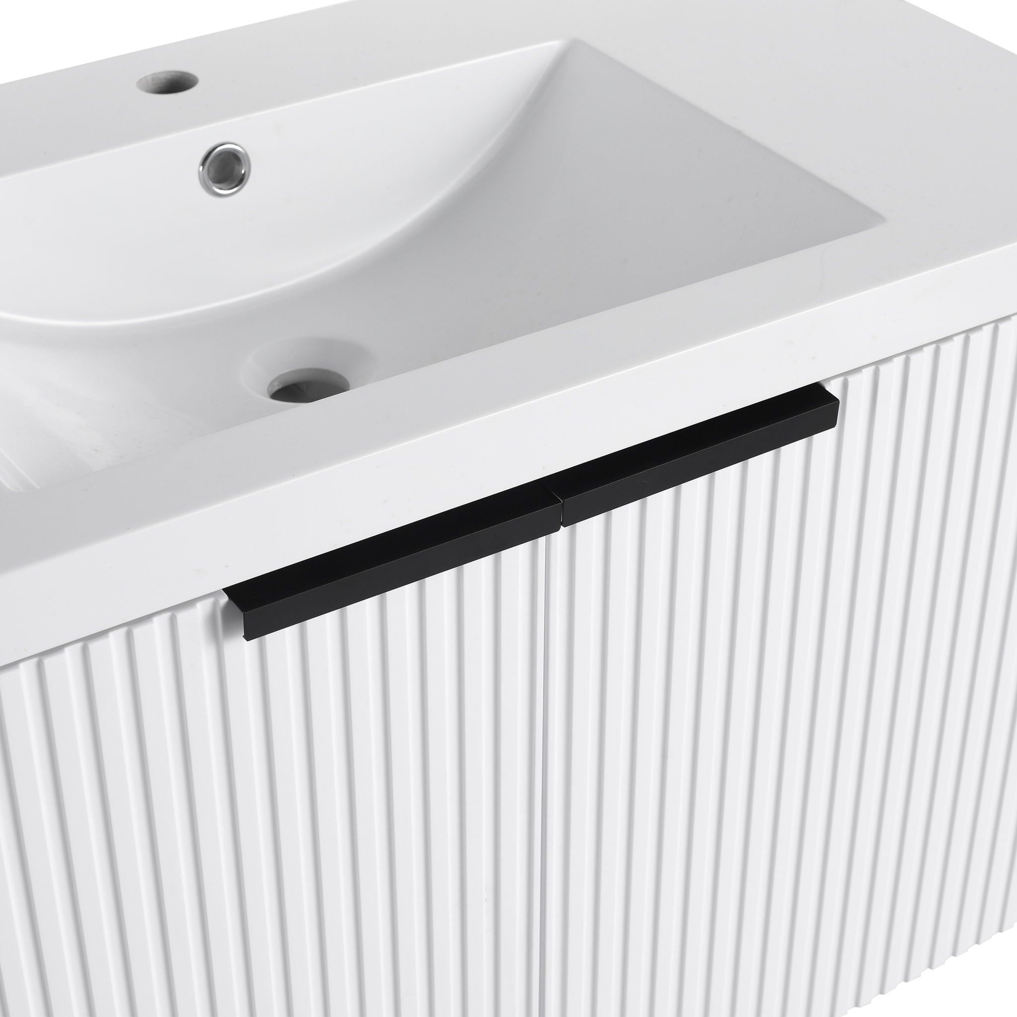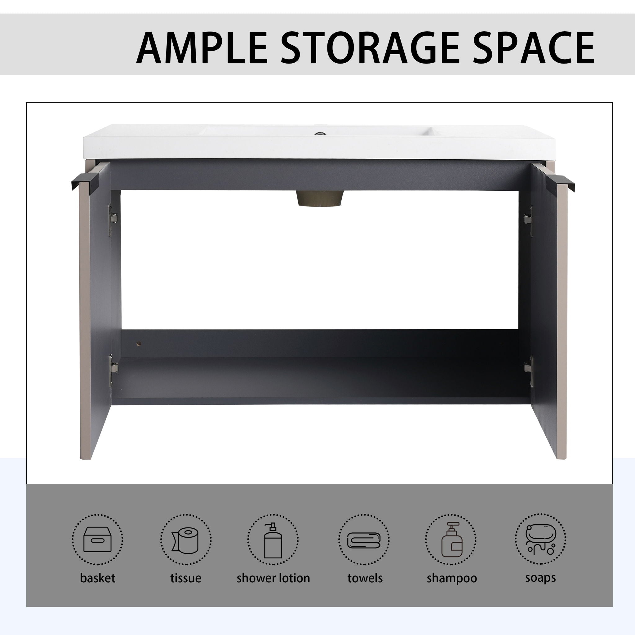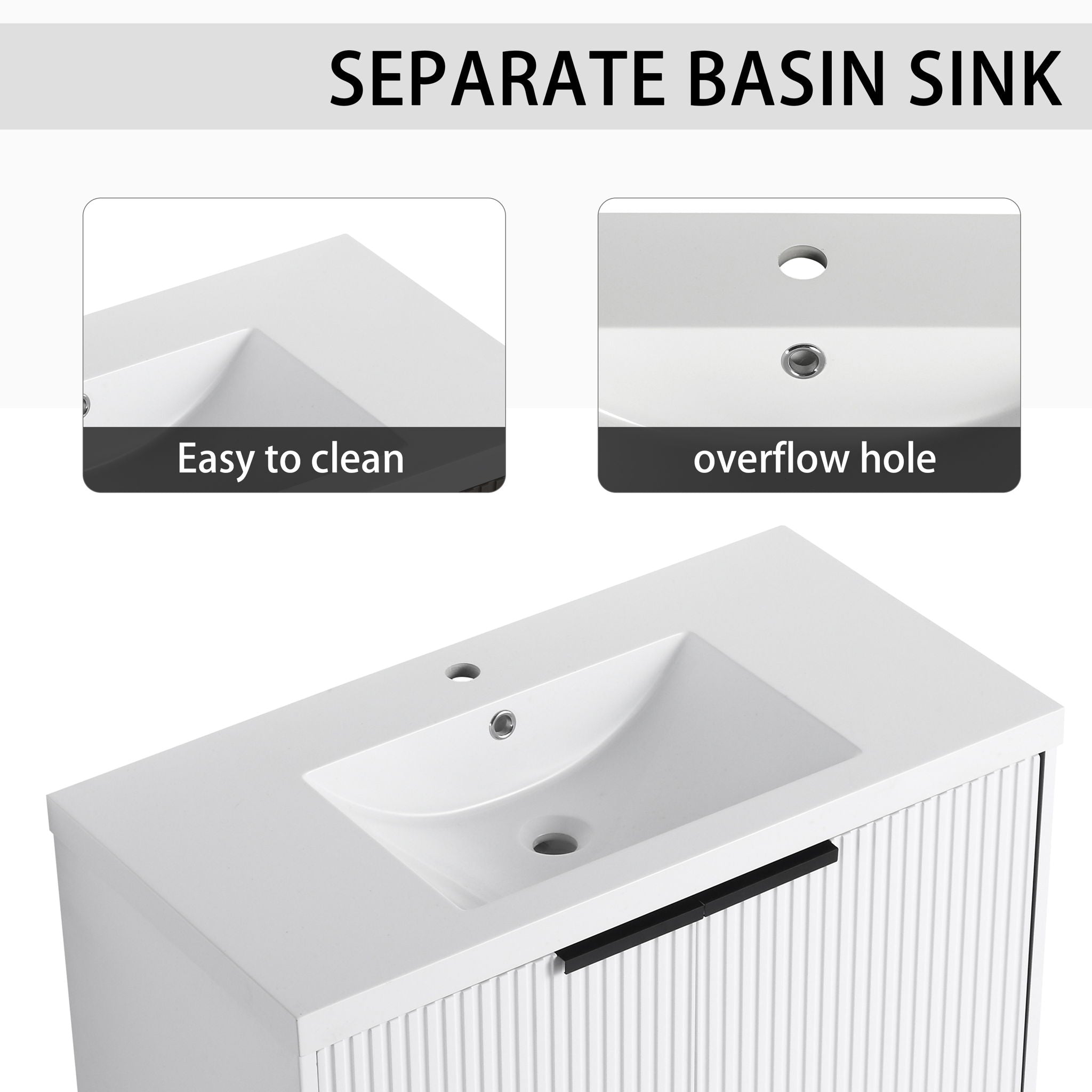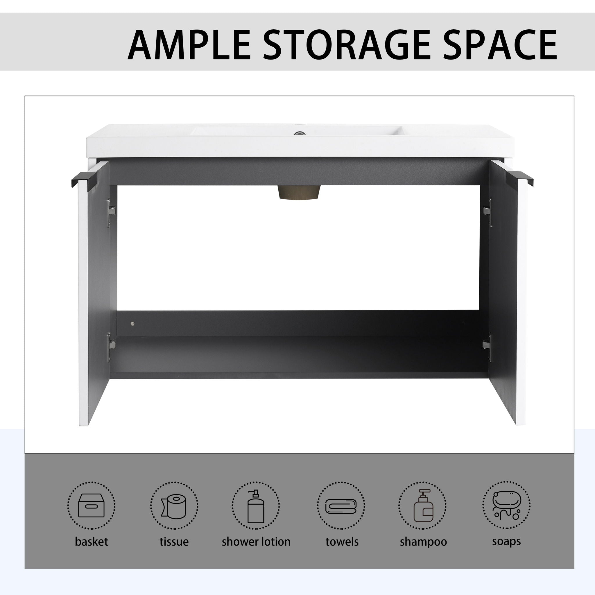 Contemporary Wall Mounted Bathroom Vanity With Resin Sink & Soft Close Doors - White35.4"W x 18.1"D x 20.5"H - 79.2 lb