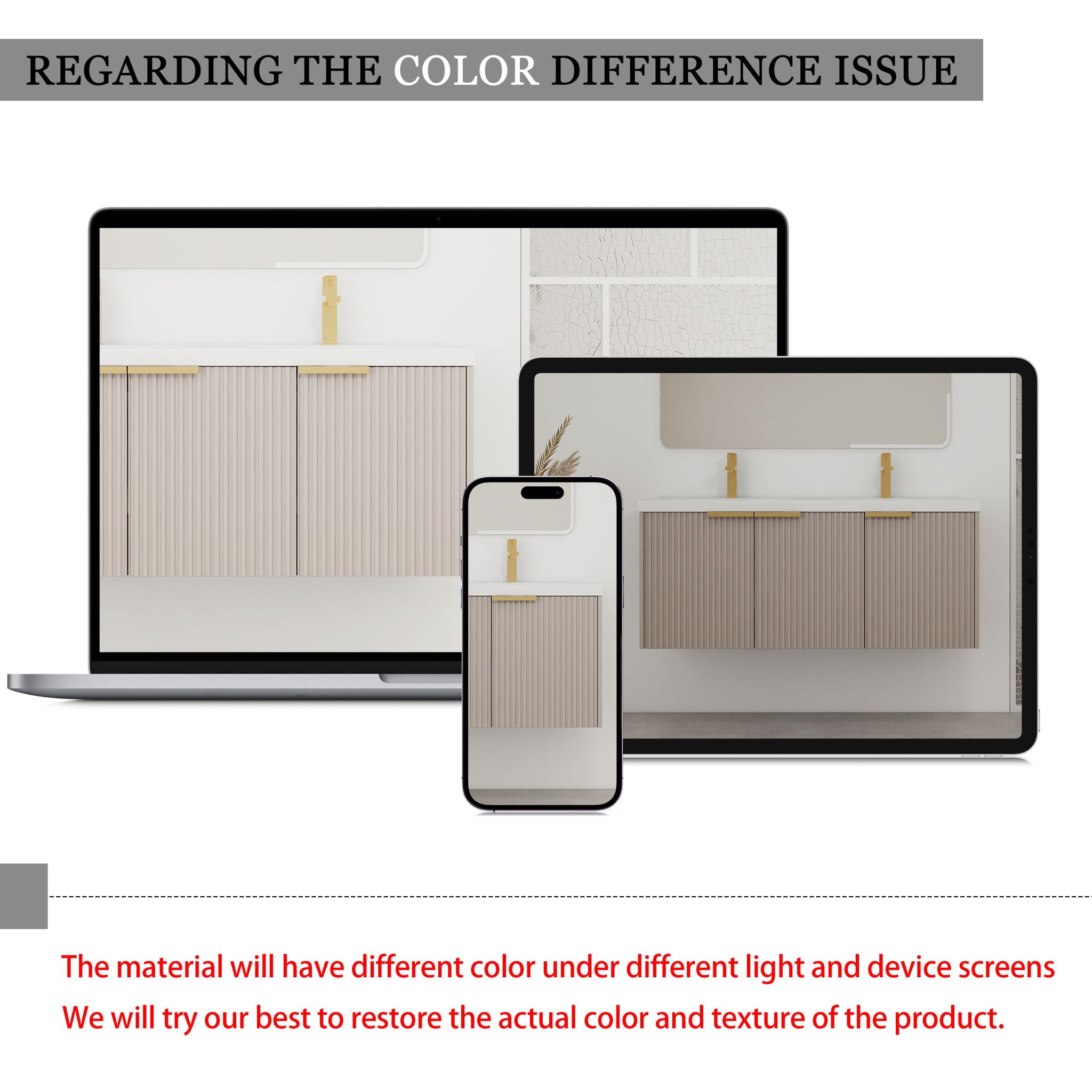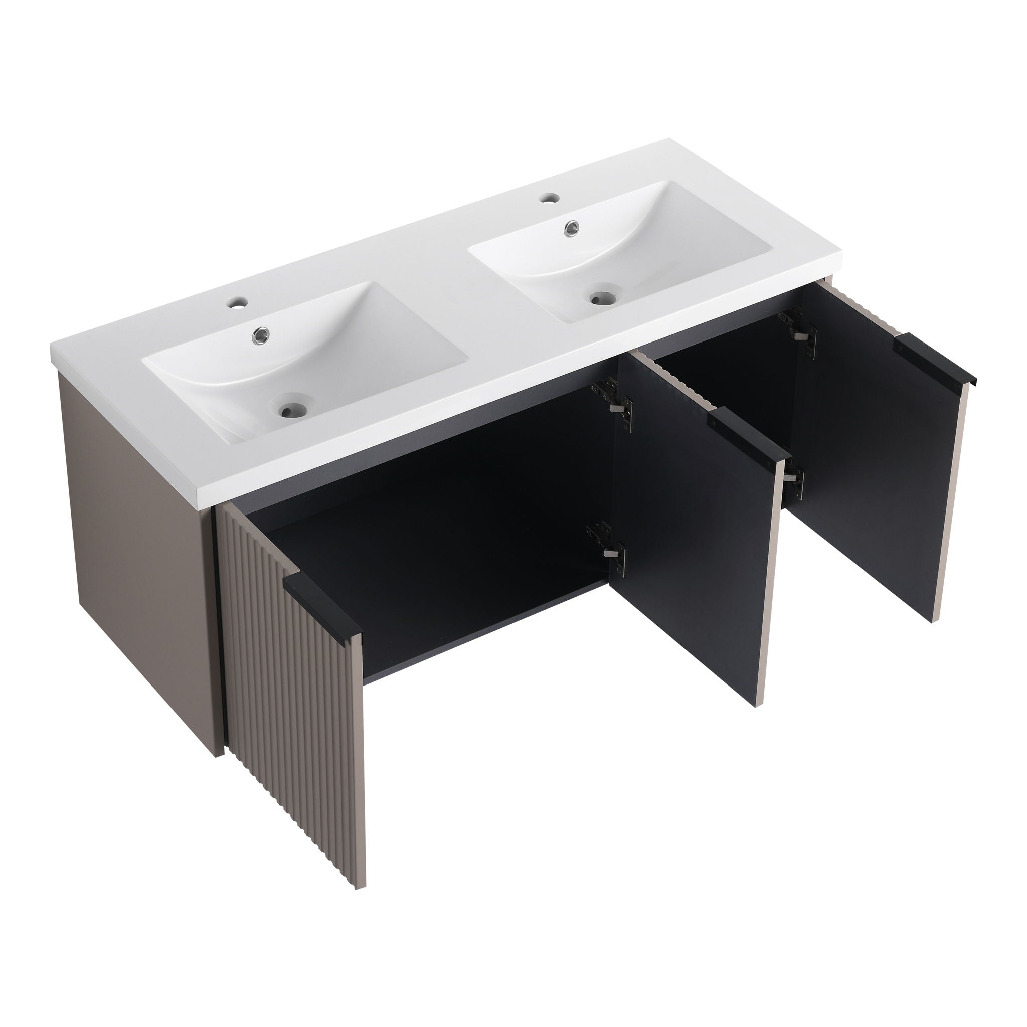 Contemporary 48" Wall Mounted Bathroom Vanity With Resin Double Sink & Soft Close Doors - Khaki47.6"W x 18.3"D x 20.6"H - 94.2 lb