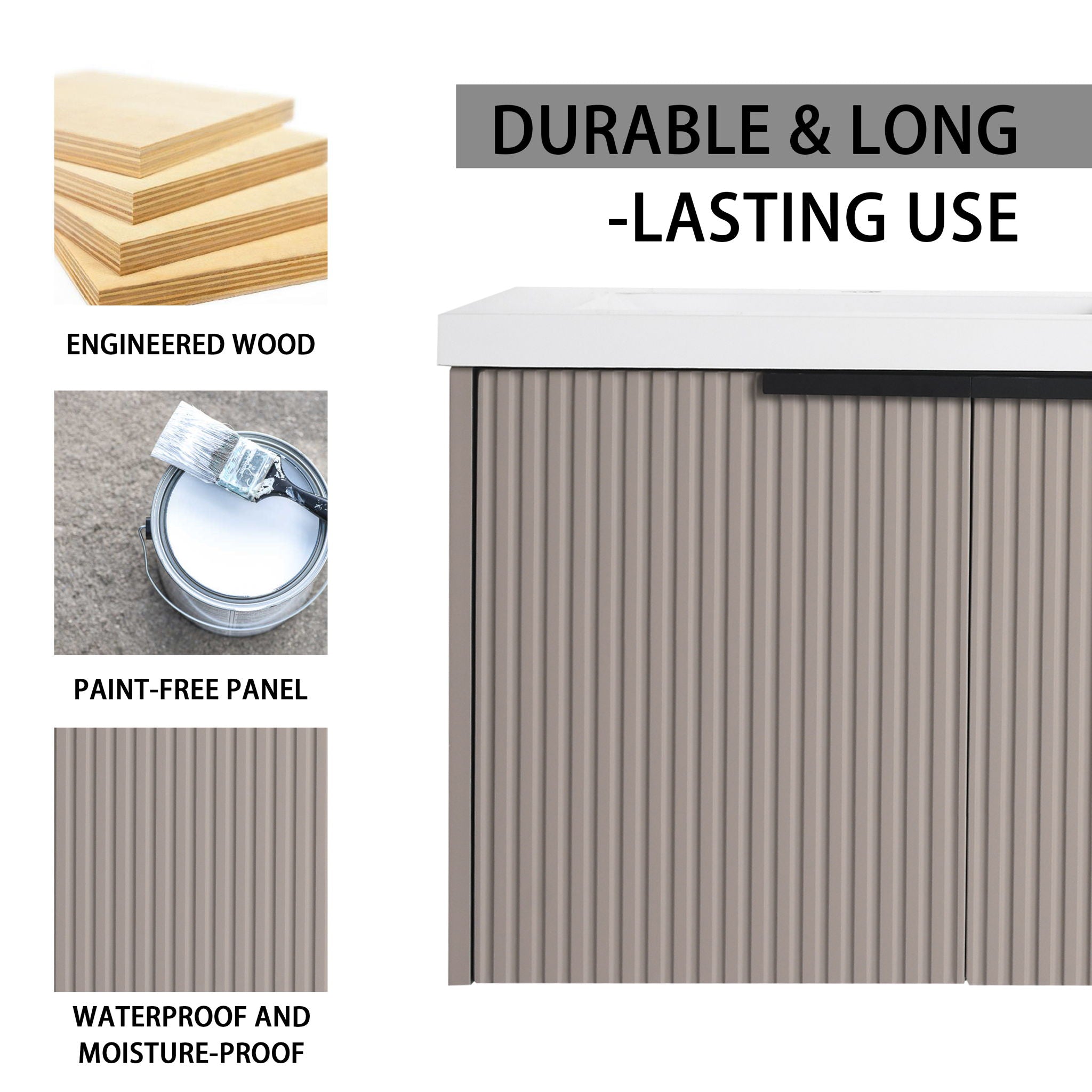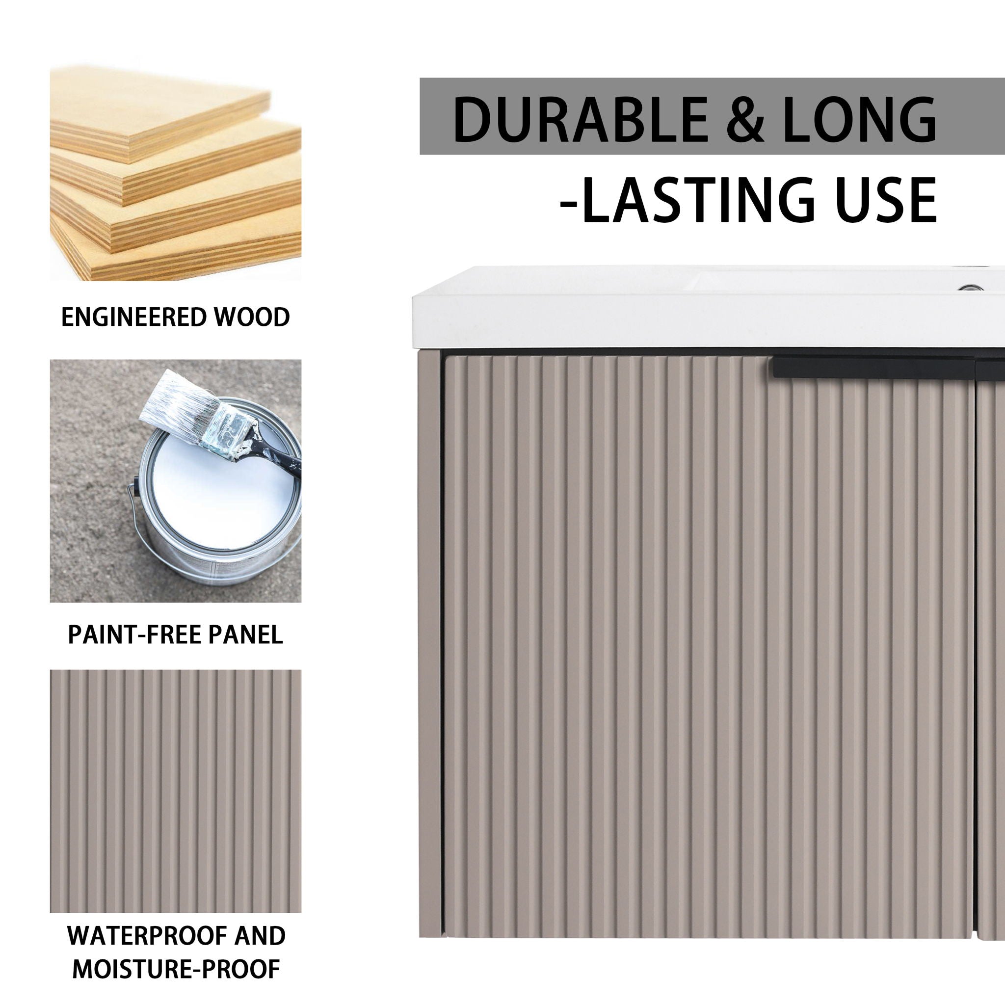 Contemporary Wall Mounted Bathroom Vanity With Resin Sink, Soft Close Doors - Khaki35.4"W x 18.1"D x 20.5"H - 79.2 lb
