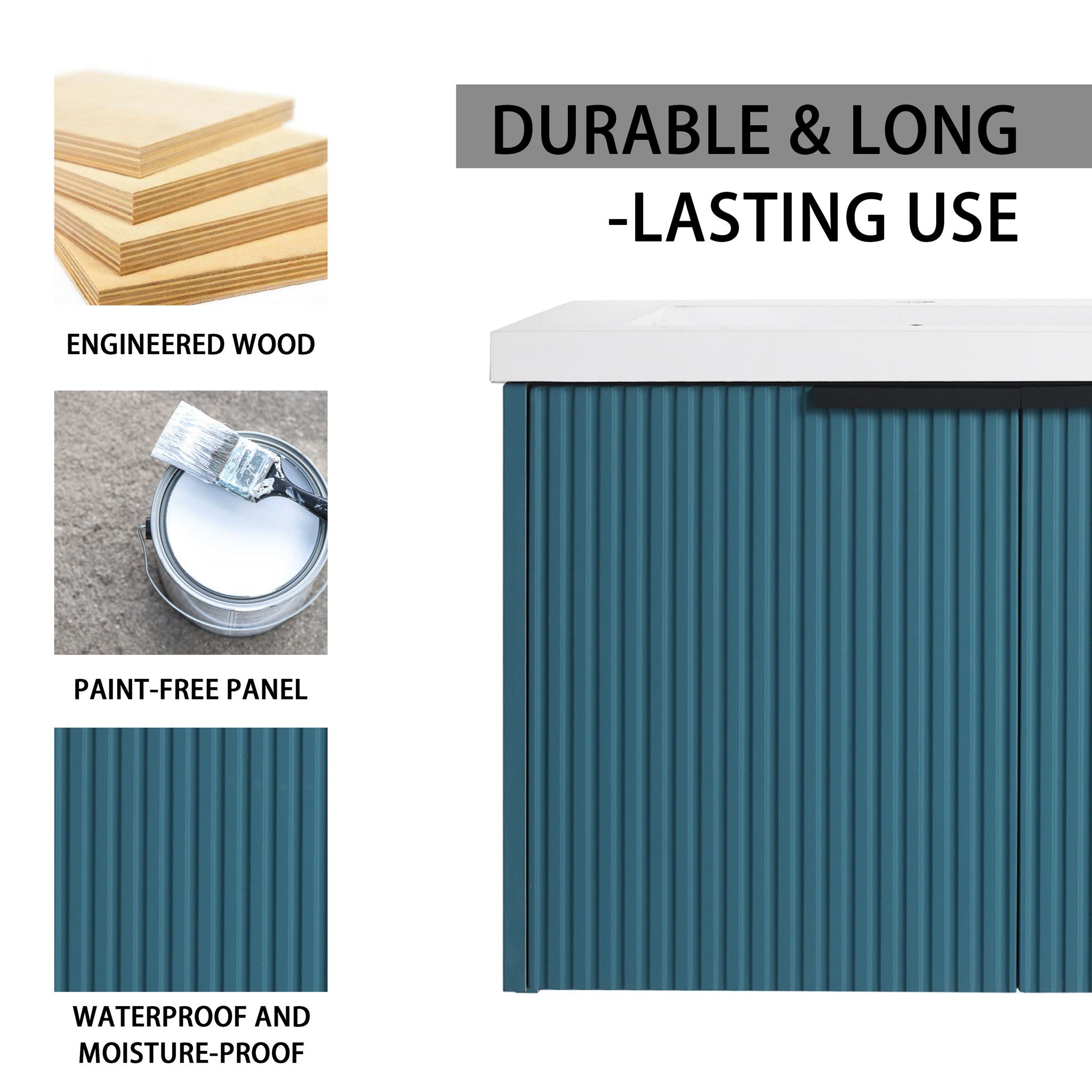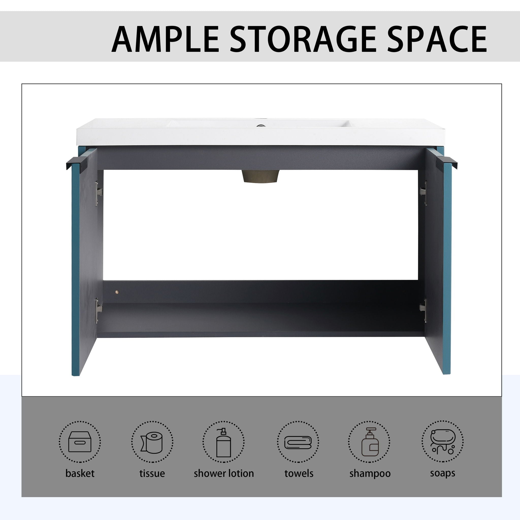 Contemporary Wall Mounted Bathroom Vanity With Resin Sink & Soft Close Doorі - Lake Blue35.4"W x 18.1"D x 20.5"H - 79.2 lb