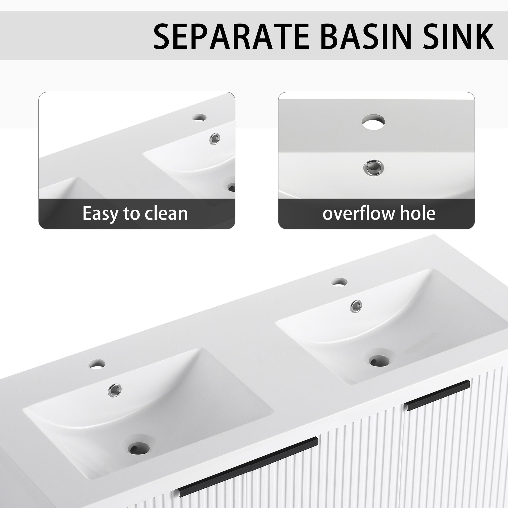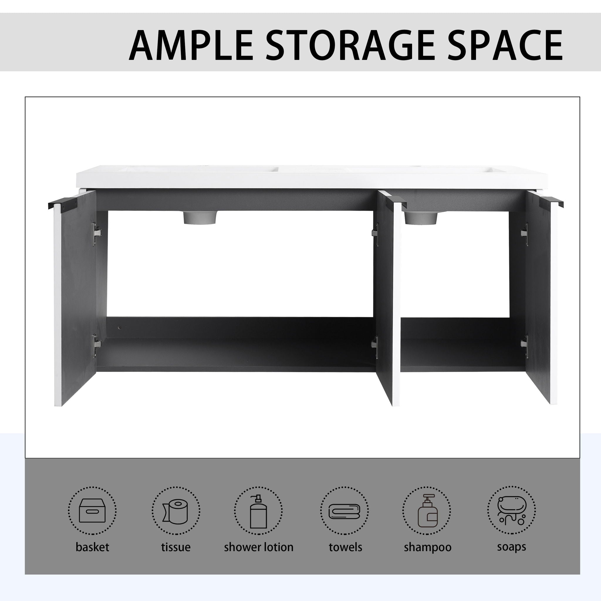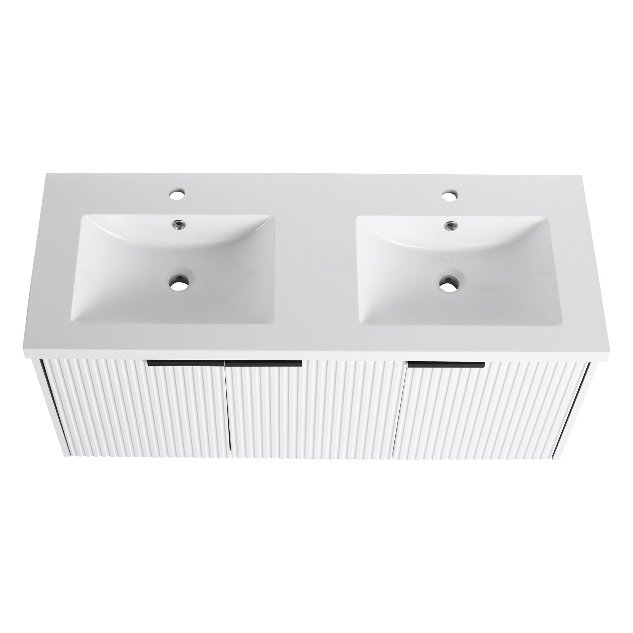 Contemporary Wall Mounted Bathroom Vanity With Resin Double Sink & Soft Close Doors - White47.6"W x 18.3"D x 20.6"H - 94.2 lb