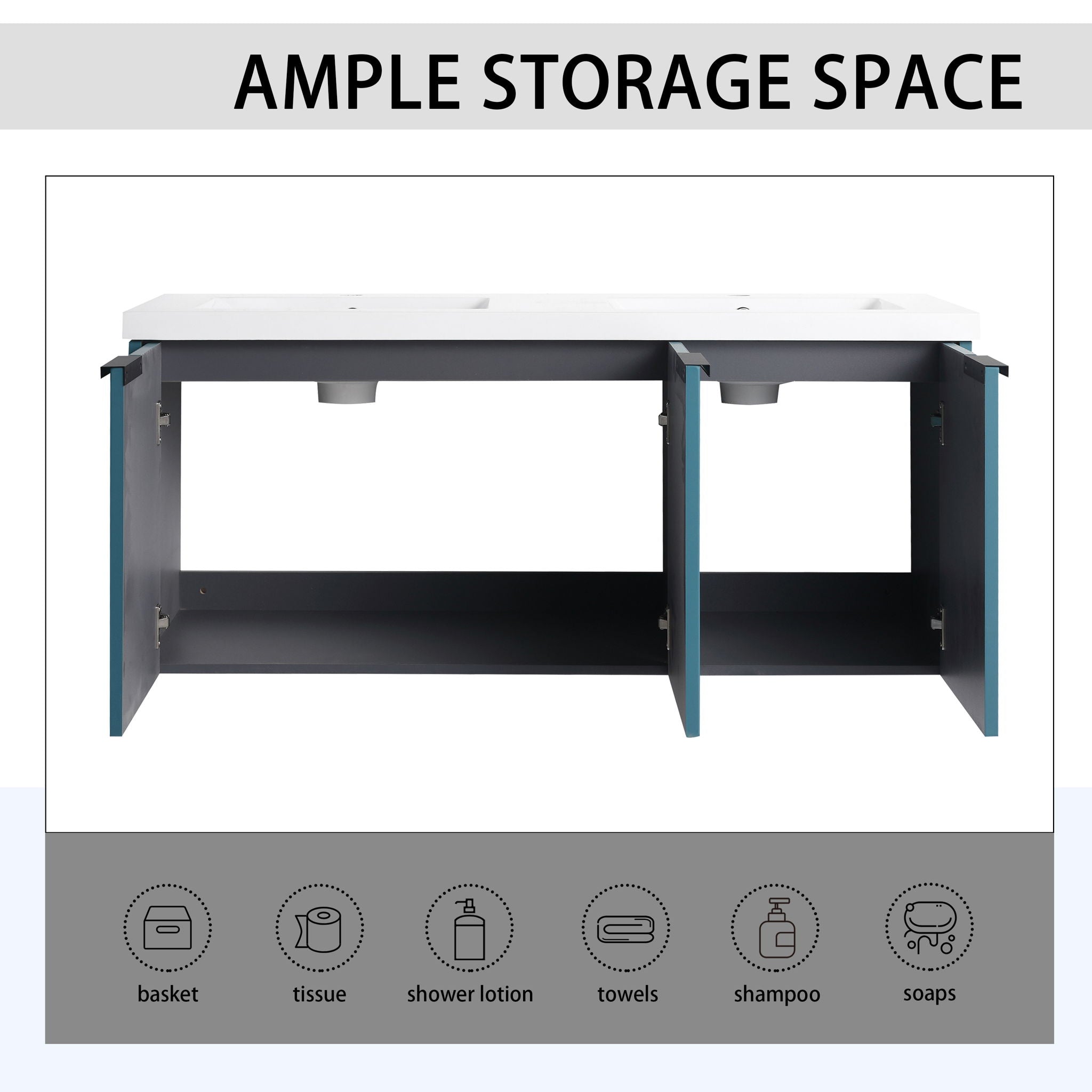 Contemporary Wall Mounted Bathroom Vanity With Resin Double Sink - Lake Blue47.6"W x 18.3"D x 20.6"H - 94.2 lb