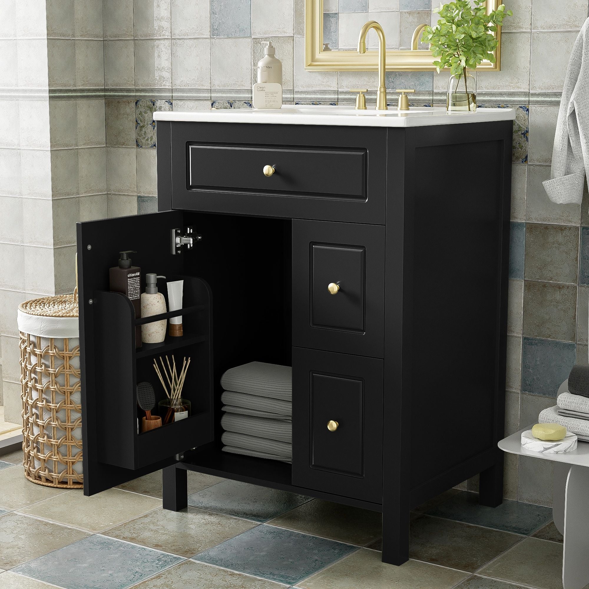 Bathroom Vanity With Sink, Soft Close Storage - Black