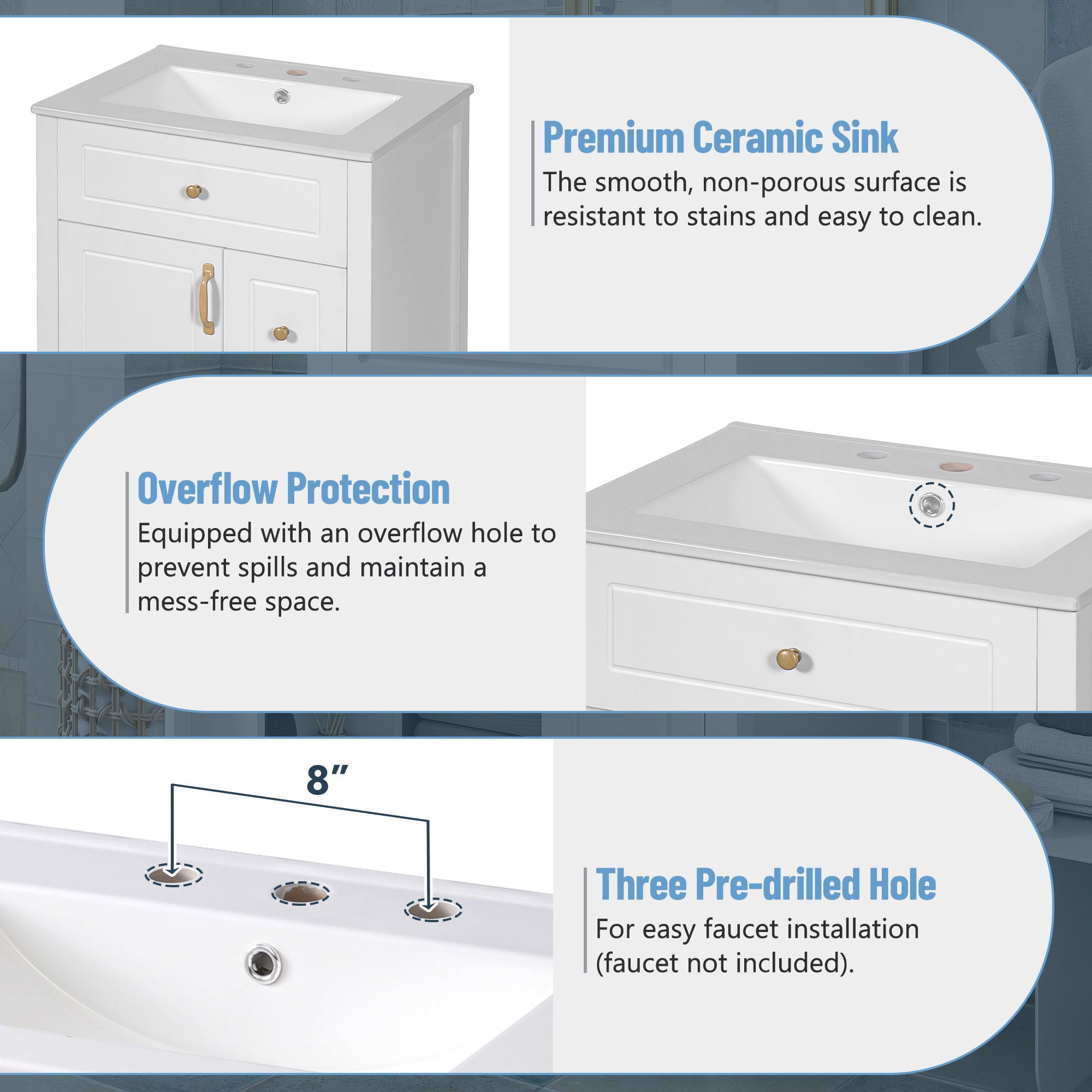 • Durable Ceramic Sink, Easy to Maintain: Smooth ceramic surface resists stains and is effortless to clean, ideal for busy mornings.