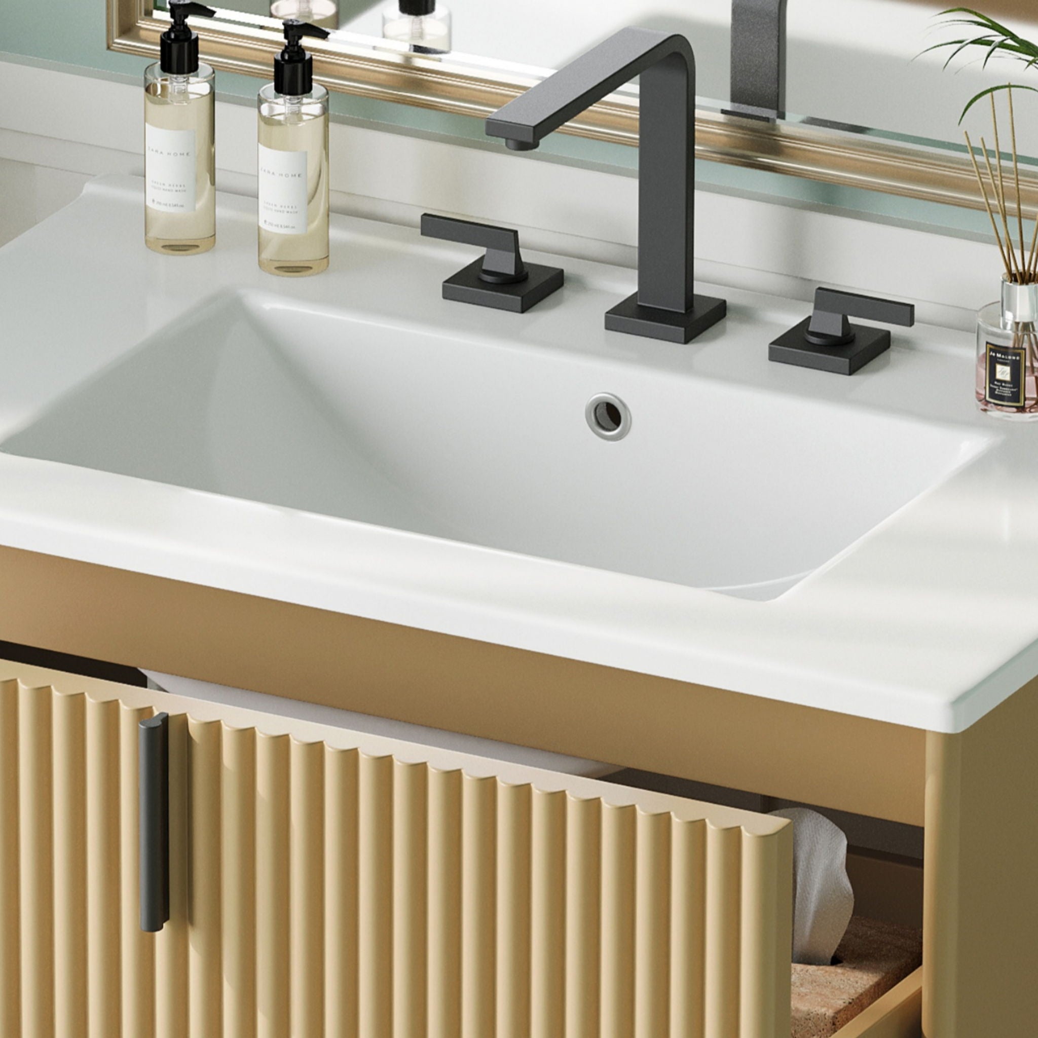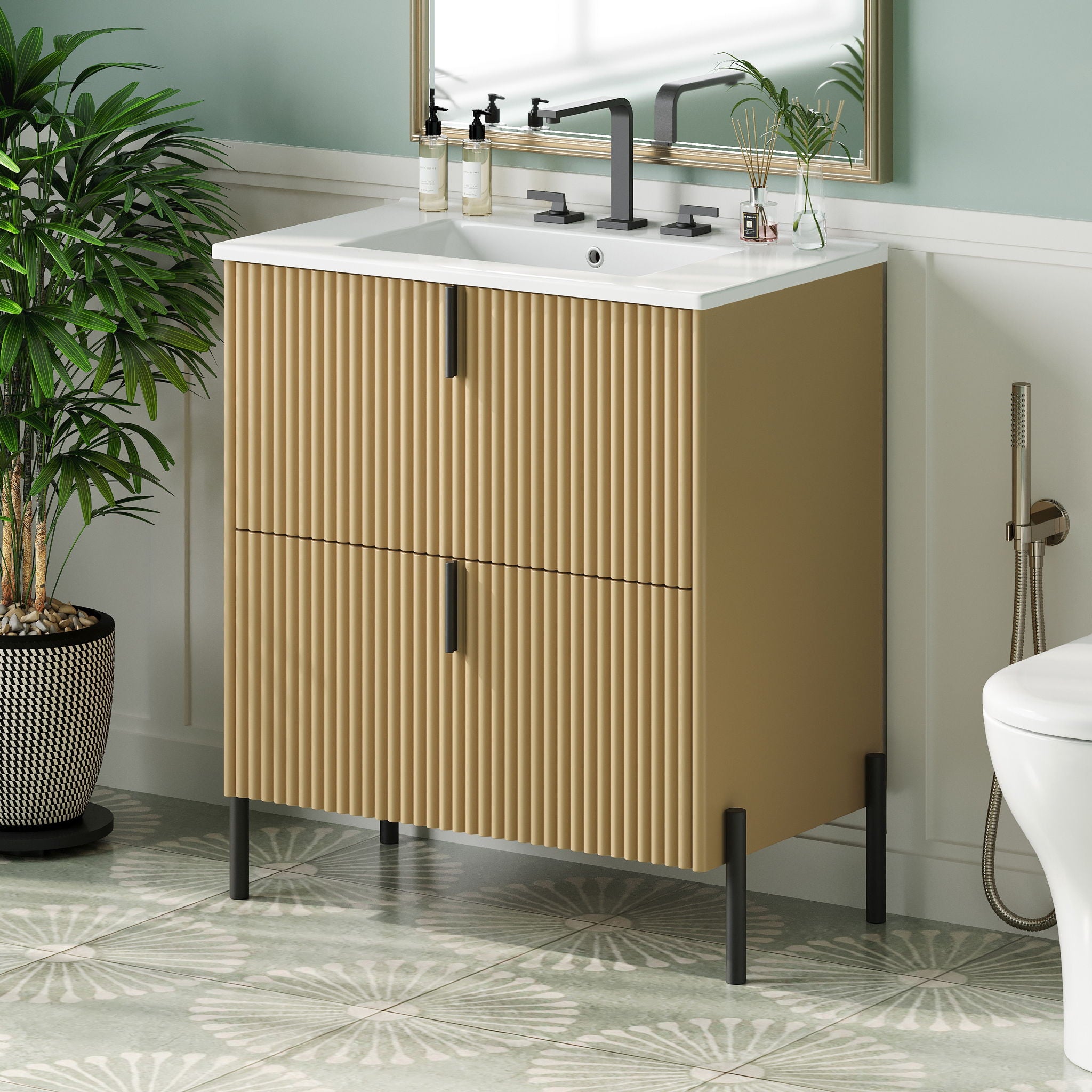 Fluted Bathroom Vanity With Ceramic Sink, Freestanding Design