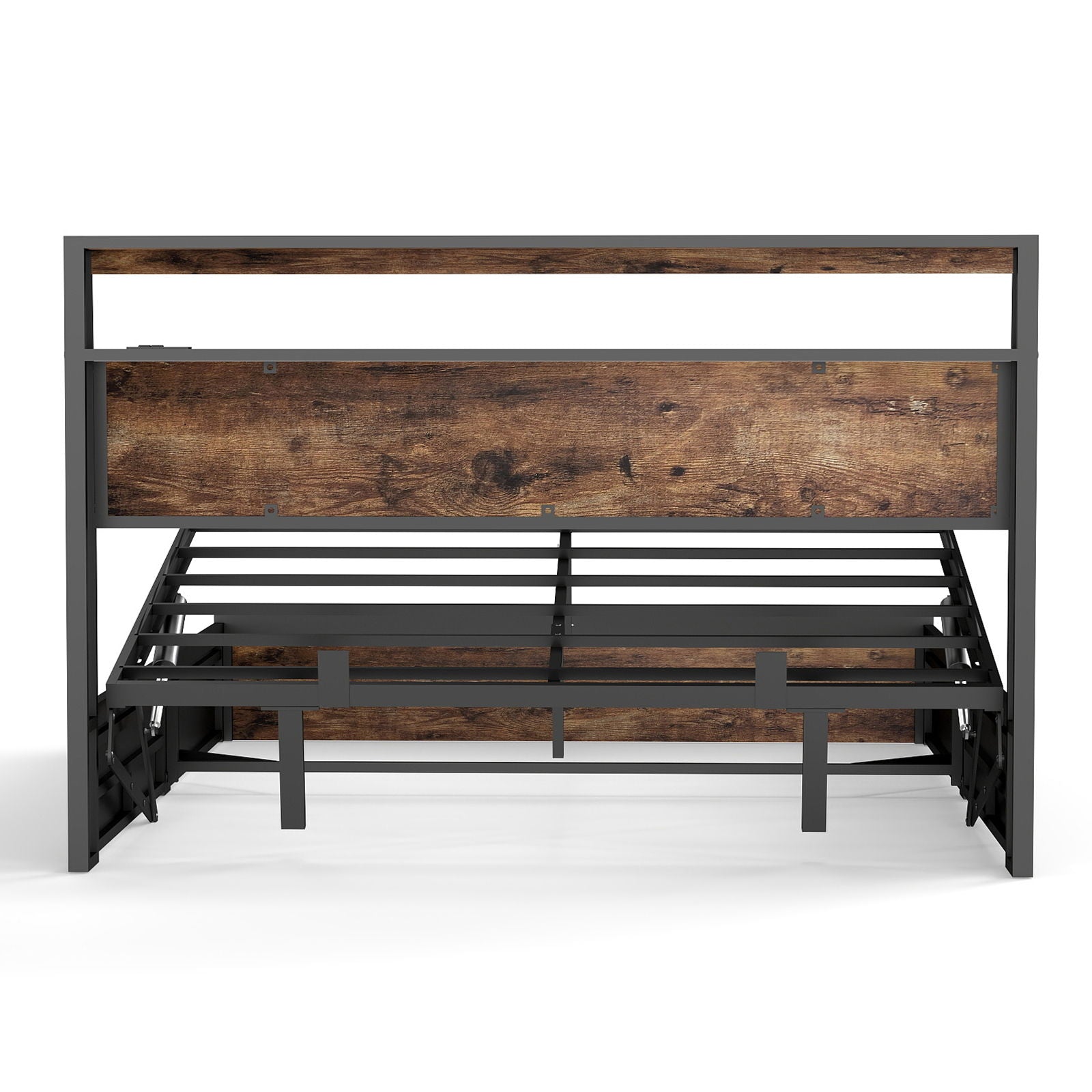 Frame With Hydraulic Lift Storage, RGB LED Lights & Multi-Port Charging, No Box Spring Needed