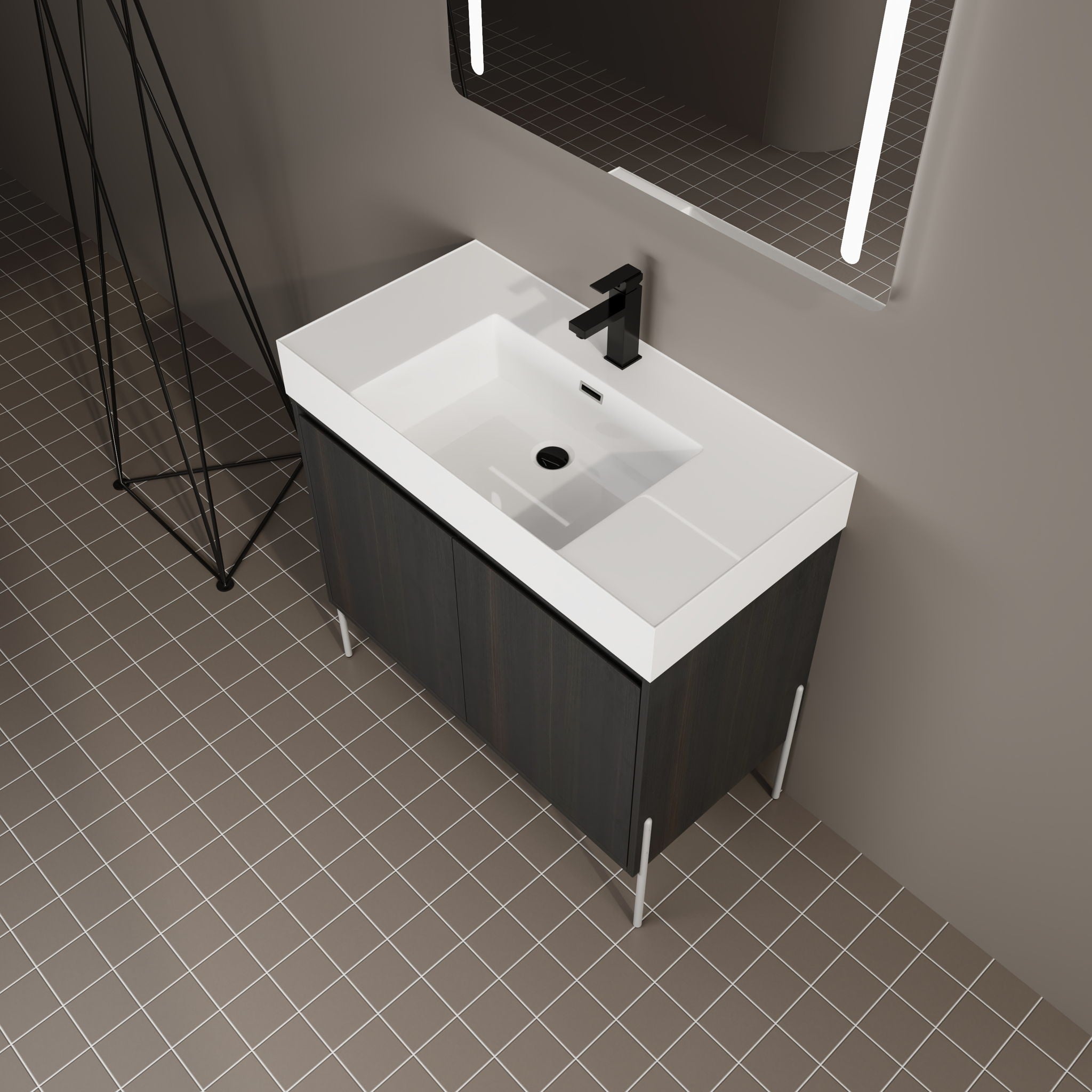 Freestanding Bathroom Vanity With Resin Sink And Storage Cabinet