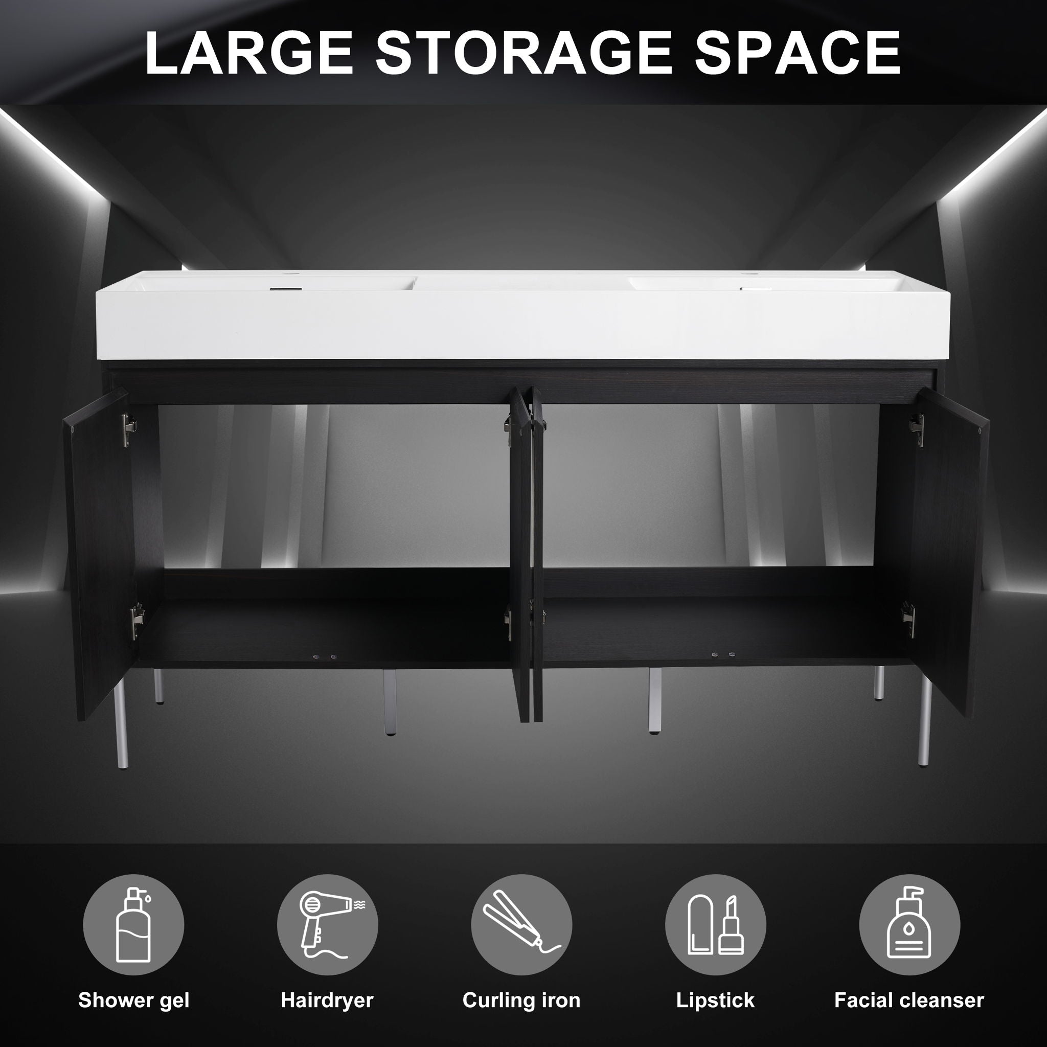 [Atmospheric Appearance]: The thick planks and Minimalist appearance make your bathroom look more upscale. [Ample Storage Space]: This bathroom vanity...