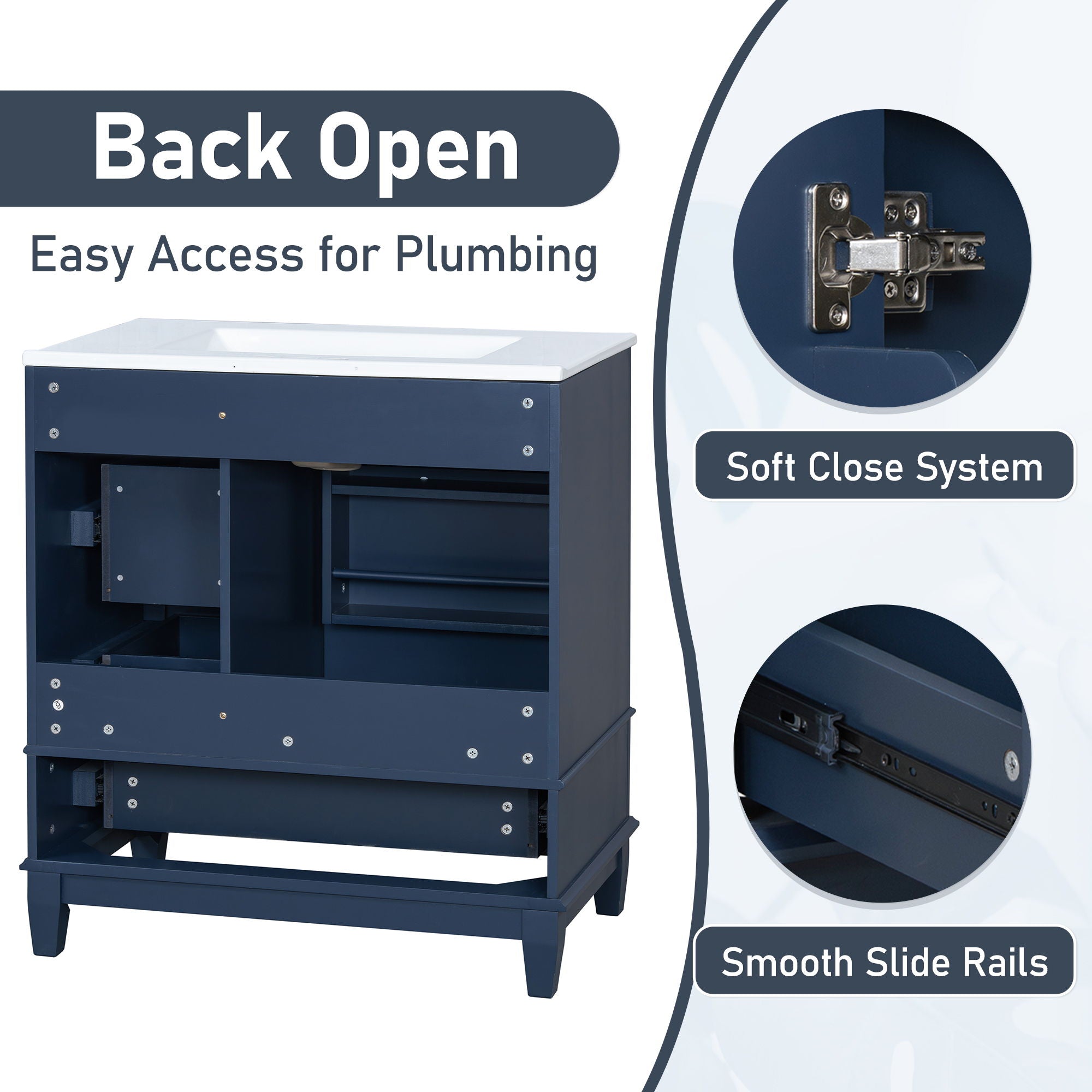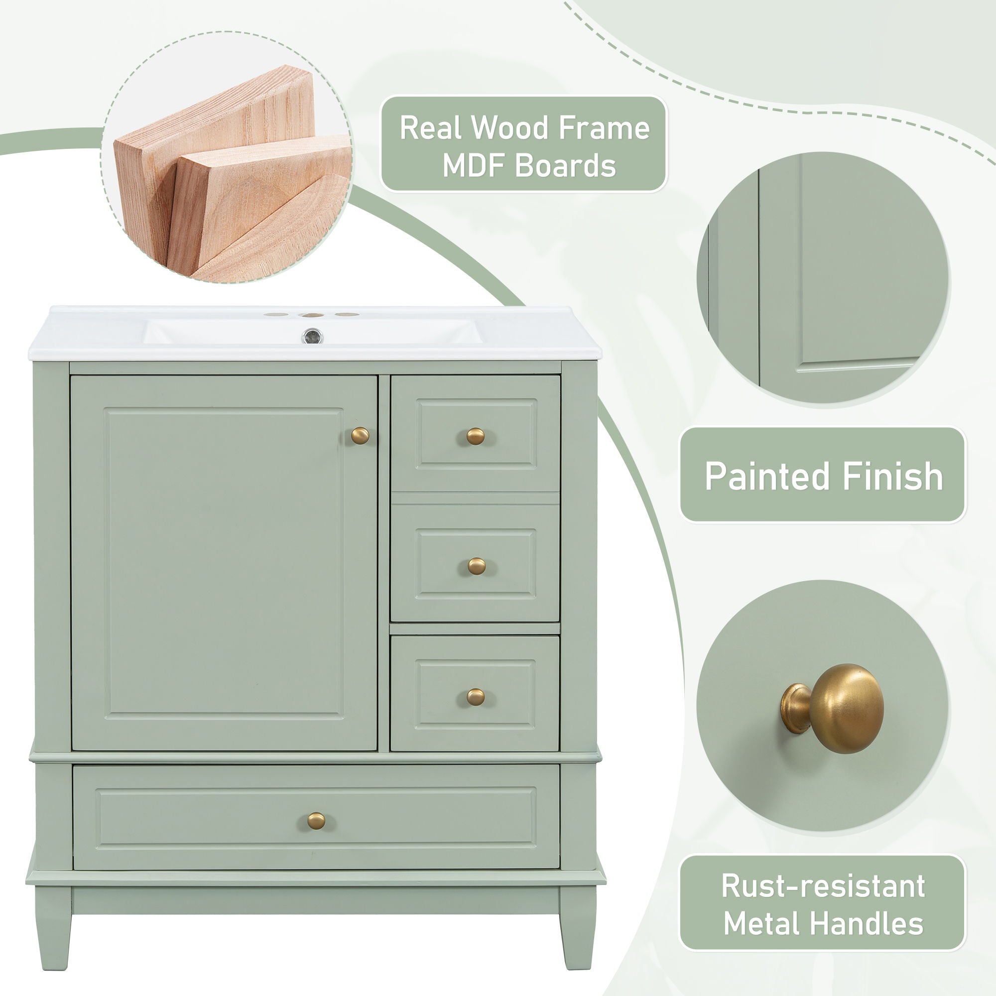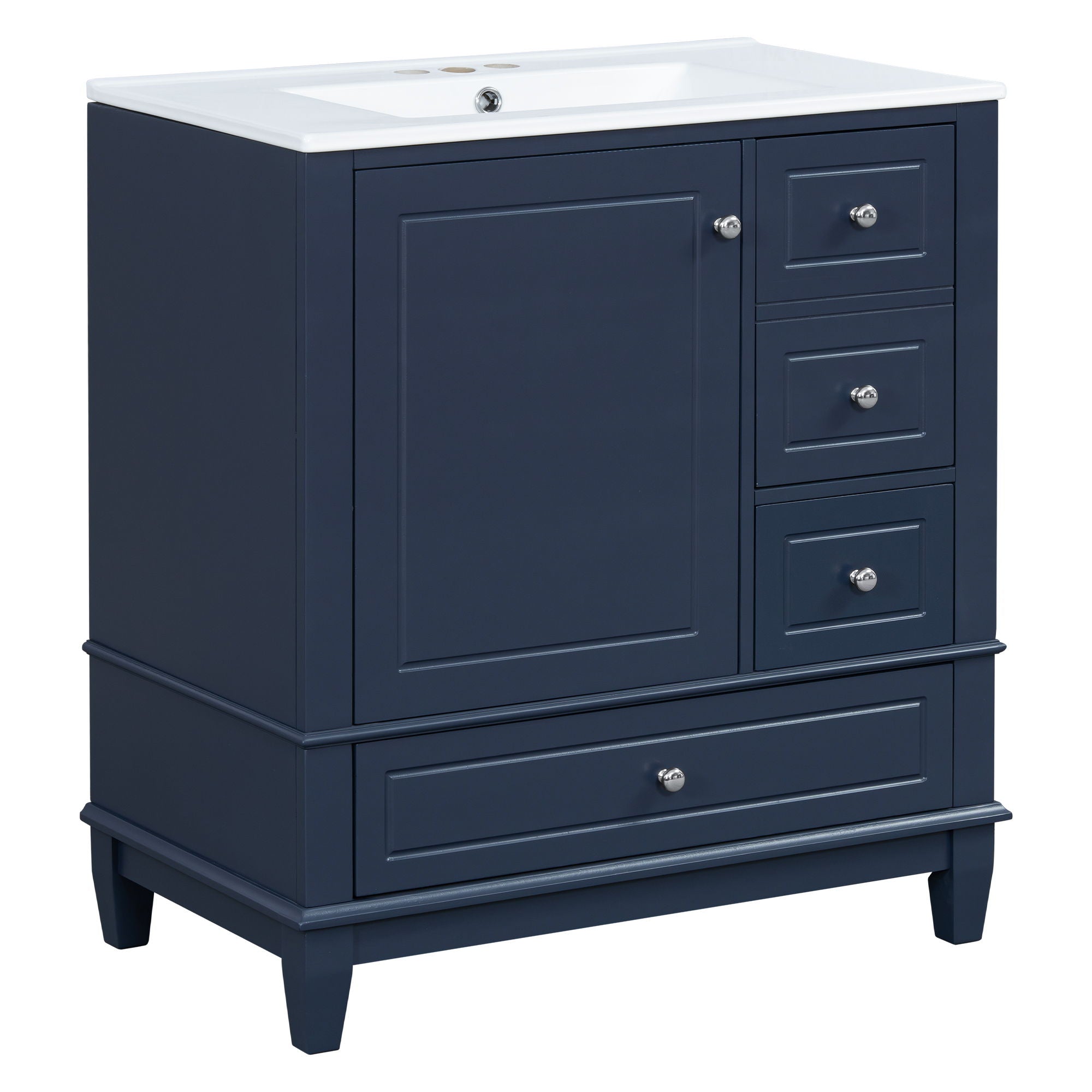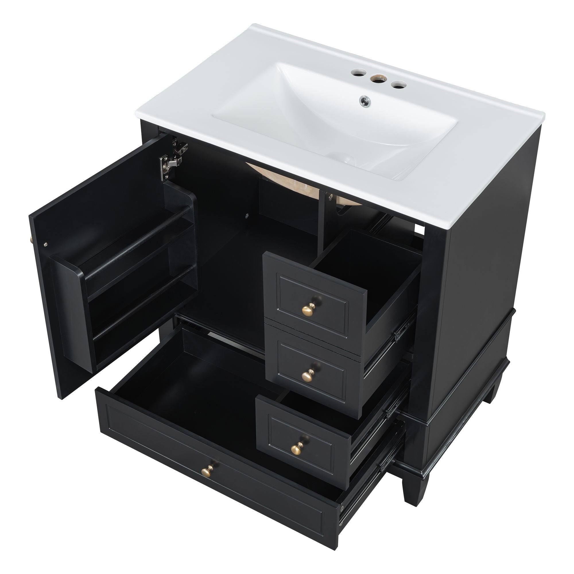 Freestanding Bathroom Vanity With Sink, Soft Close Door, 3 Drawers