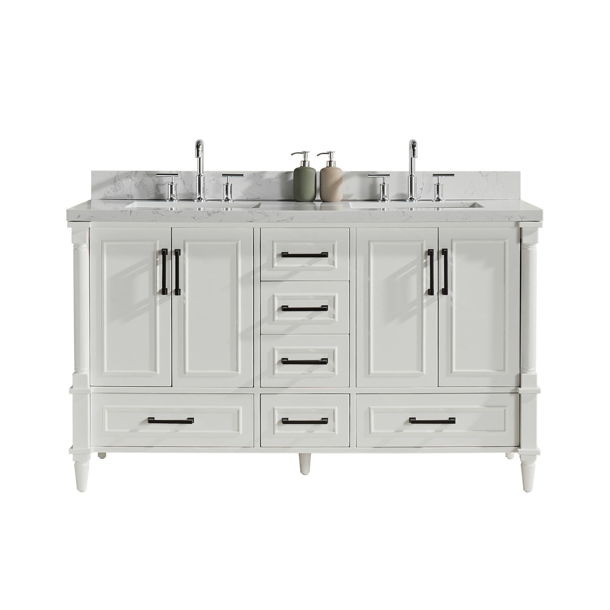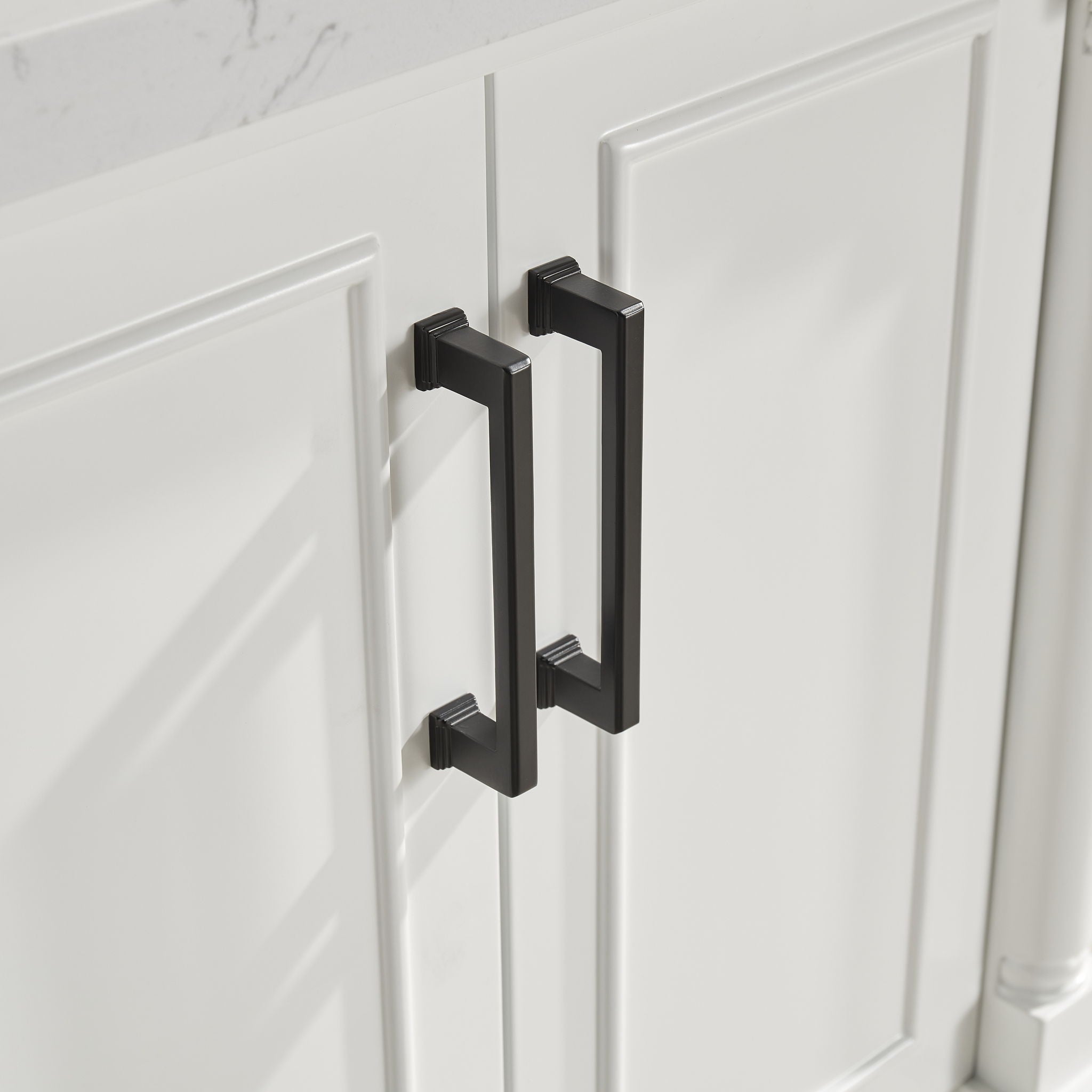 Freestanding Double Bathroom Vanity With Extra Black Handles - White