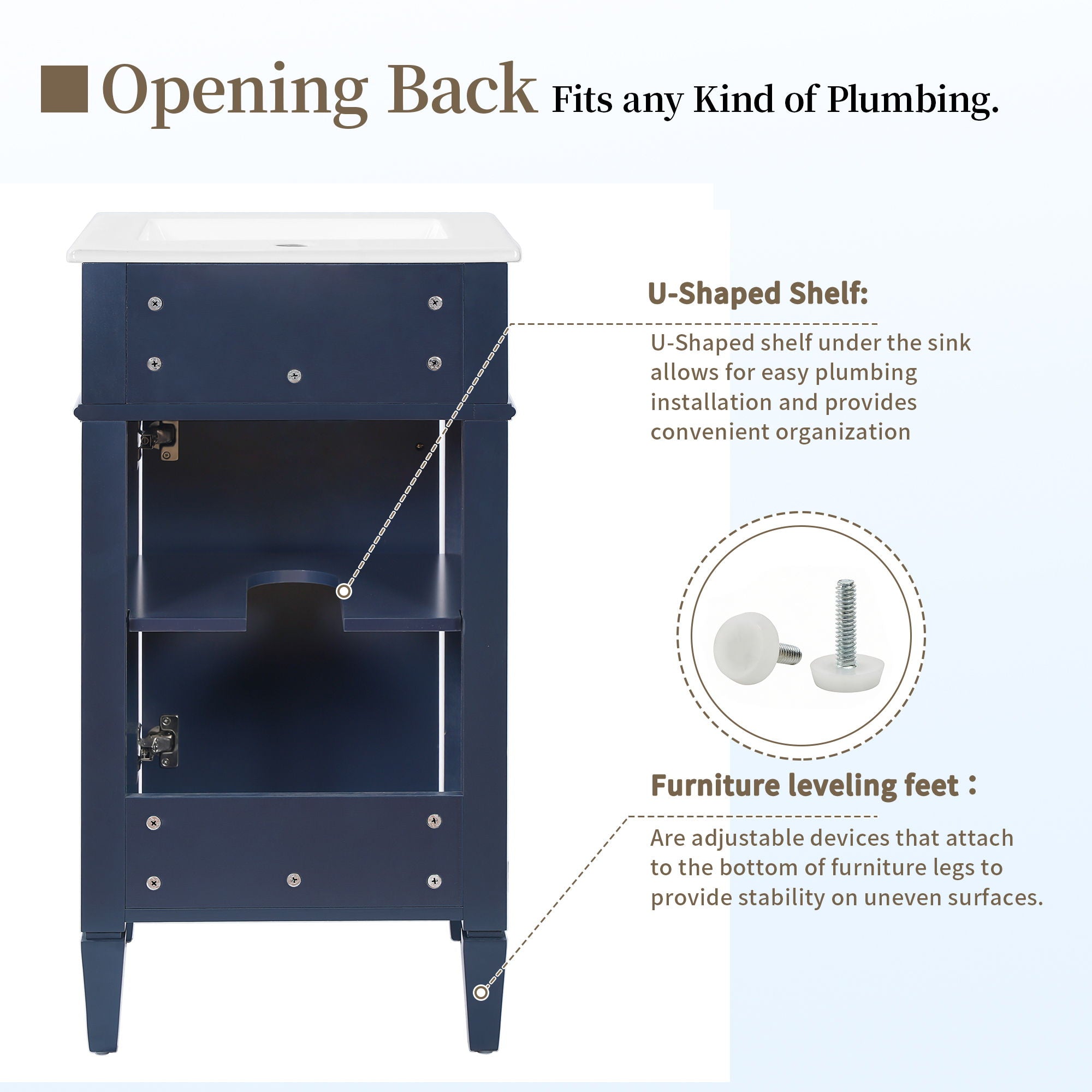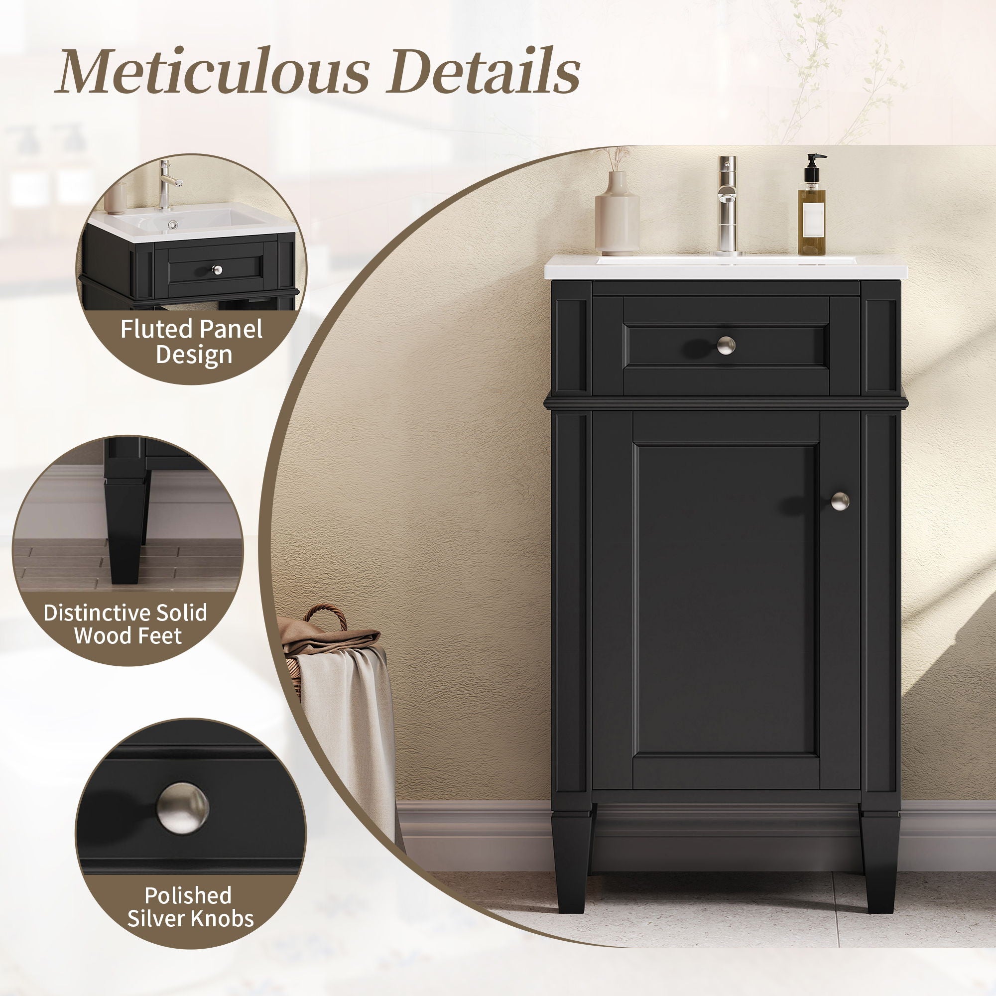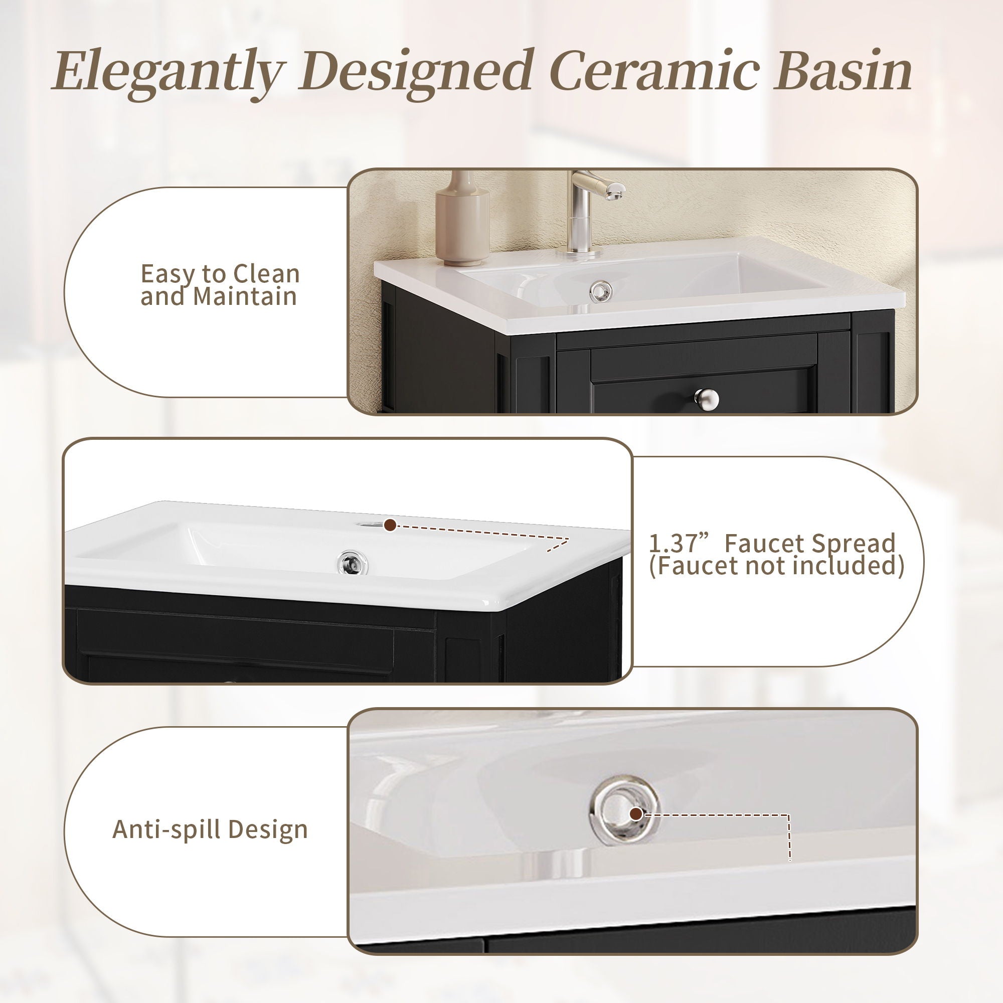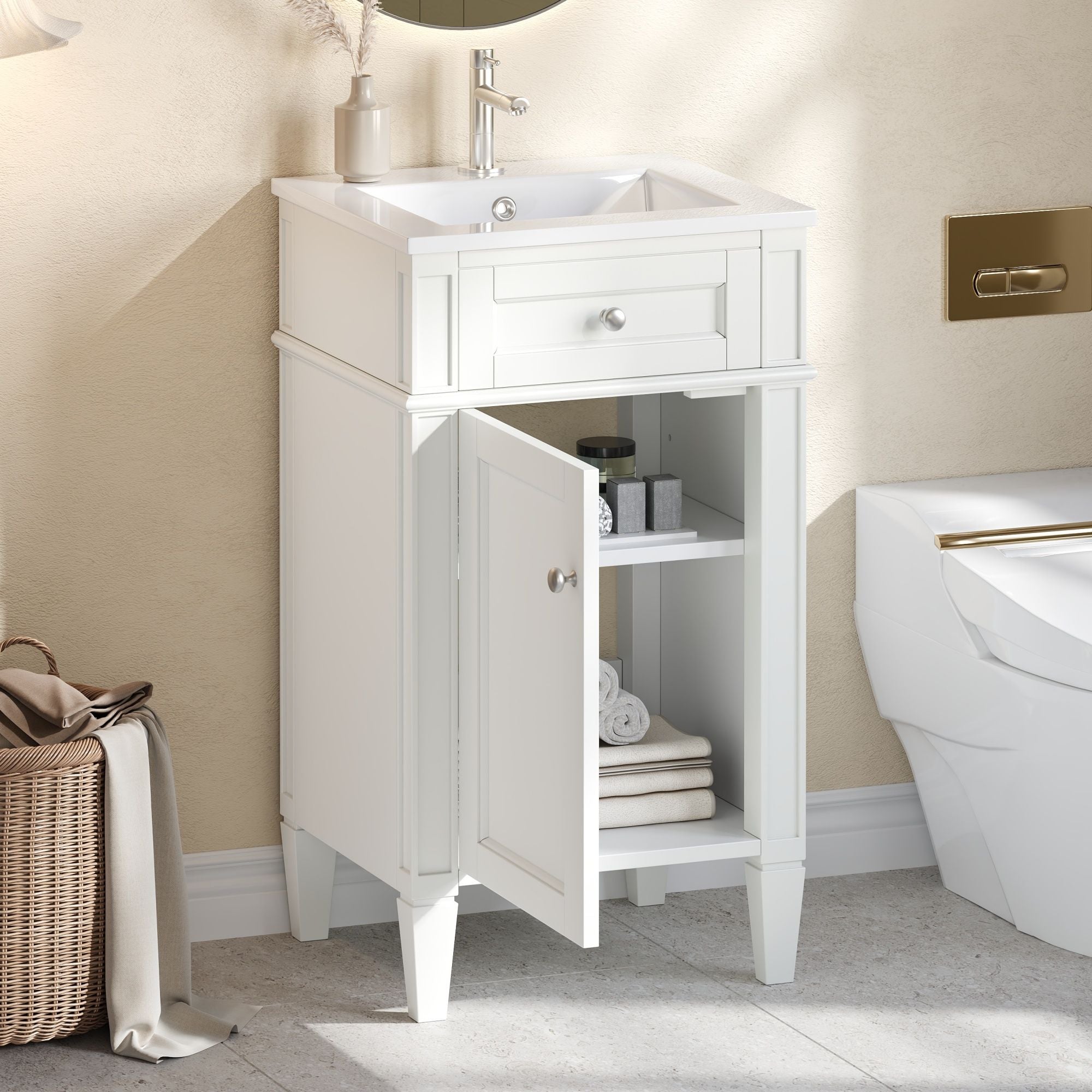 French Style Bathroom Vanity With Sink, Soft-Closing Door, Adjustable Shelf, Rectangular Design