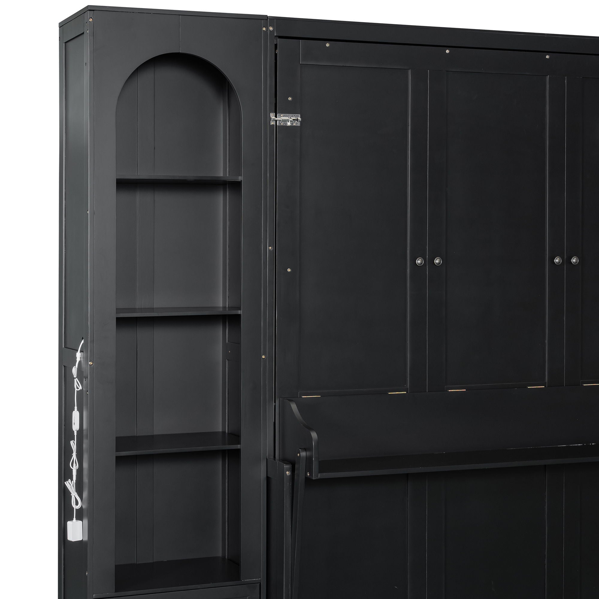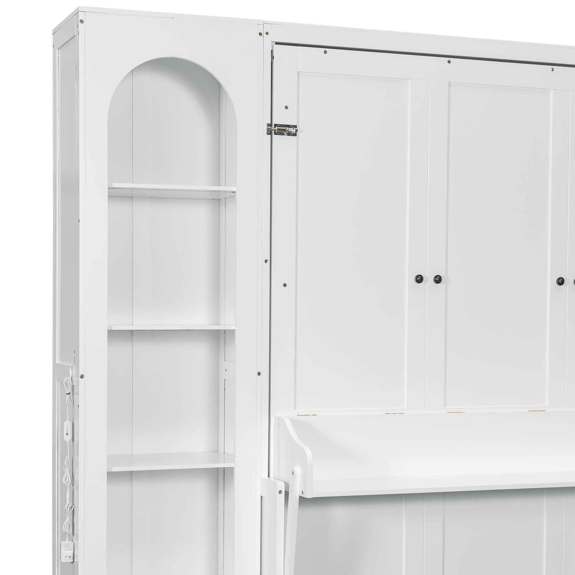French Style Murphy Platform Bed With Shelf, Side Cabinets, Drawers And LED