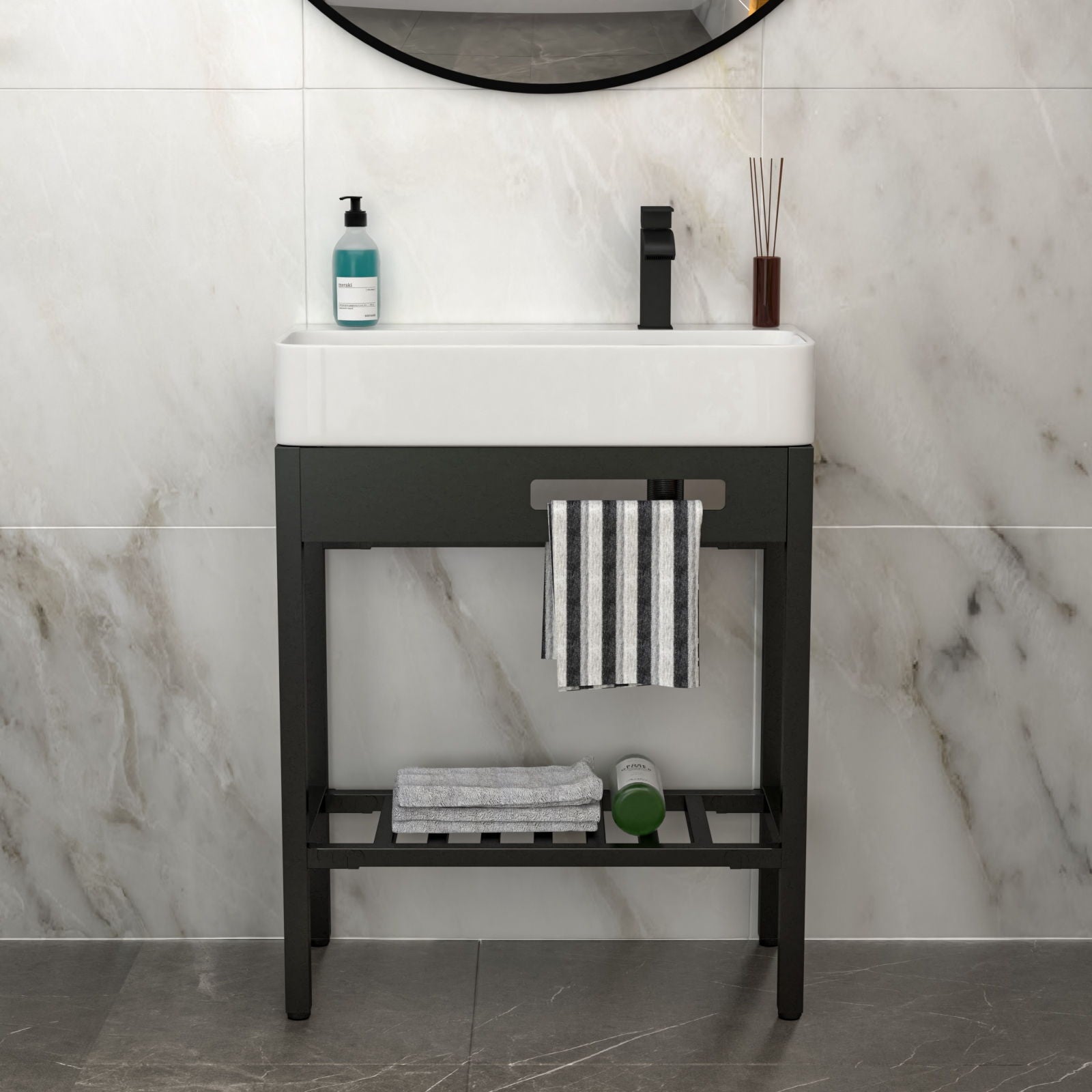 Inspired Console Sink With Built In Washboard, Overflow & Sleek Legs, 28" X 12" - White / Black