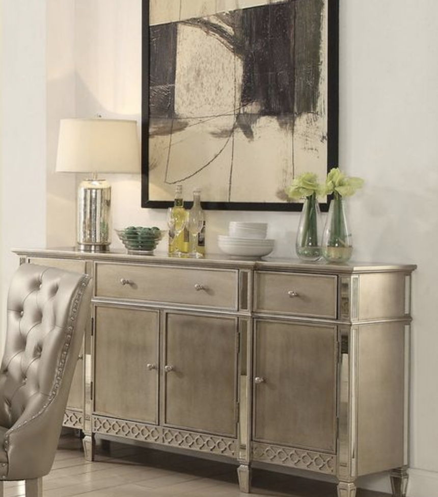 Elegant Design: This server boasts a mirrored and champagne finish, exuding sophistication and elegance in any dining or living space....