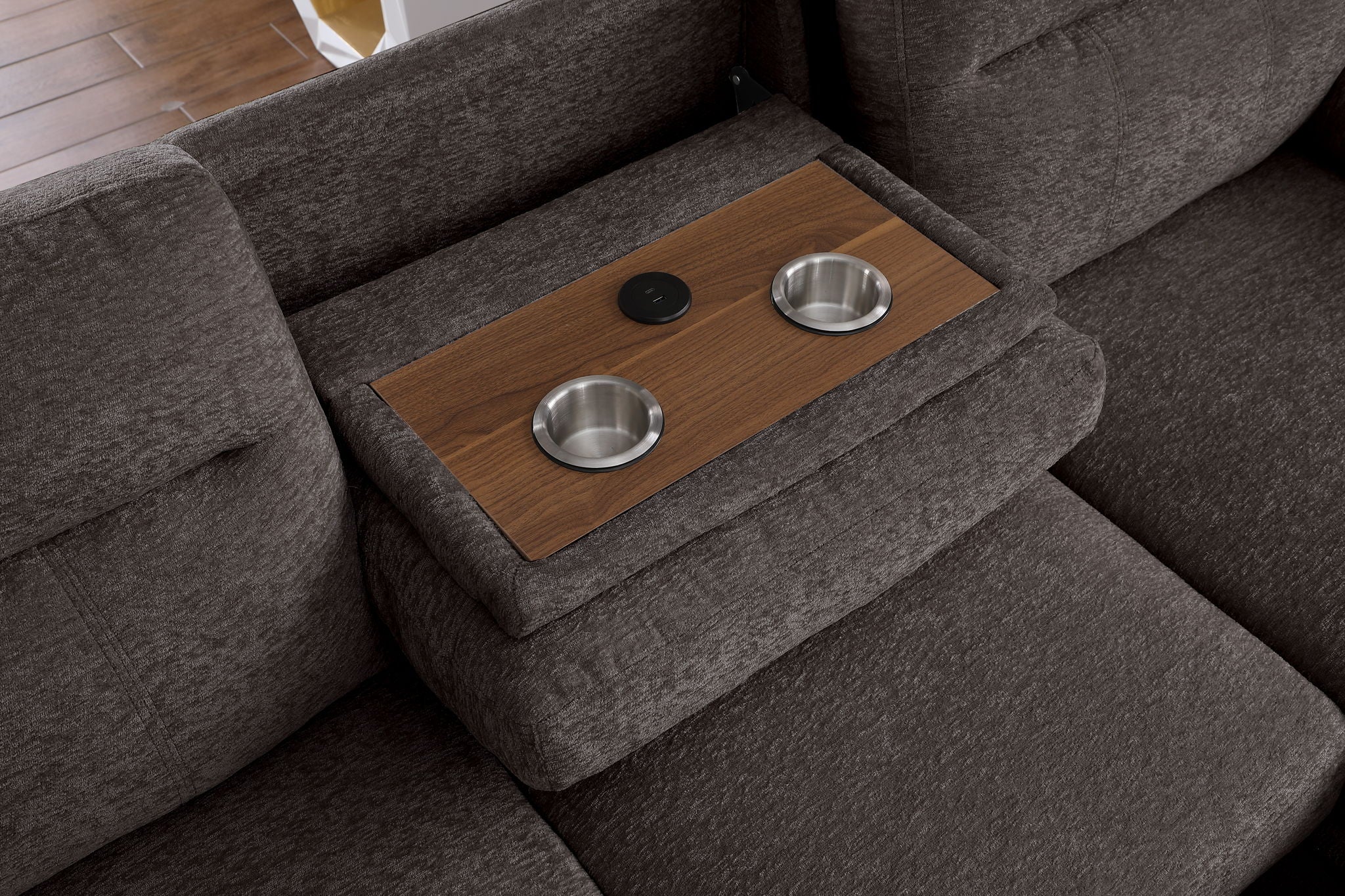 Kipling II - Sleeper Sectional Sofa With Right Facing Chaise, Cupholders, USB Charging Port - Dark Gray63.5"W x 94.0"D x 36.5"H - 253.0 lb