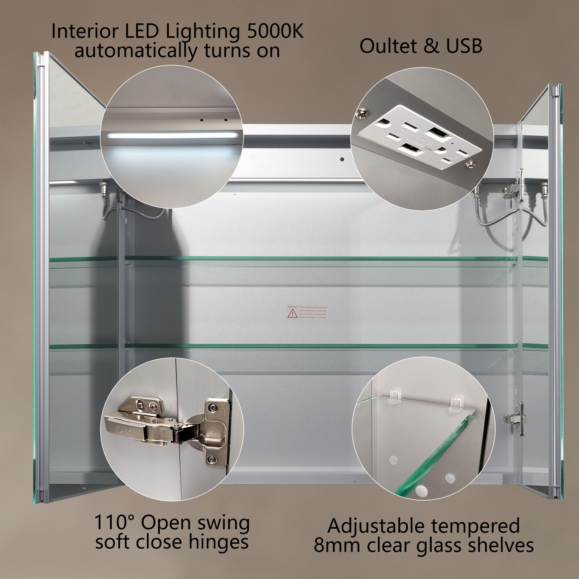Stepless Brightness Adjustment: Customize the brightness from 10% to 100% and choose from 3000K-6400K color temperatures. Efficient Defogging Technology: Mirror...
