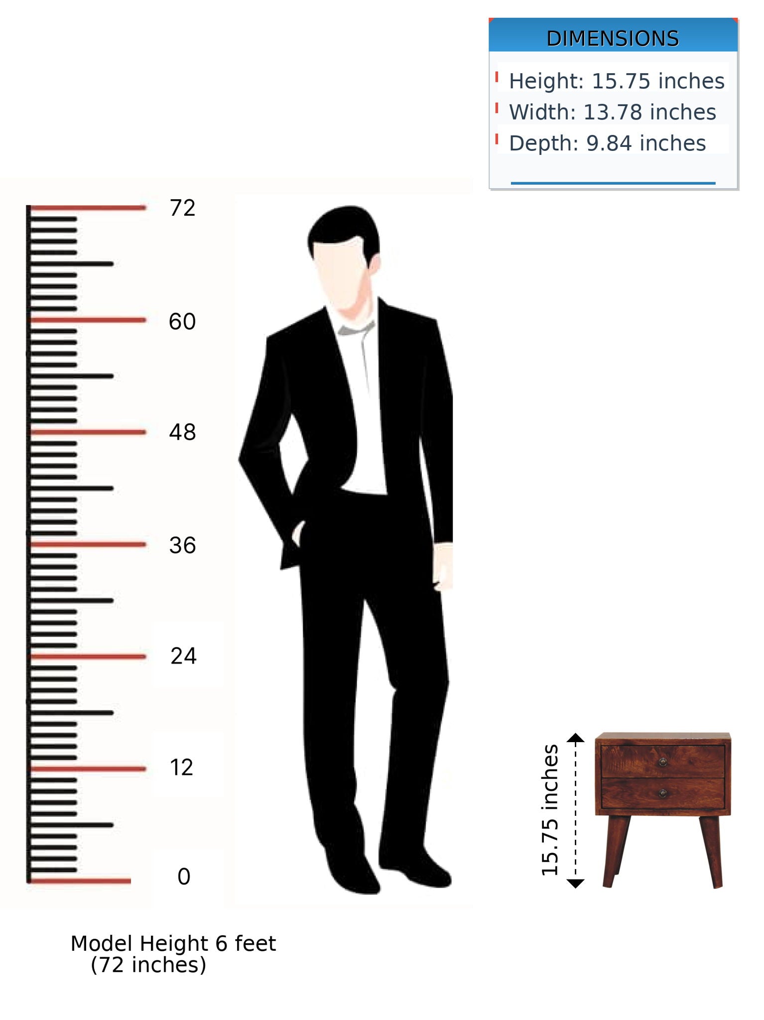 Mini Modern Bedside Table - Chestnut