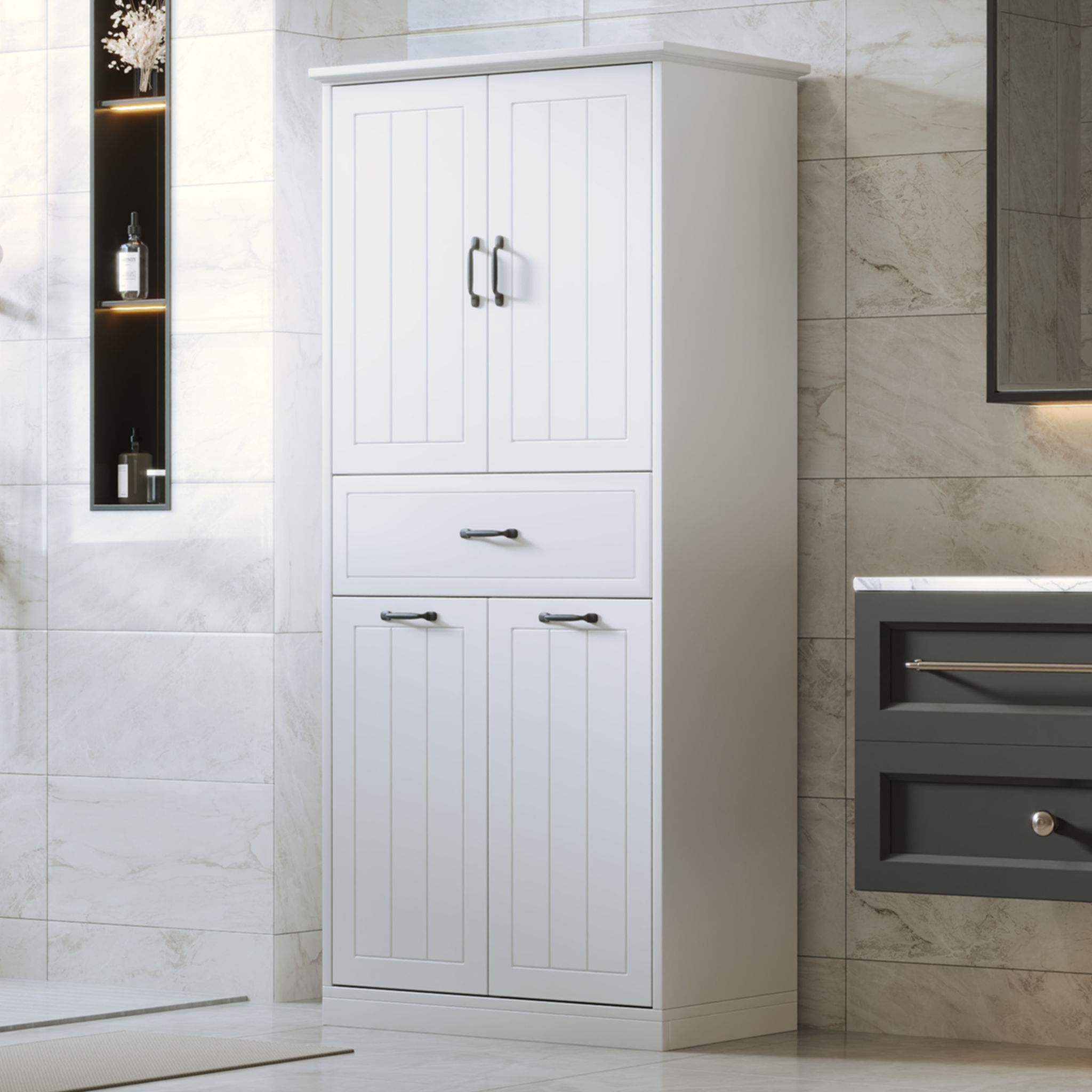 Modern Bathroom Storage Cabinet With Two Laundry Baskets, One Drawer, Adjustable Shelf
