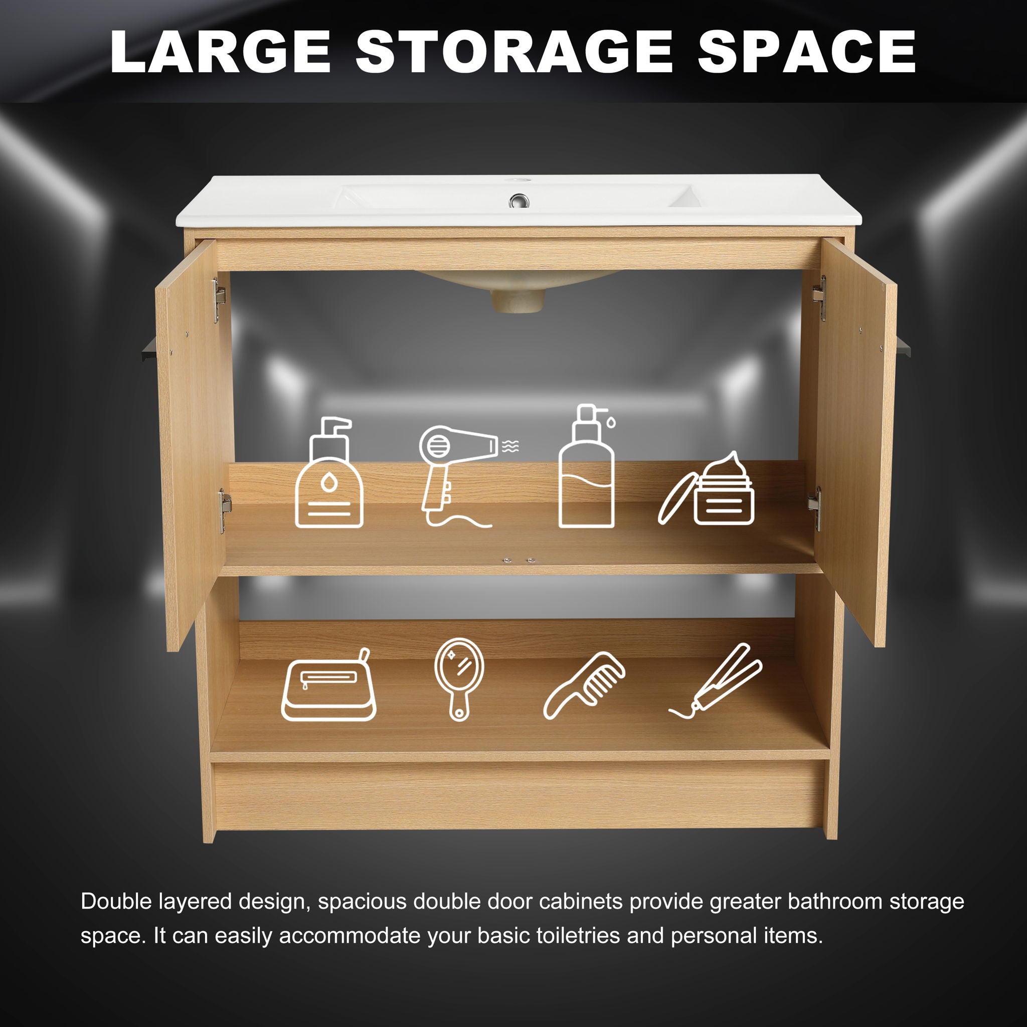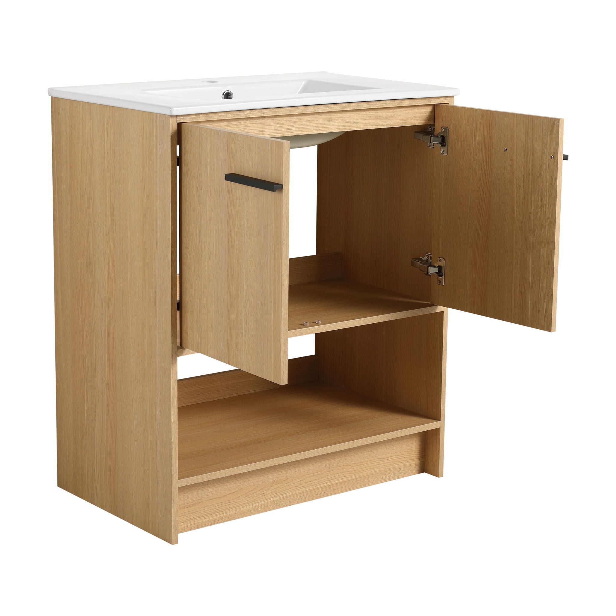 Modern Bathroom Vanity With Ceramic Sink, Freestanding Cabinet, Soft Closing Doors