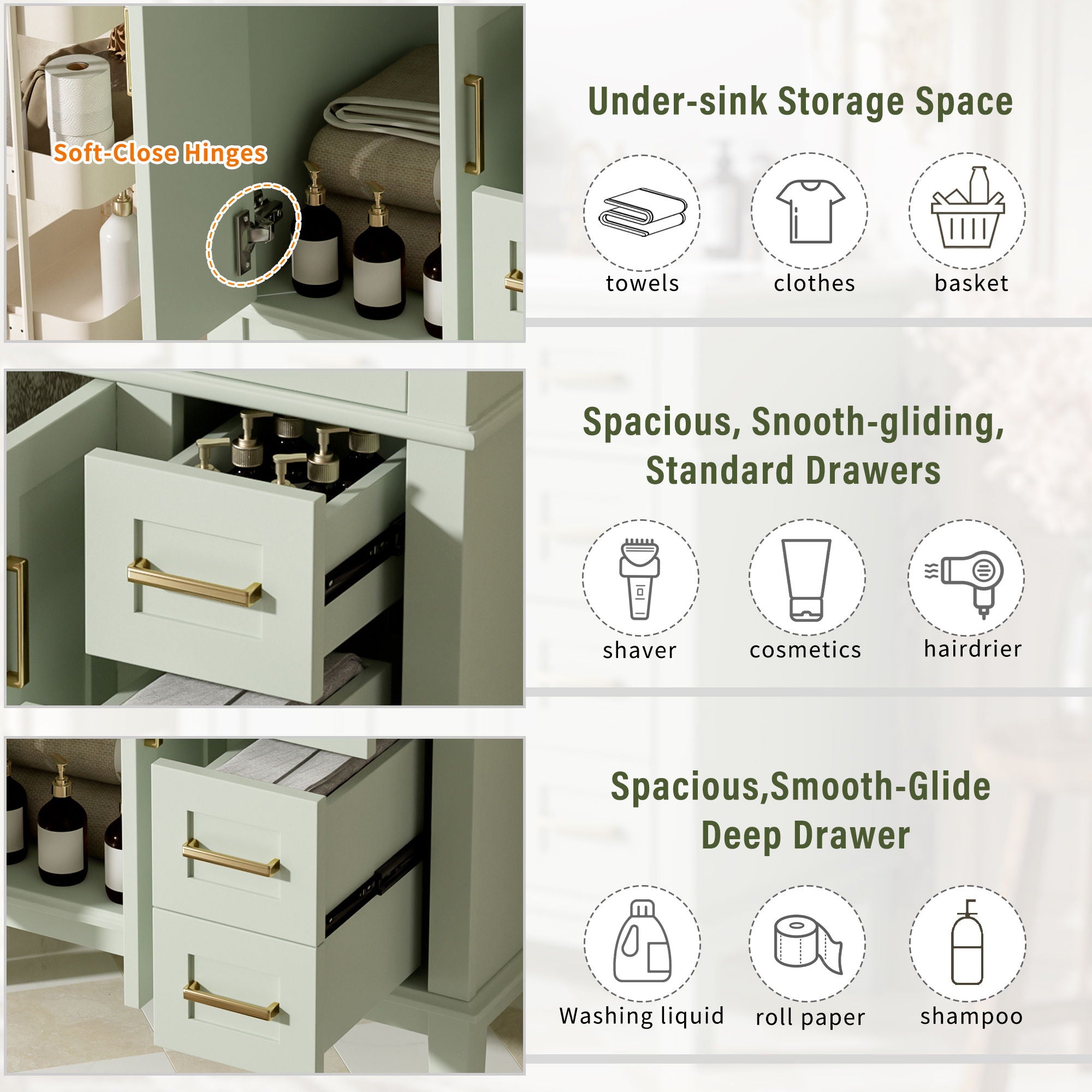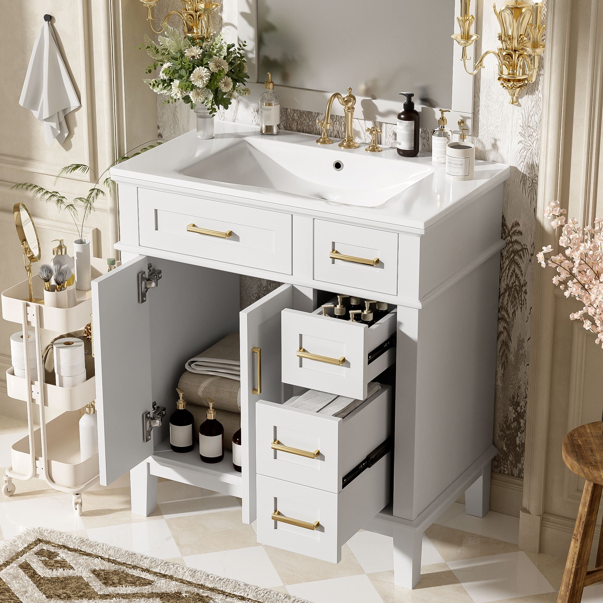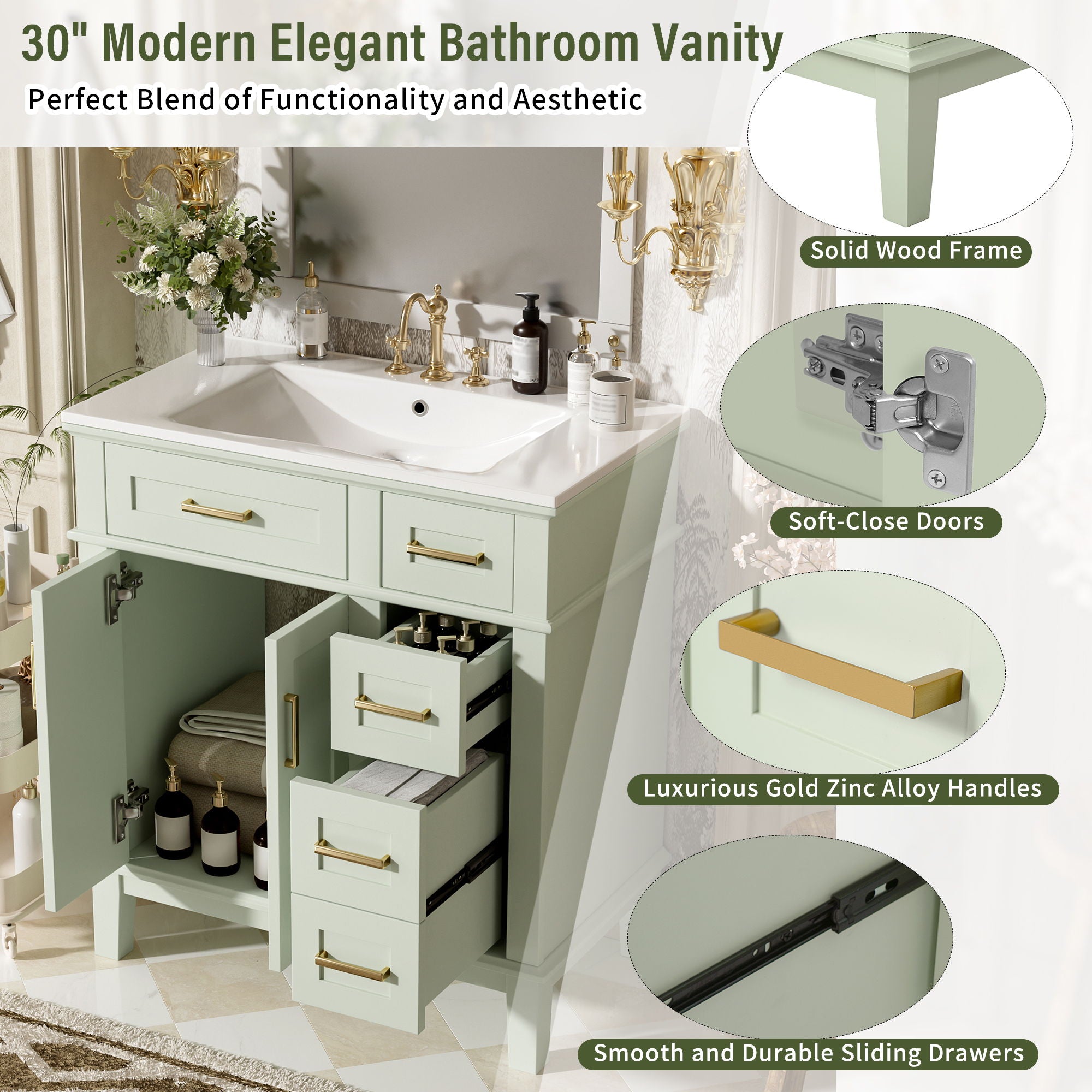 Modern Bathroom Vanity With Ceramic Sink, Soft Close Storage Cabinet