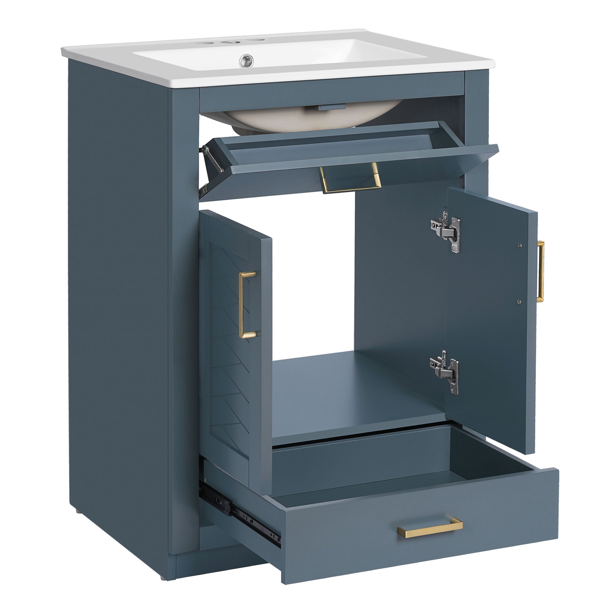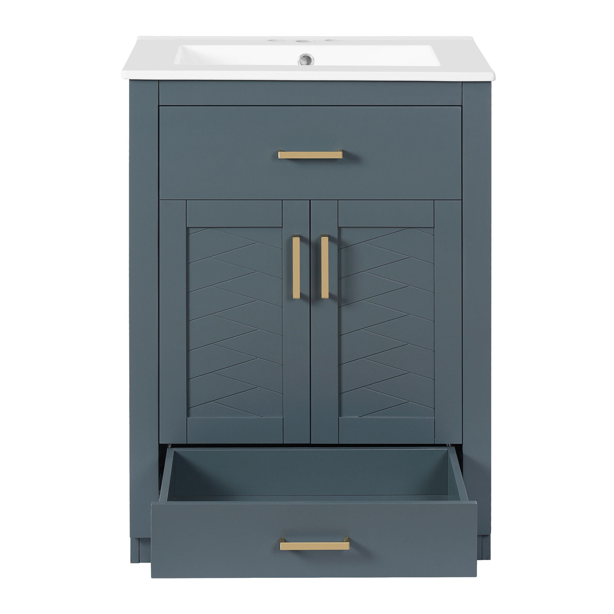 Modern Bathroom Vanity With Integrated Ceramic Sink, 2 Door Cabinet With Tip-Out Drawer
