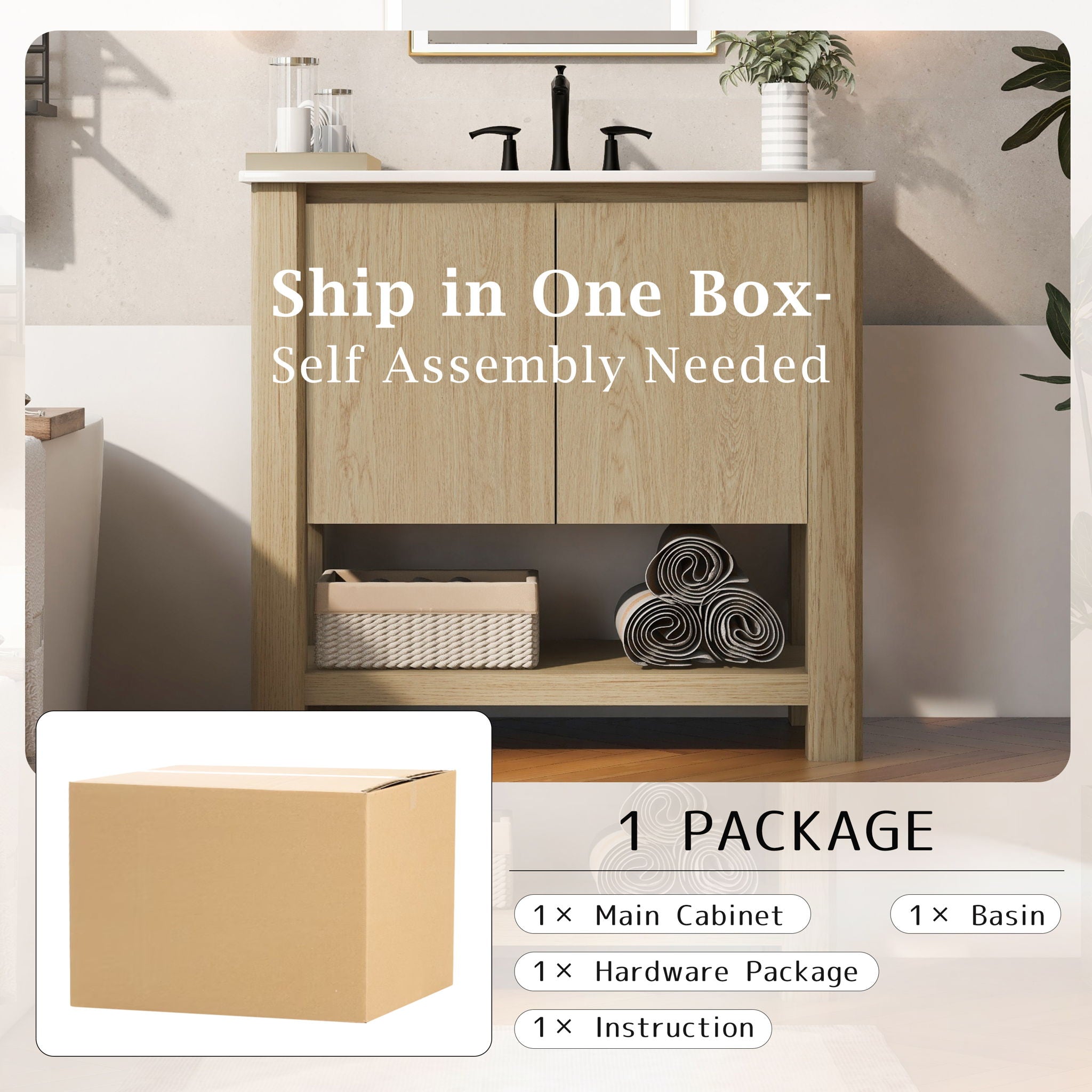 Modern Bathroom Vanity With Rectangle Ceramic Sink, Soft Closing Doors