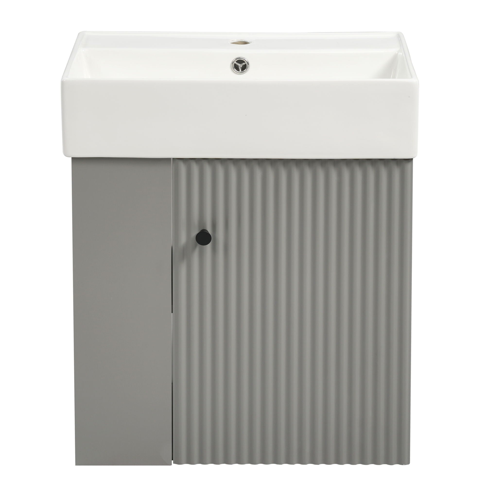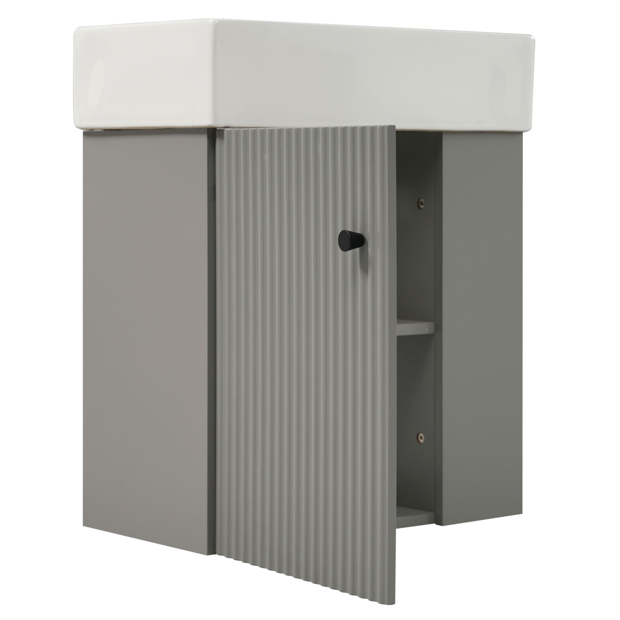 Modern Floating Bathroom Vanity With Ceramic Basin, Perfect For Small Bathrooms, Left Side Storage - Black12.2"W x 21.6"D x 26.4"H - 48.39 lb