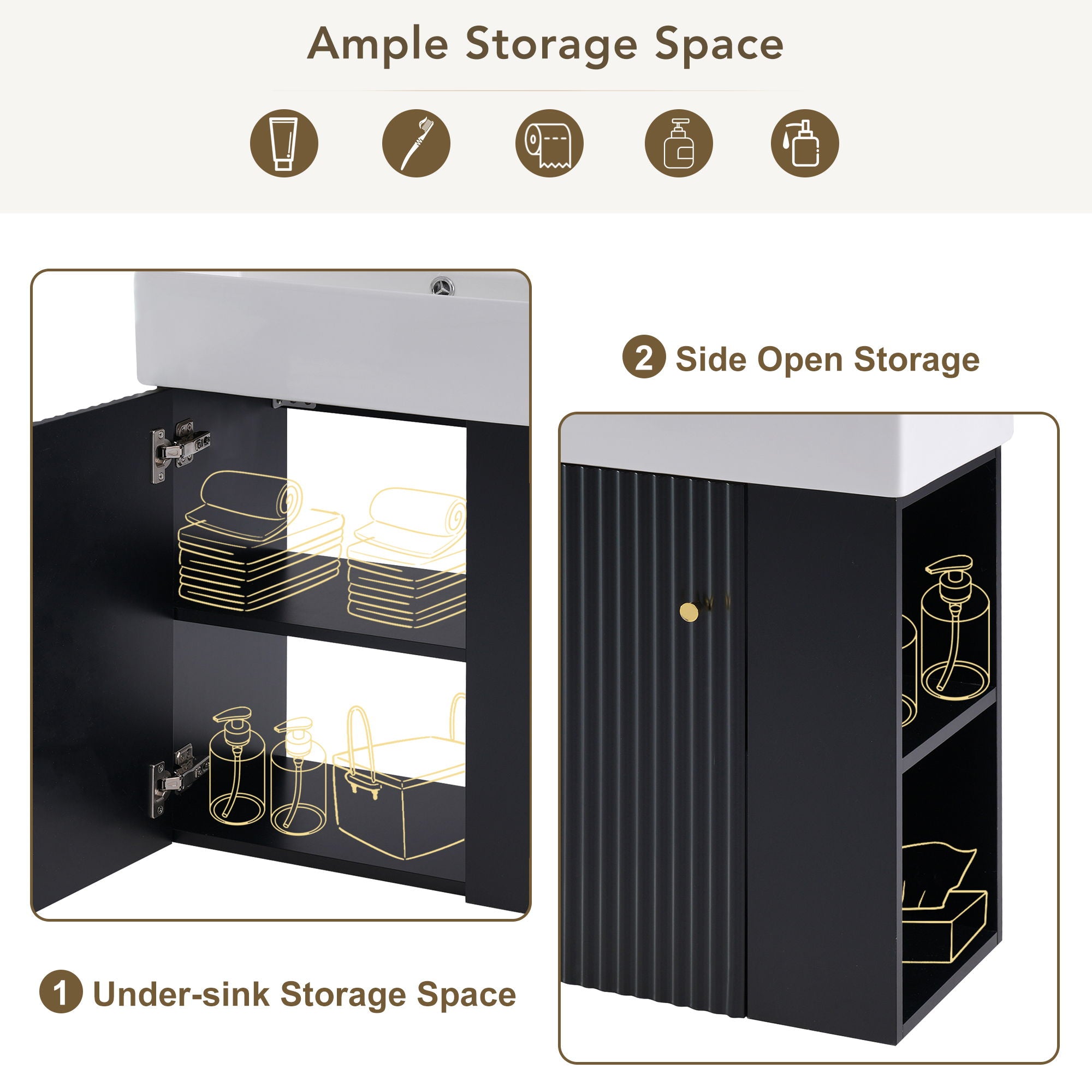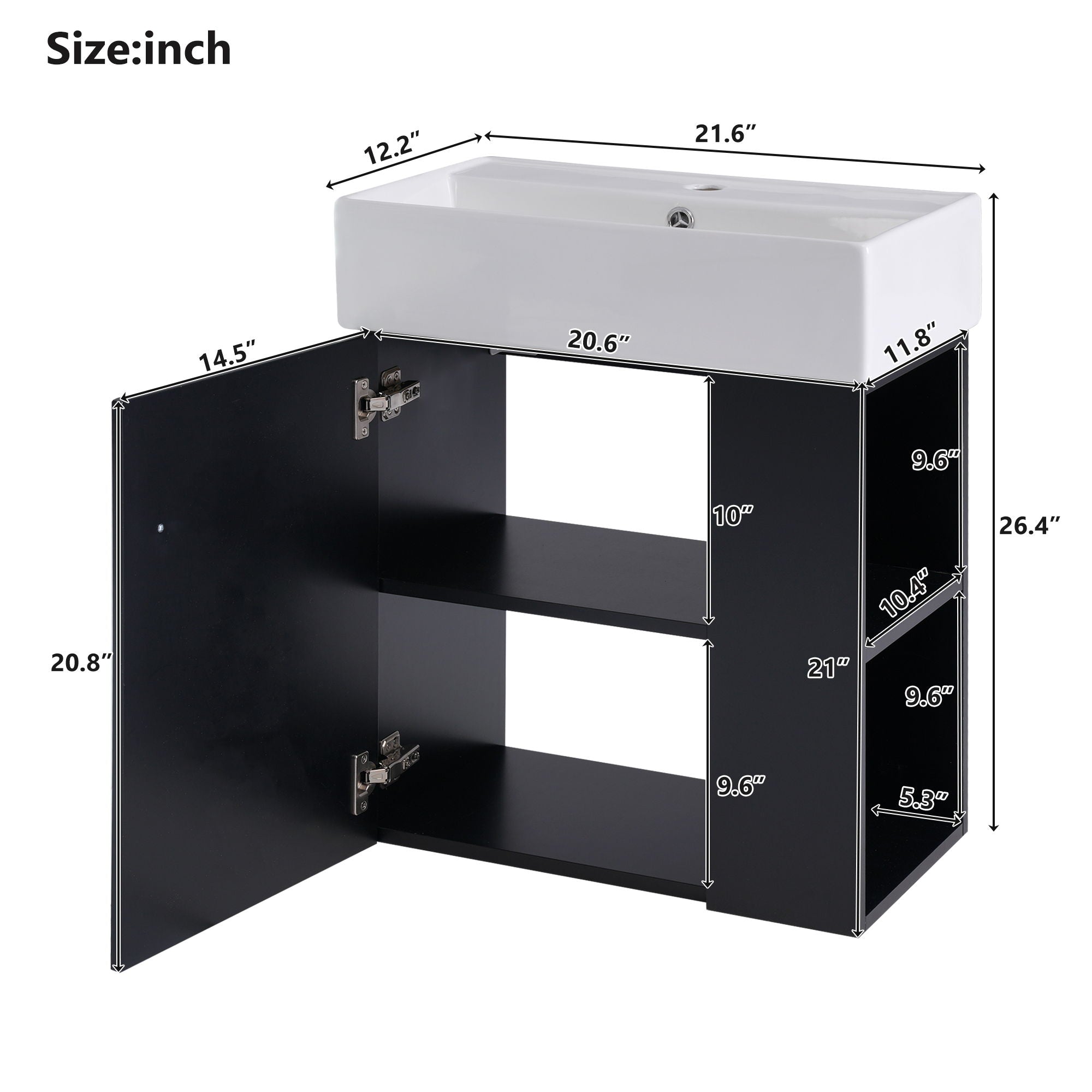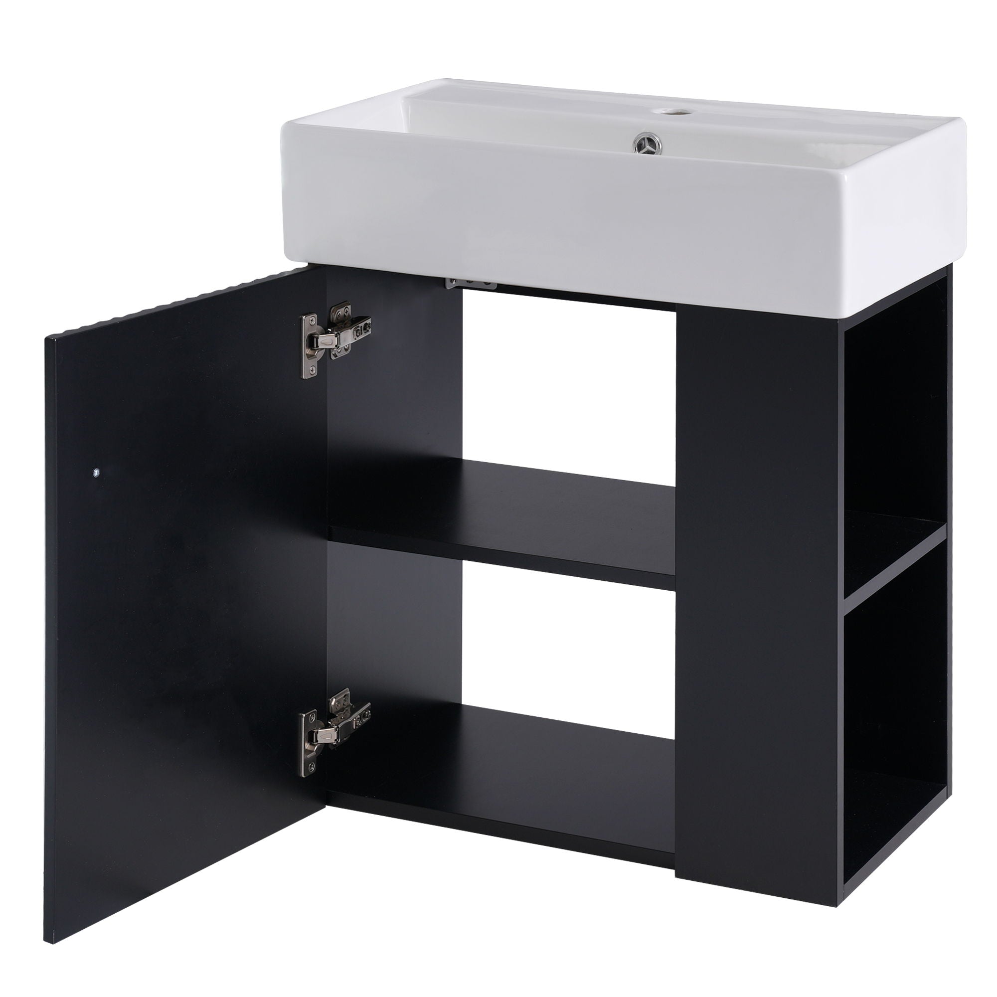 Modern Floating Bathroom Vanity With Ceramic Basin, Perfect For Small Bathrooms, Right Side Storage - Black12.2"W x 21.6"D x 26.4"H - 48.39 lb