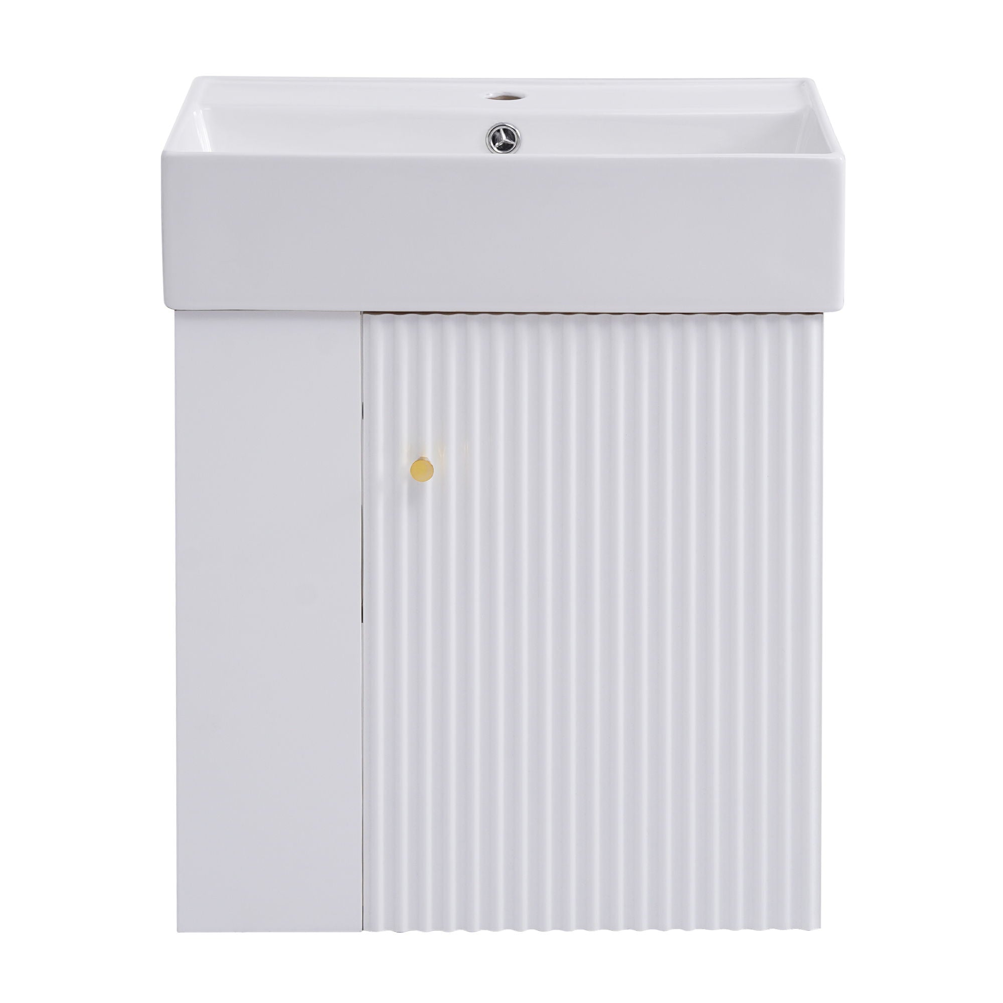 Modern Floating Bathroom Vanity With Ceramic Basin Perfect For Small Bathrooms, Left Side Storage - White12.2"W x 21.6"D x 26.4"H - 48.39 lb
