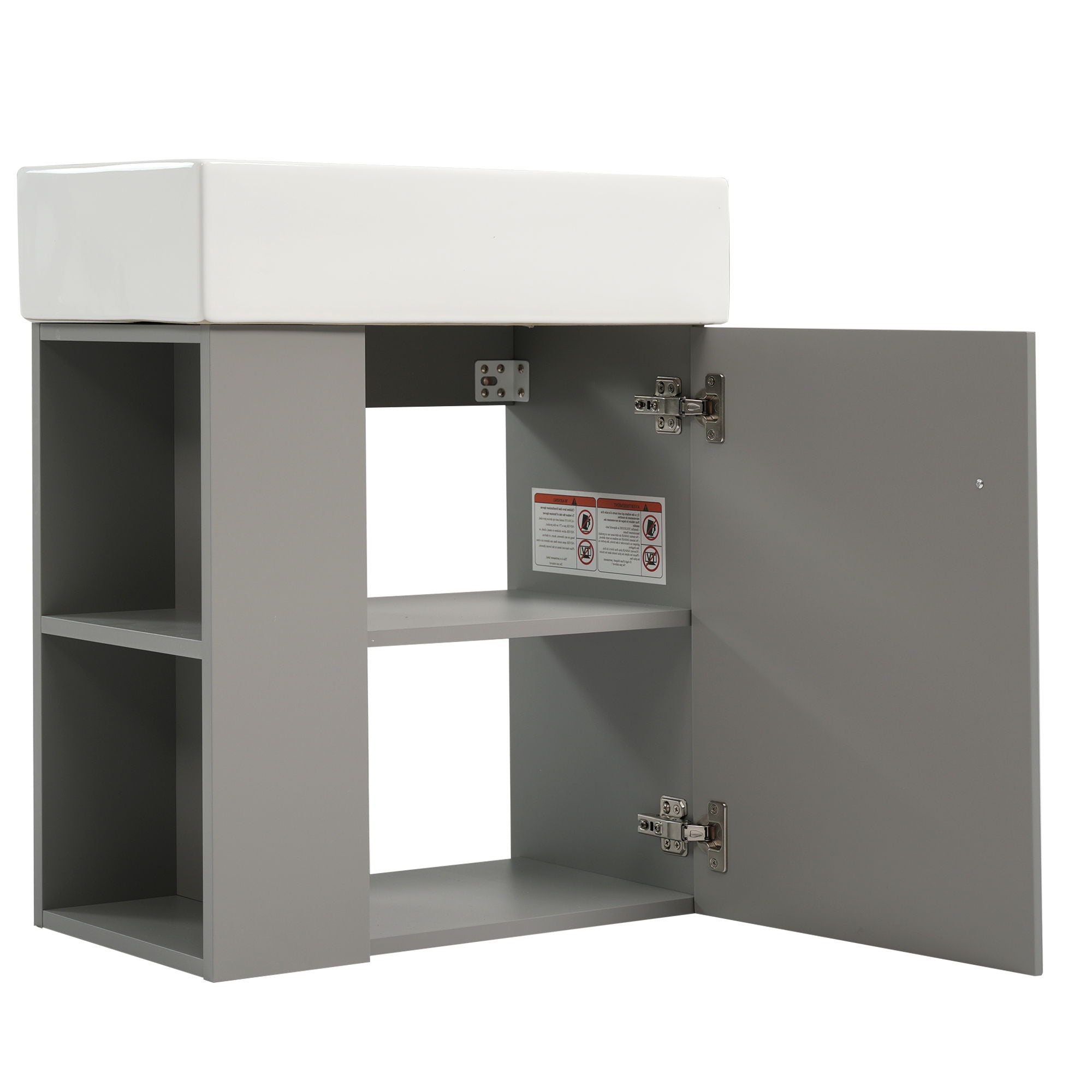 Floating Bathroom Vanity With Basin, Left Side Storage - Gray21.6"W x 12.2"D x 26.4"H - 53.57 lb