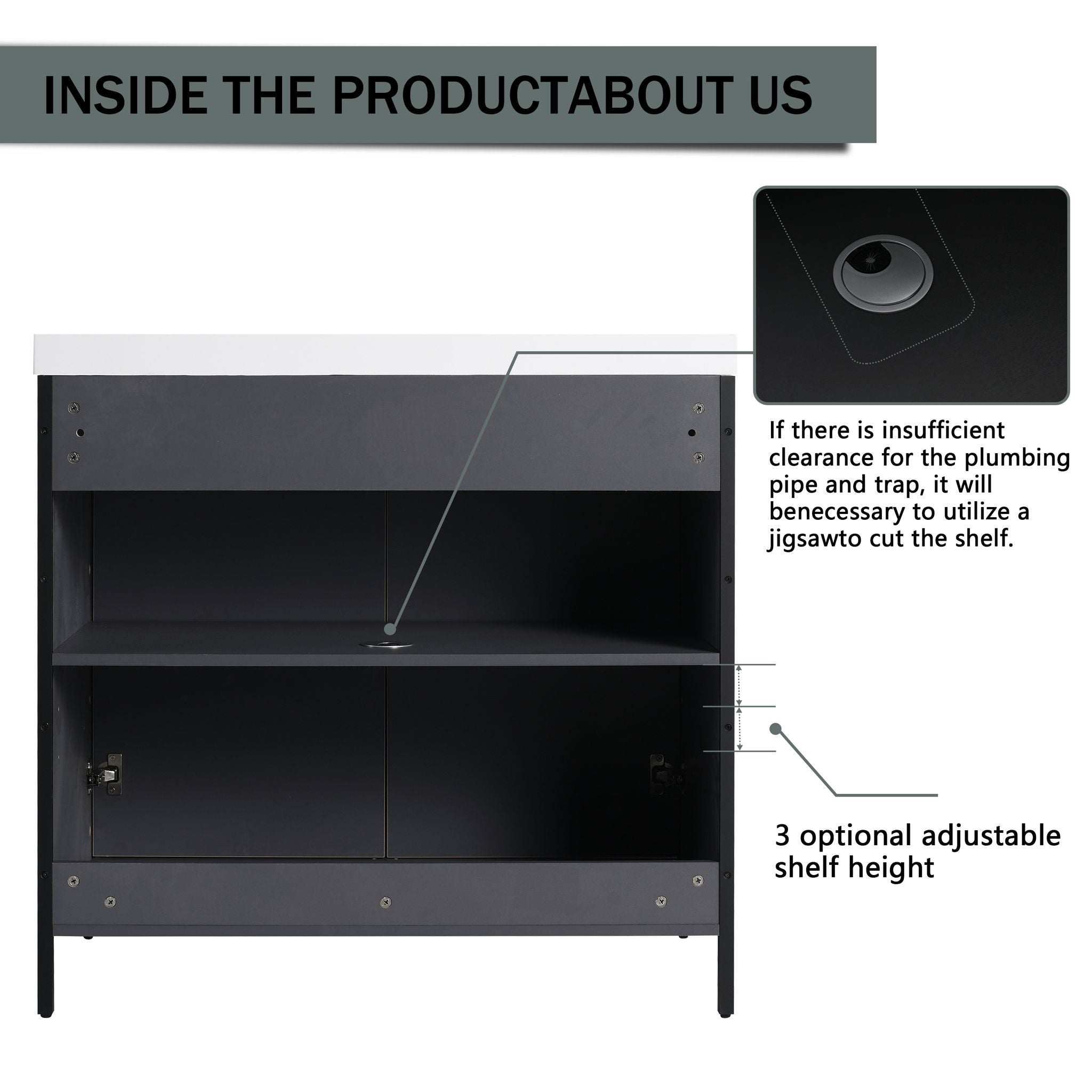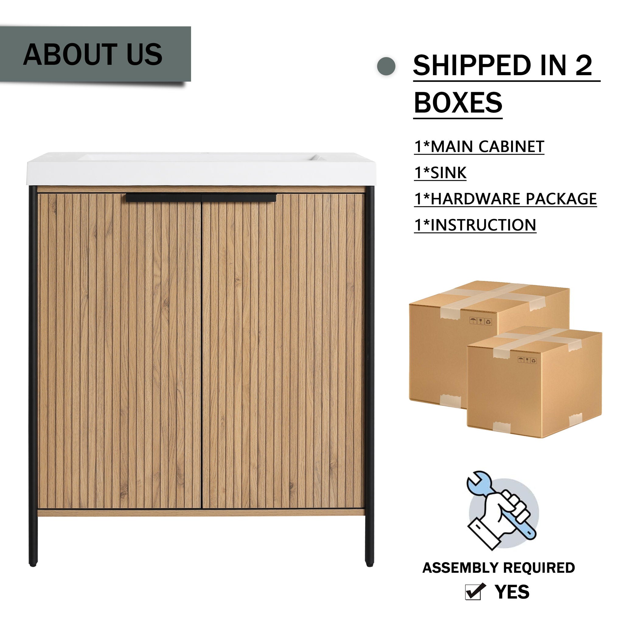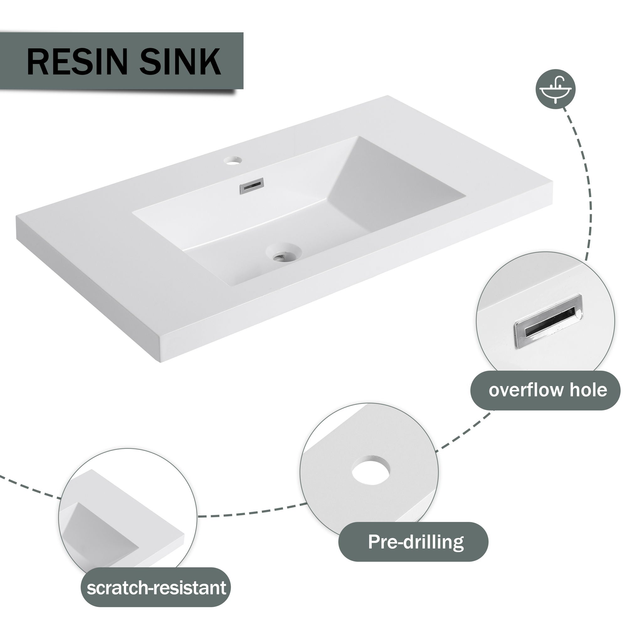 Modern Freestanding Bathroom Vanity With Resin Sink & Soft Close Cabinet Doors