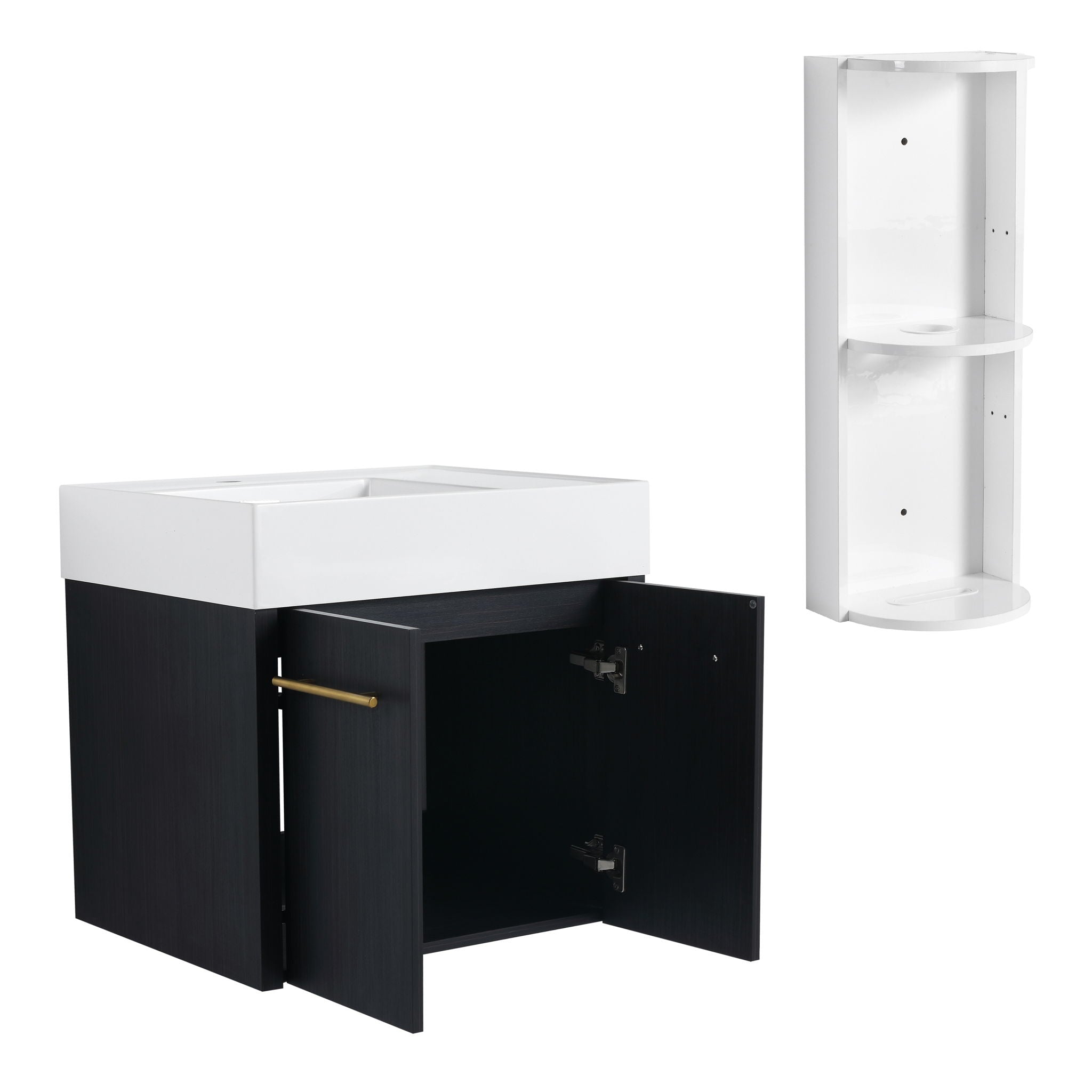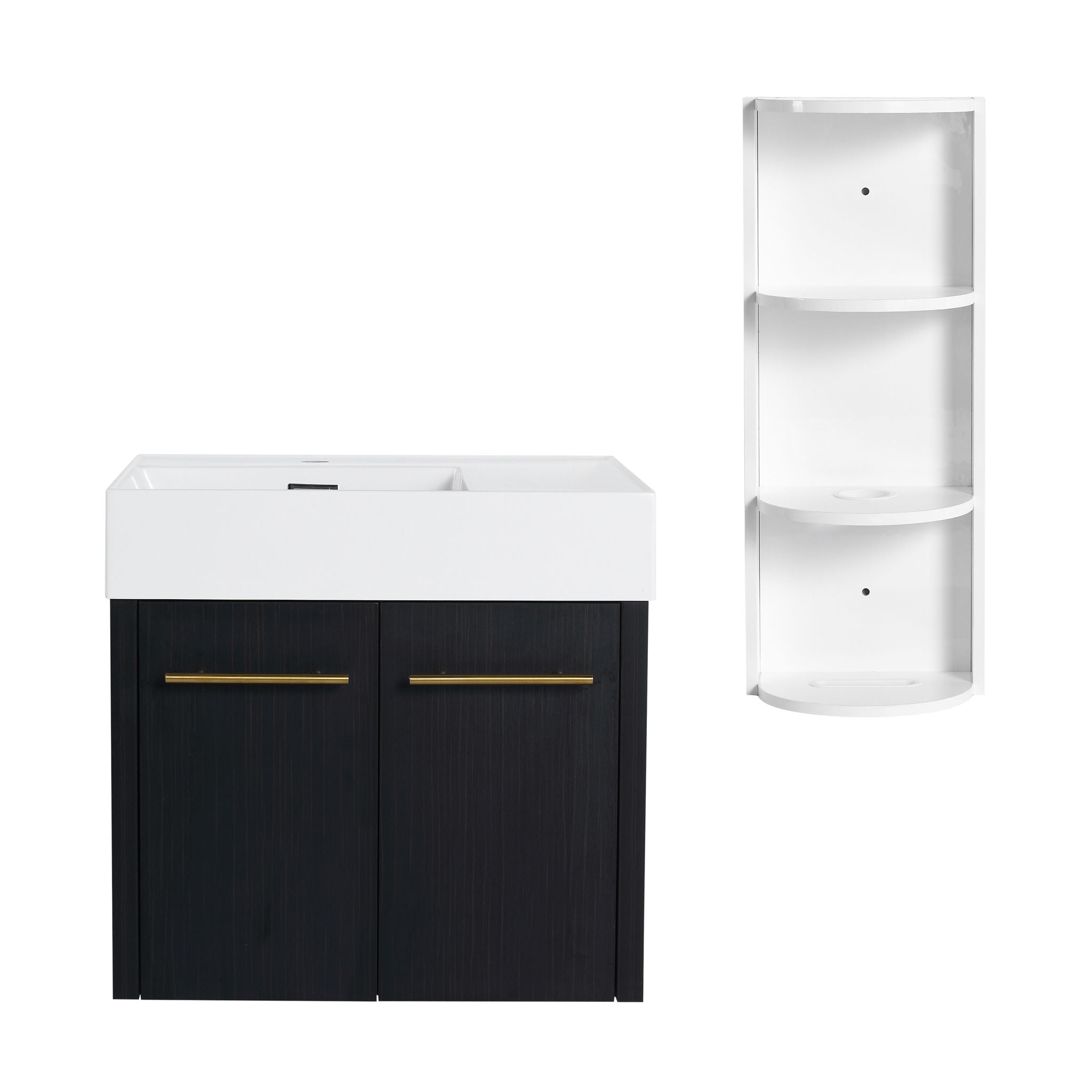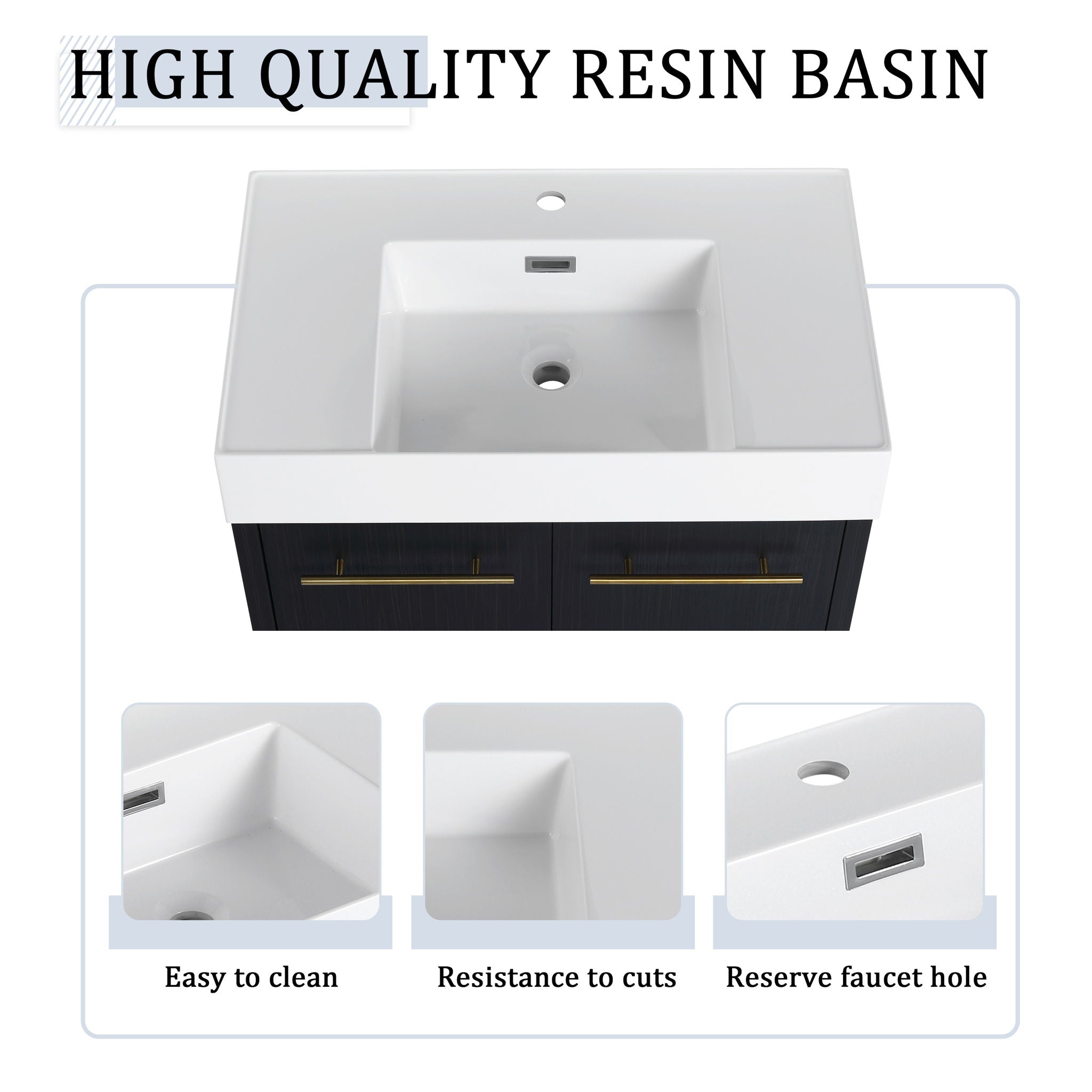 Modern Wall Mounted Bathroom Vanity With Thick Edge Resin Sink And Storage Rack