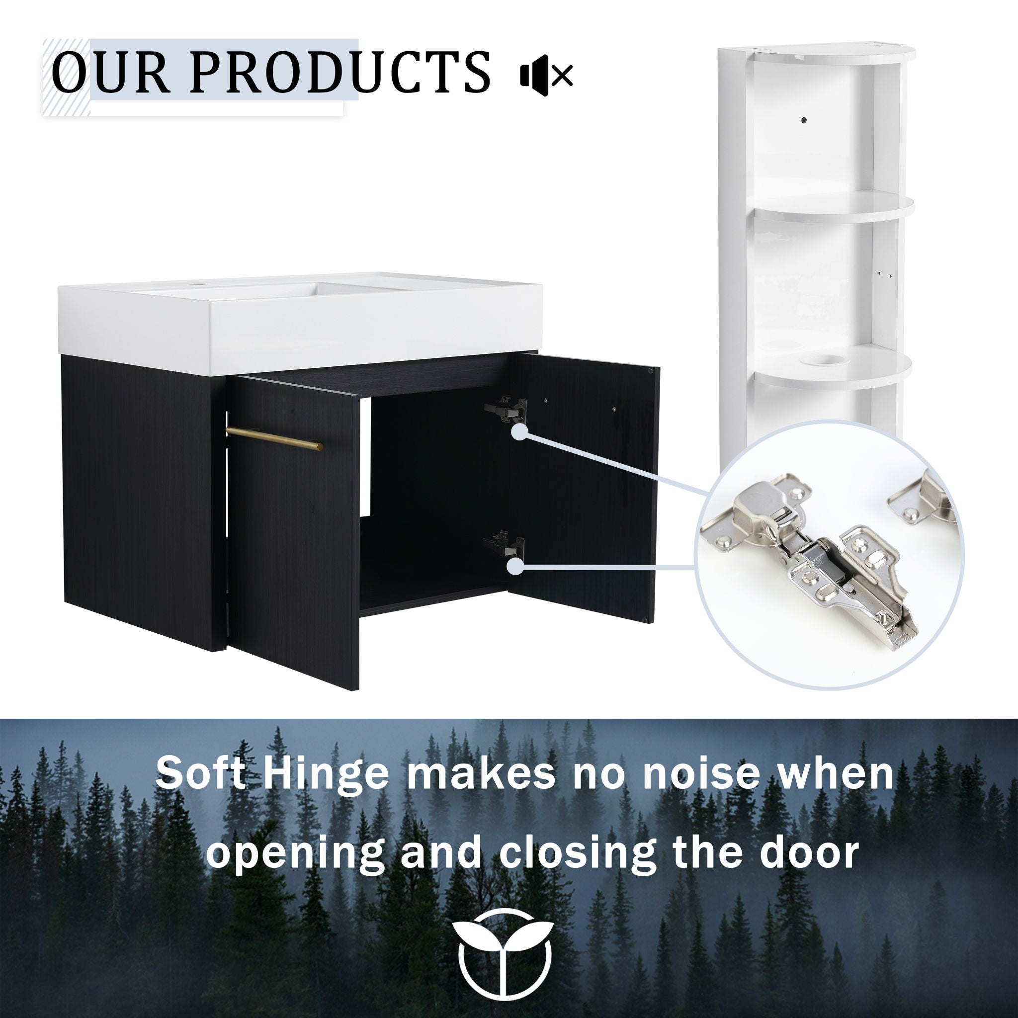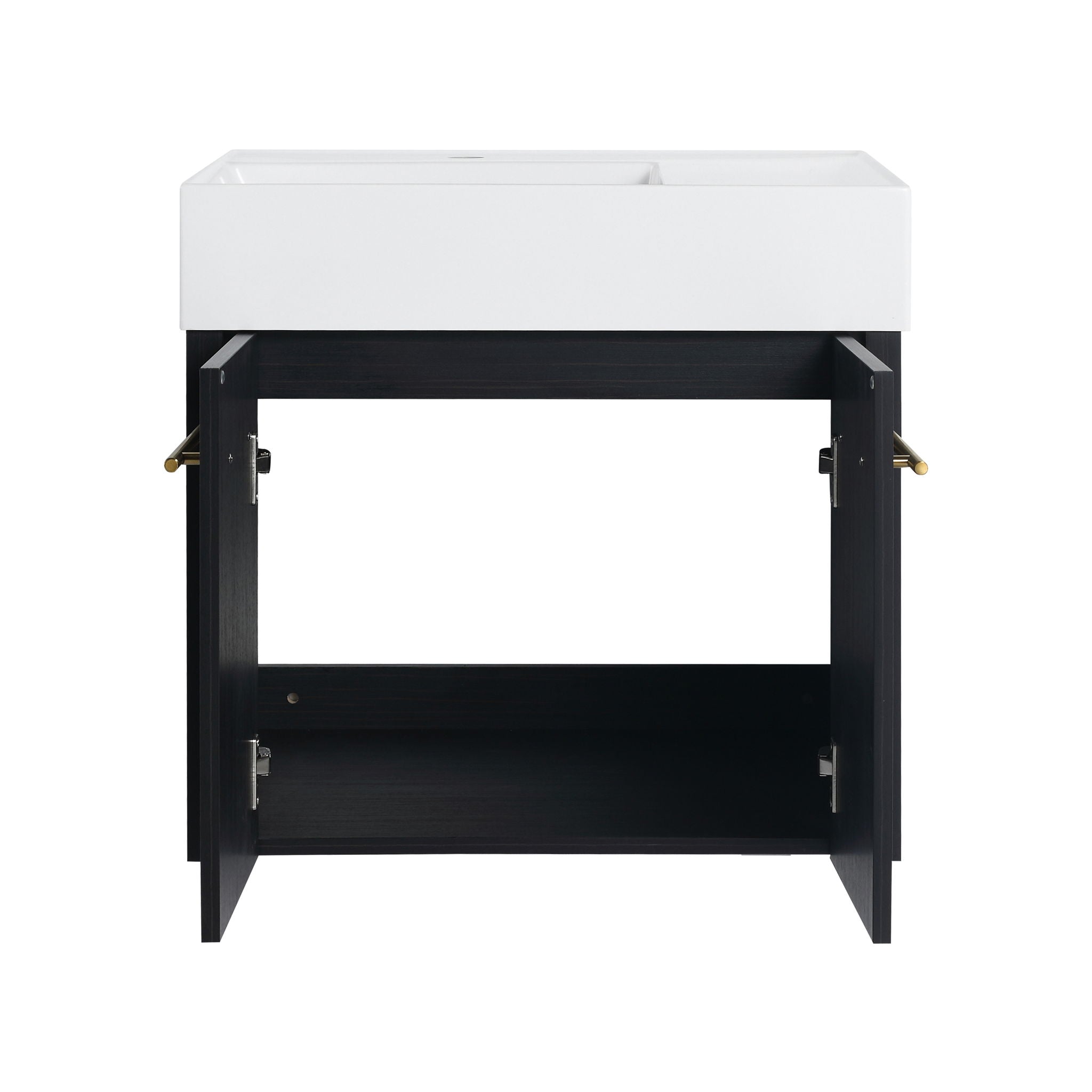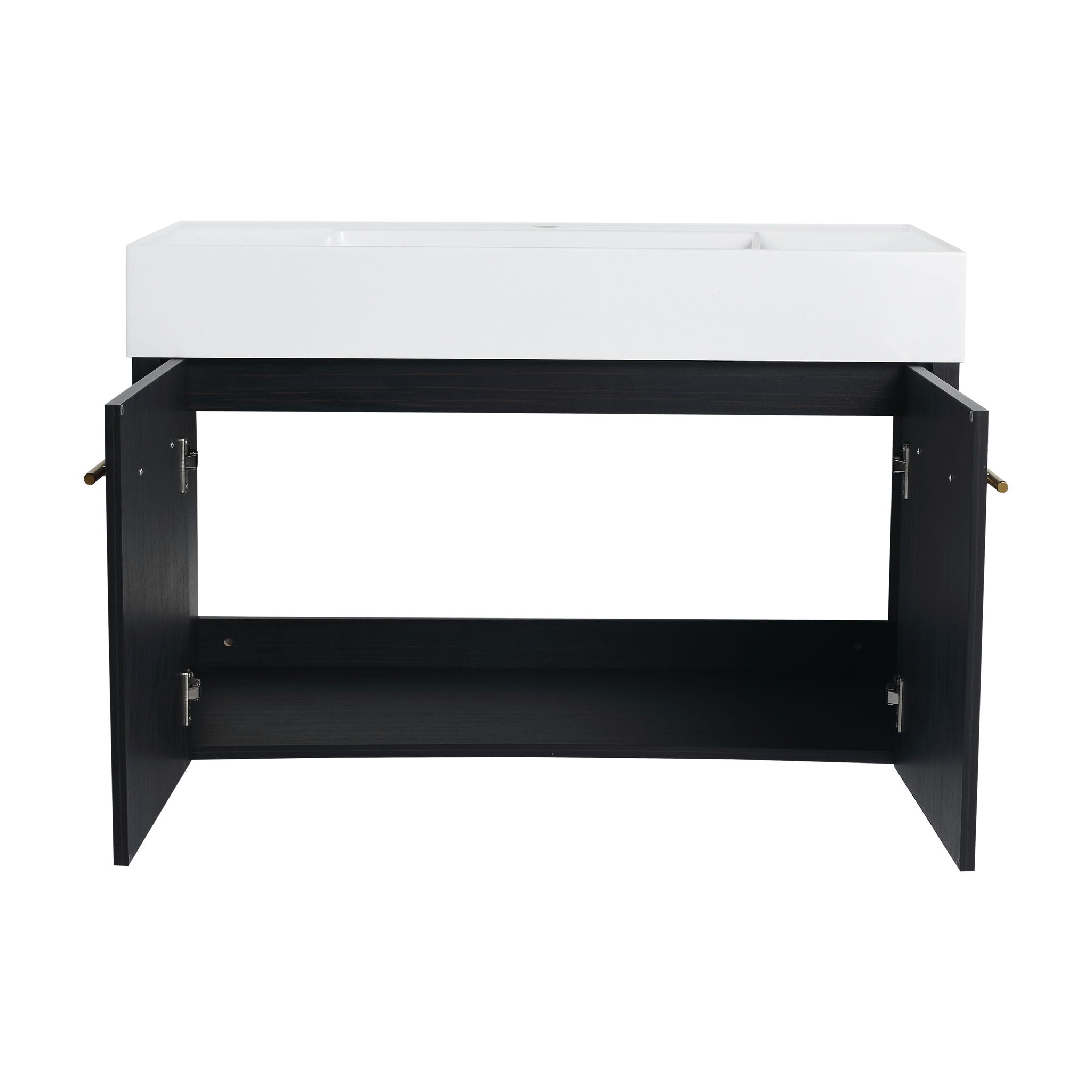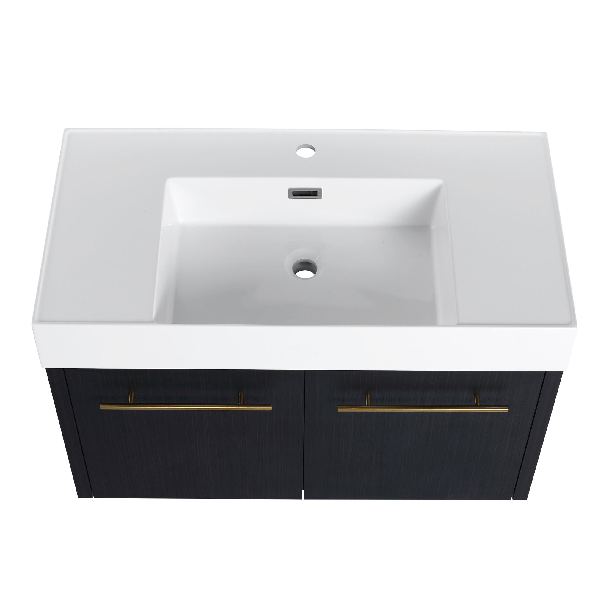 Modern Wall Mounted Bathroom Vanity With Thick Edge Resin Sink And Storage Rack
