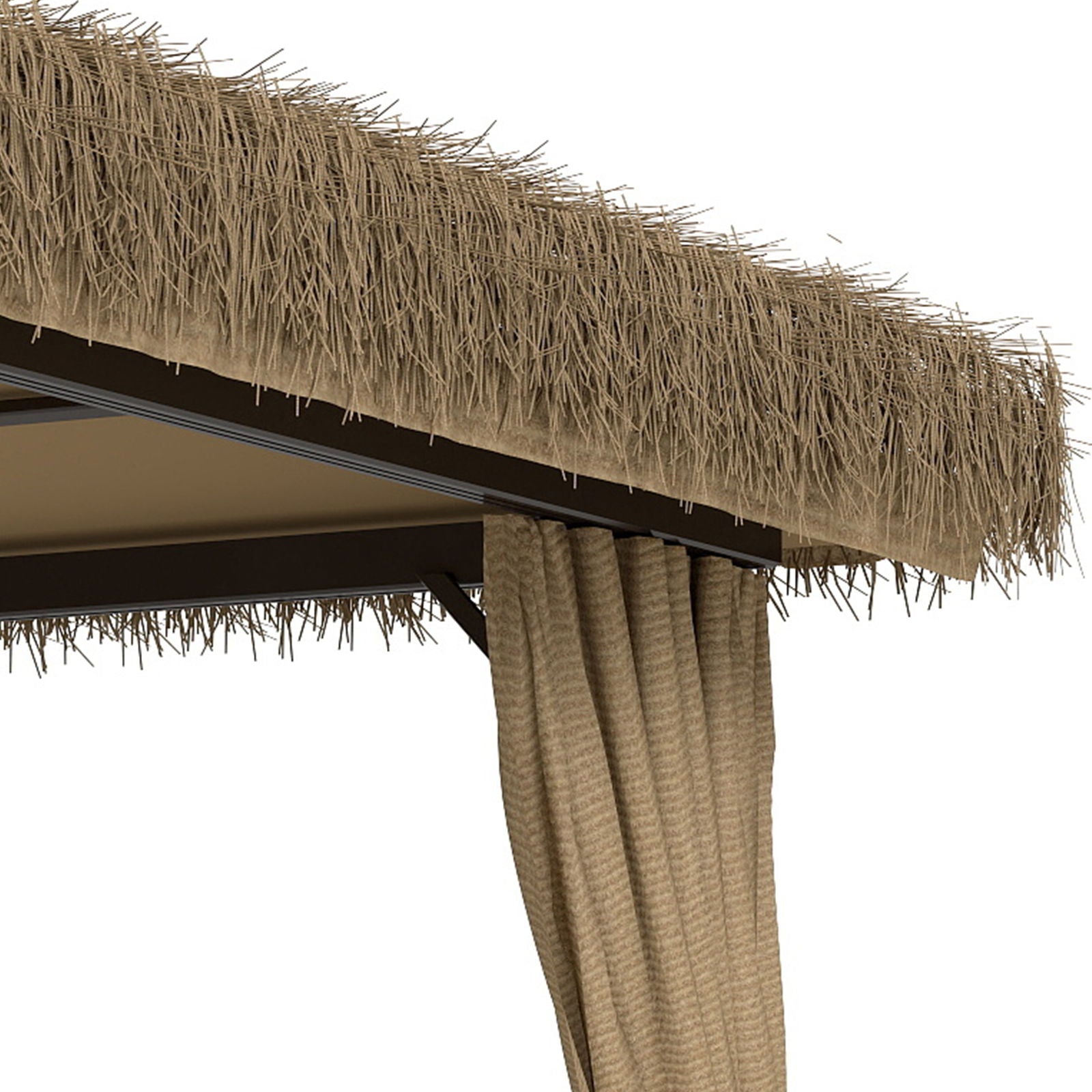 Outdoor Patio Gazebo With Double Canopy, Mosquito Net & Privacy Curtain - Brown