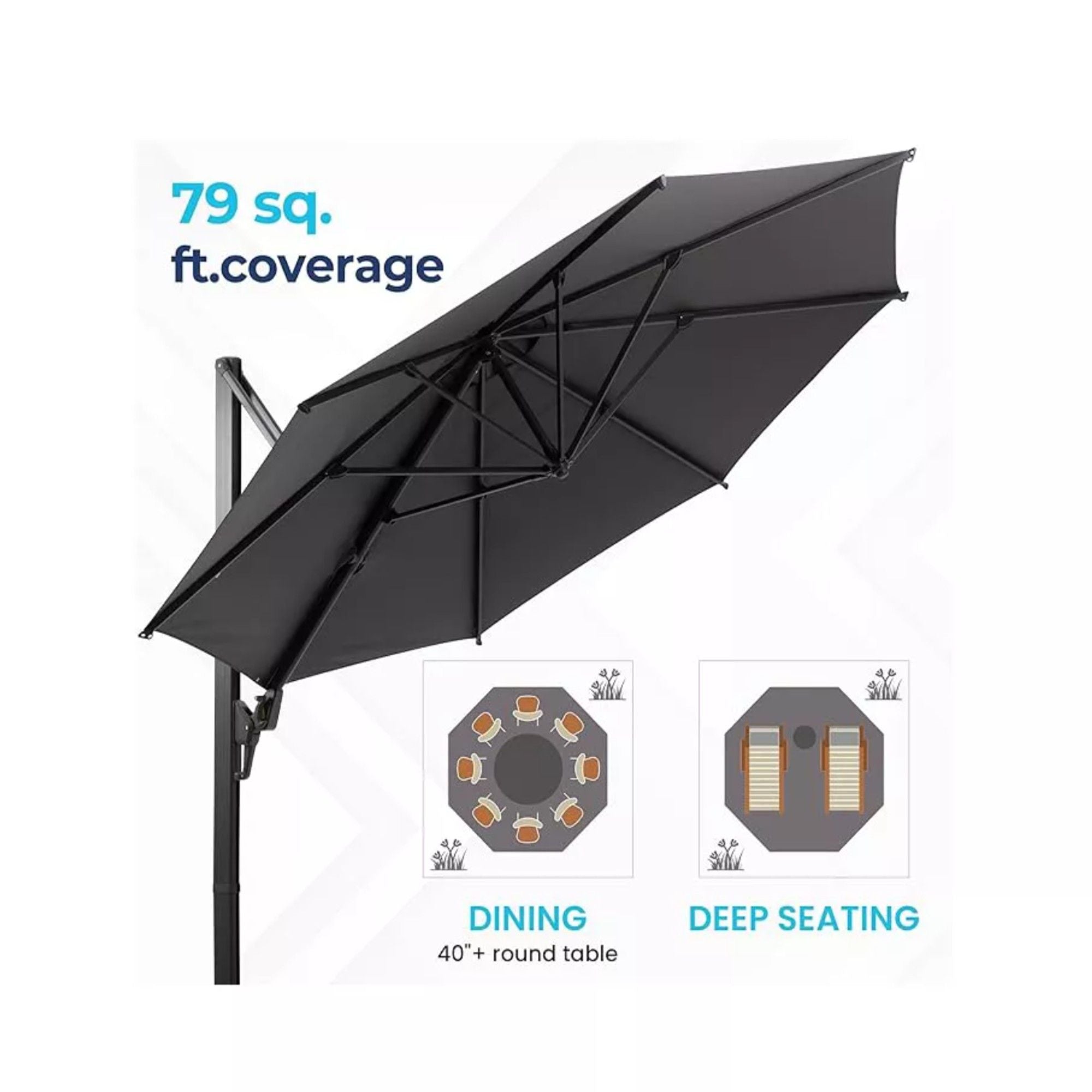 • Expansive Shade Coverage: round canopy provides over 95 sq ft of shaded area, ideal for large outdoor gatherings and seating zones.
