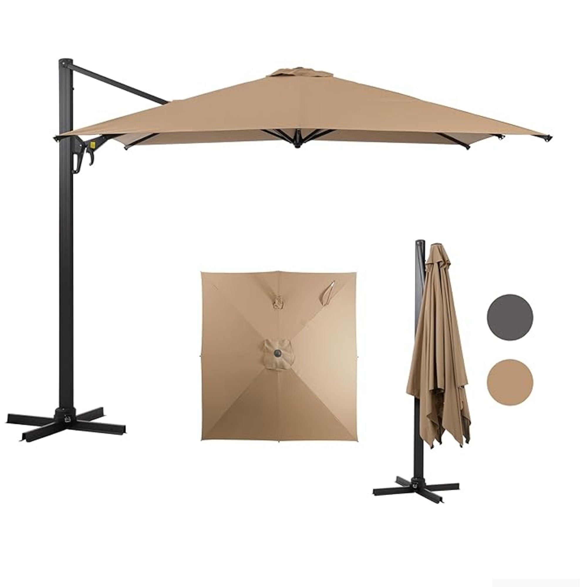 Square Cantilever Patio Umbrella With 360° Rotation & Infinite Tilt Adjustment, Heavy Duty Offset Canopy - Khaki