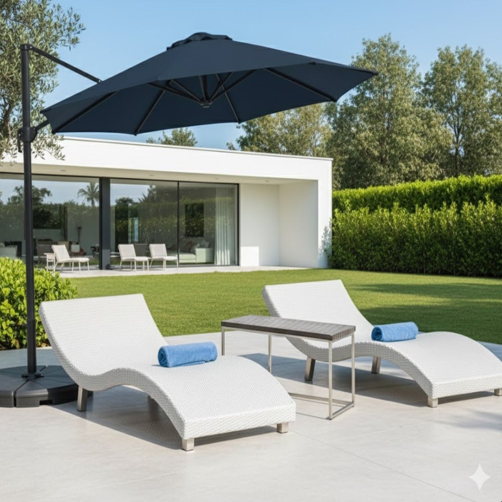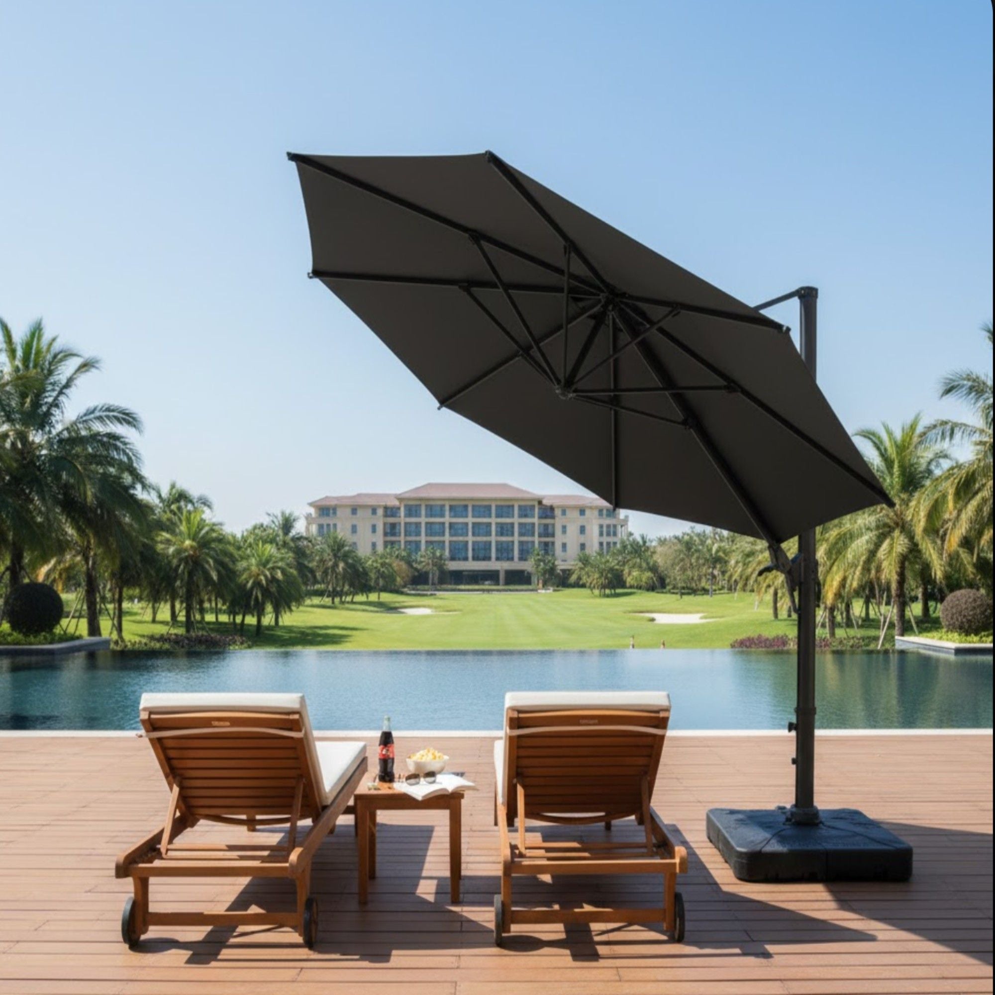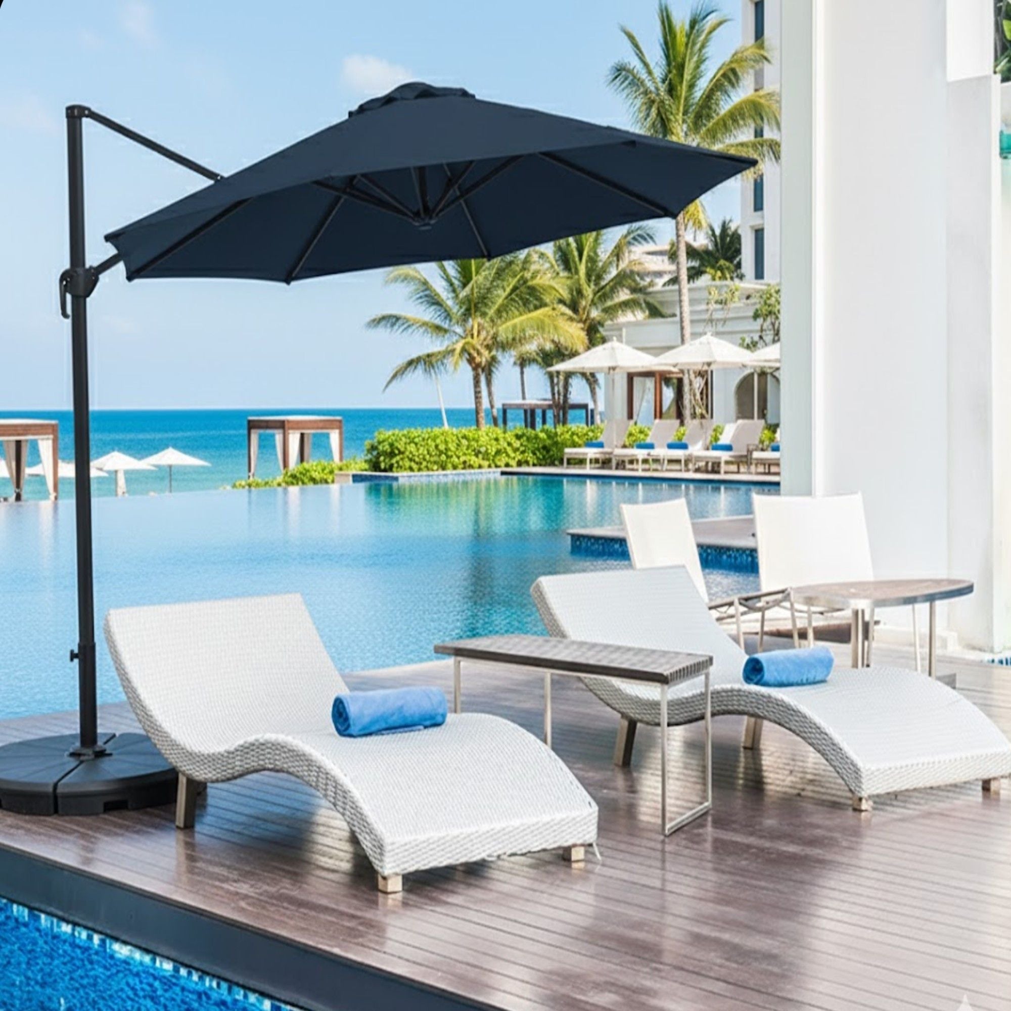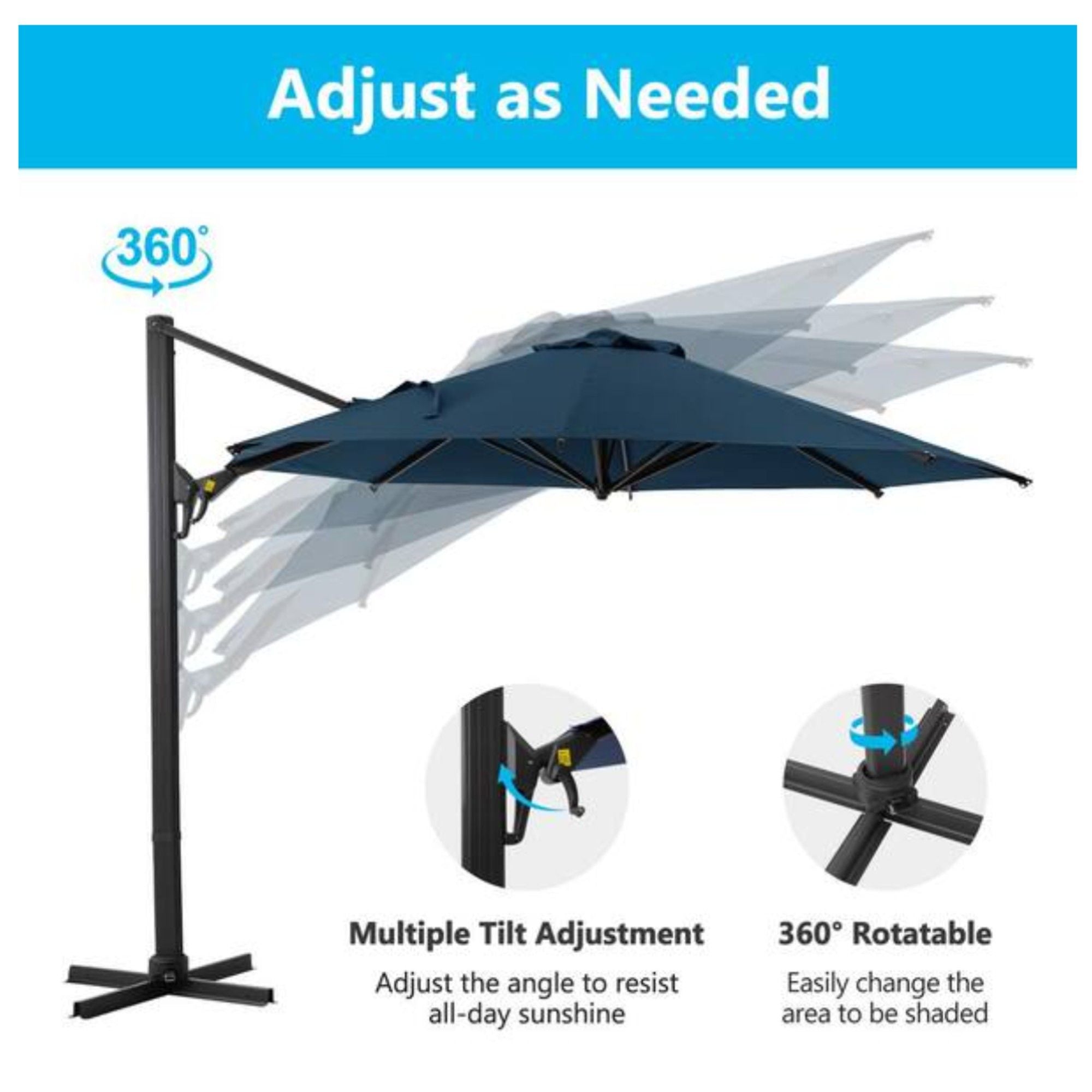 Round Cantilever Patio Umbrella With 360 Rotation & Infinite Tilt Adjustment