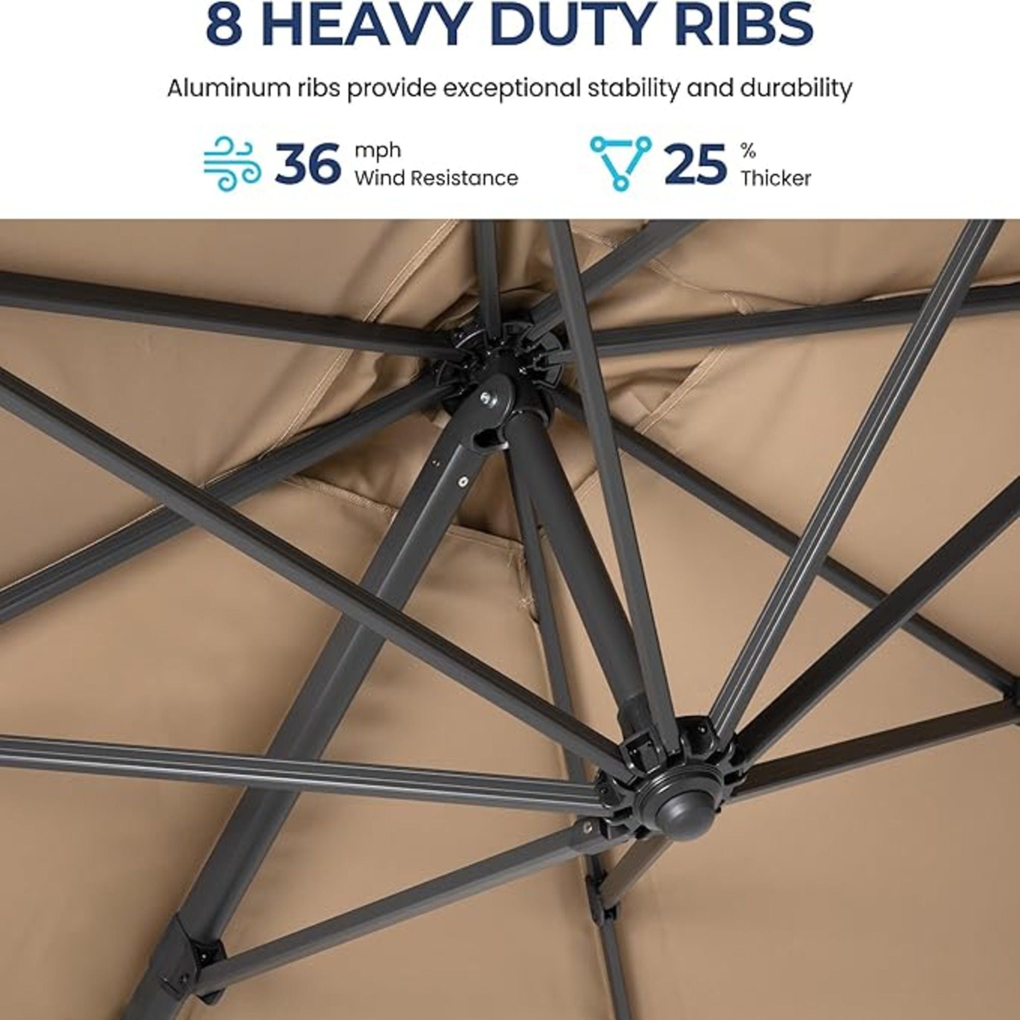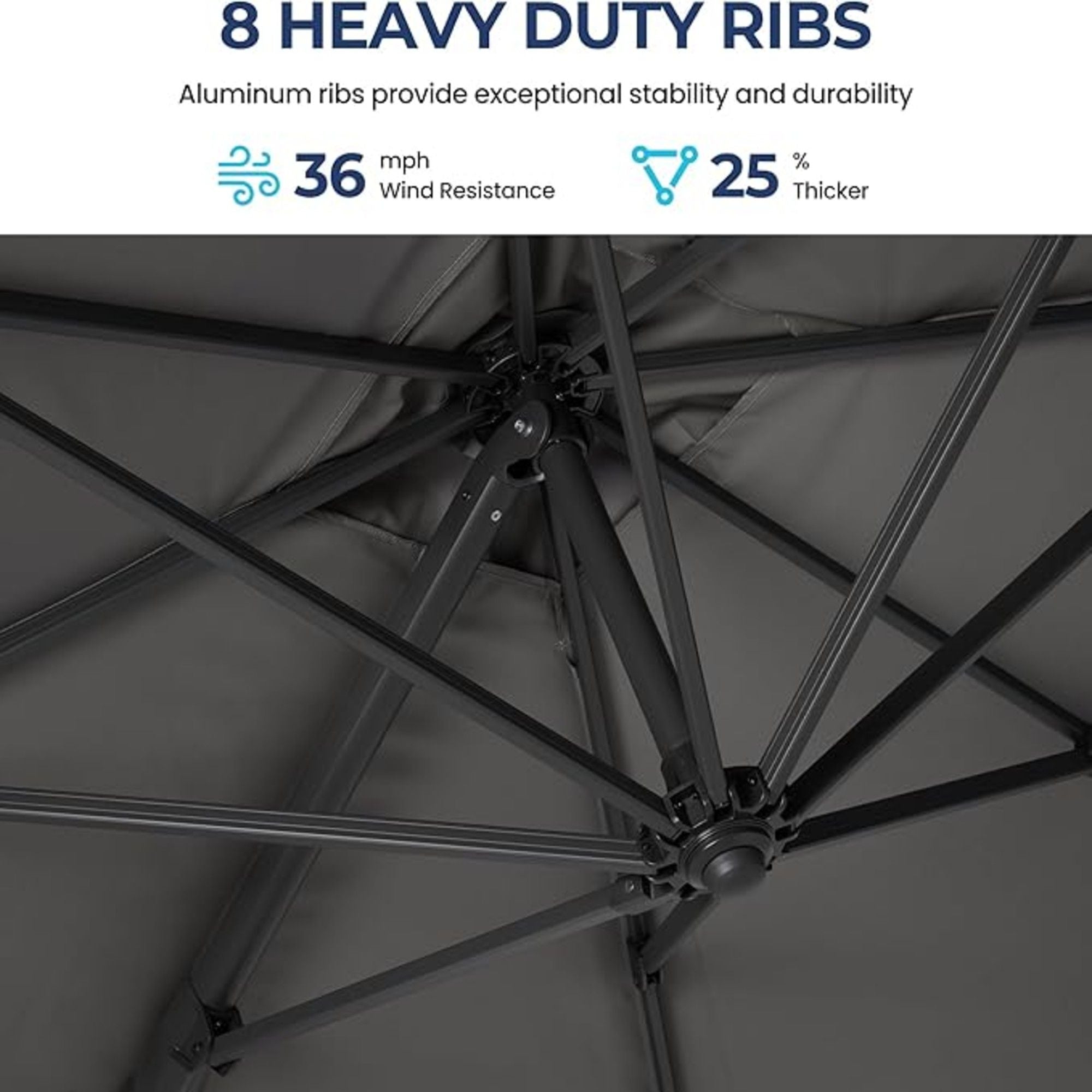 • Heavy-Duty Rust-Proof Frame: All-aluminum pole and iron ribs ensure strength and durability in all weather conditions.