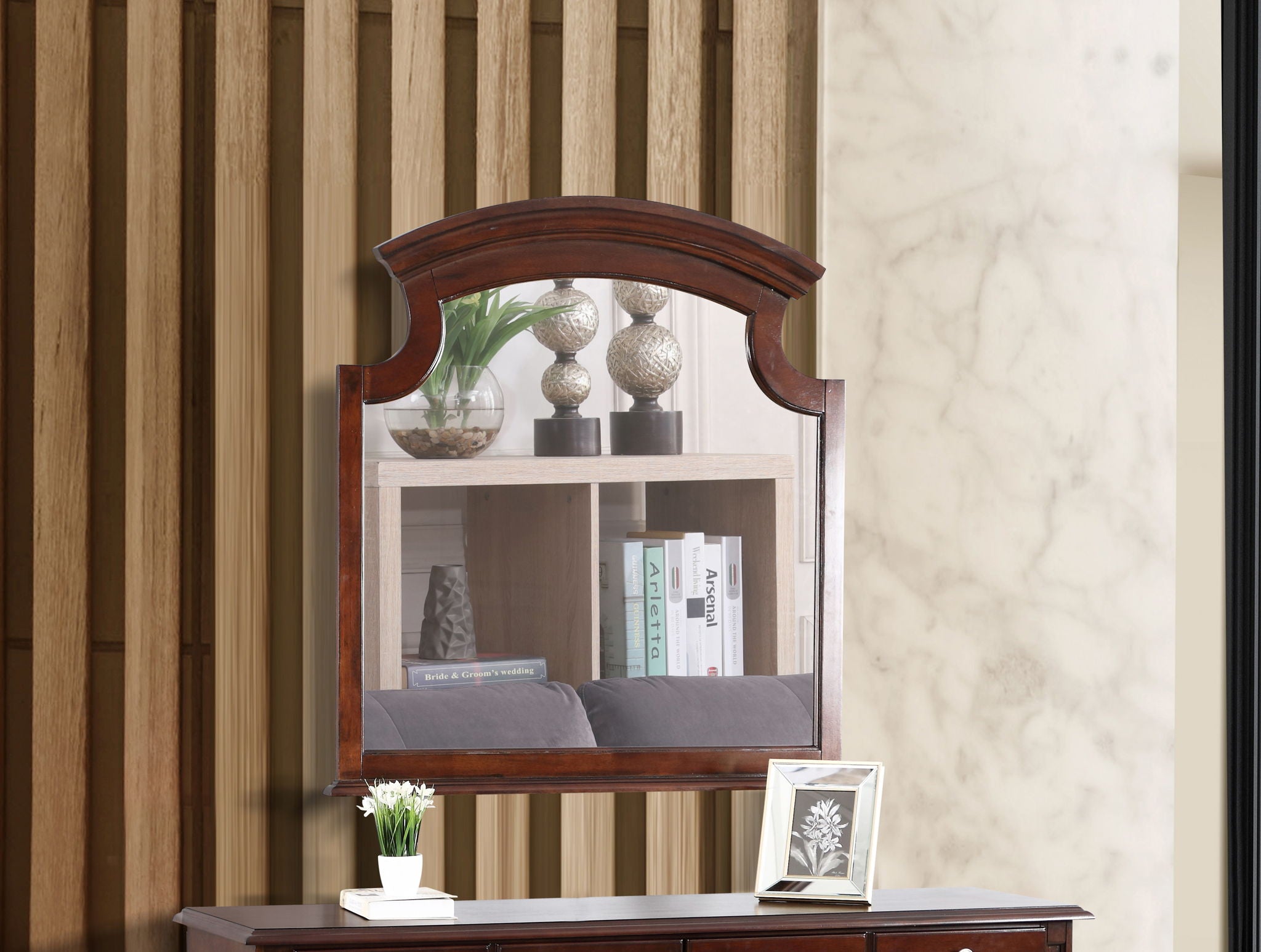 Real Wood Veneers: Provides clean, even finish with a touch of elegance. Carved Stylish Mirror: Uses low distortion glass for...