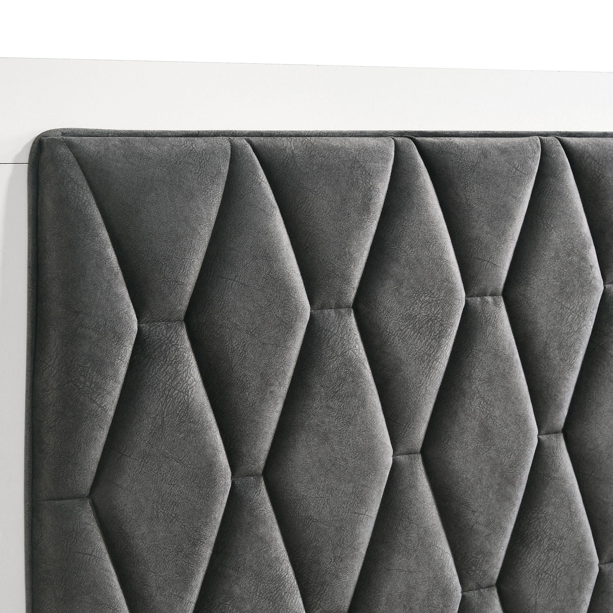 Elegant Hexagonal Tufting: Distinctive padded dark gray fabric with elongated hexagonal pattern highlights the headboard's modern design Sleek White Finish:...