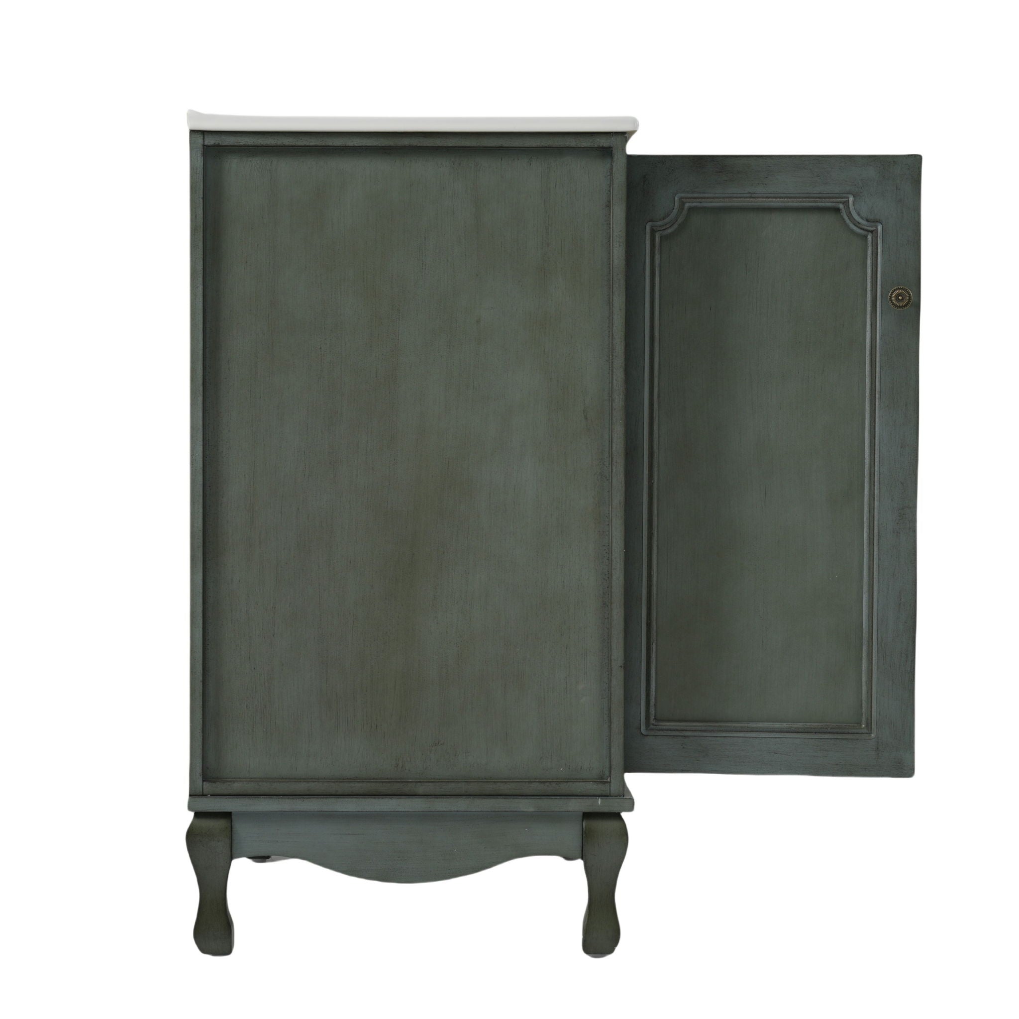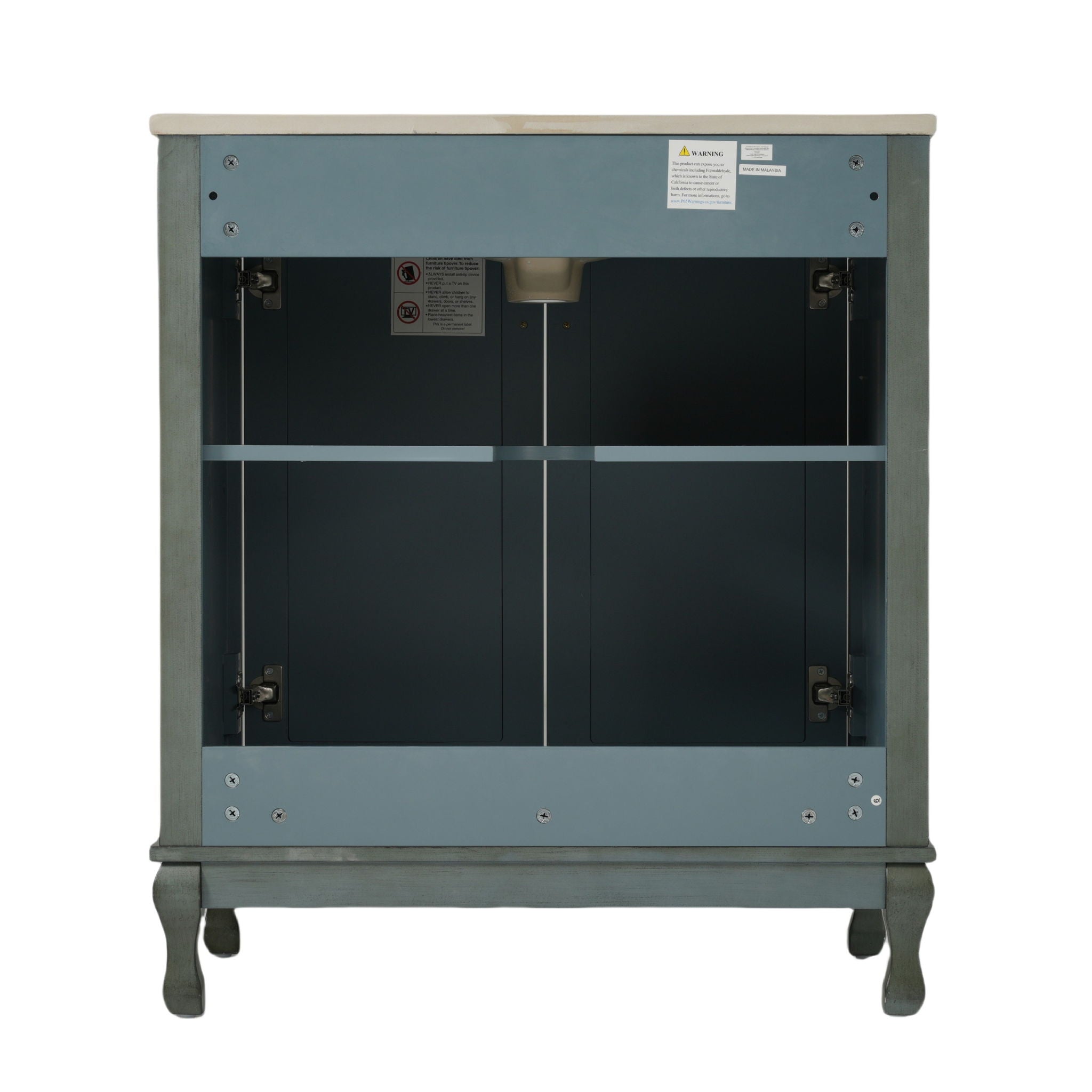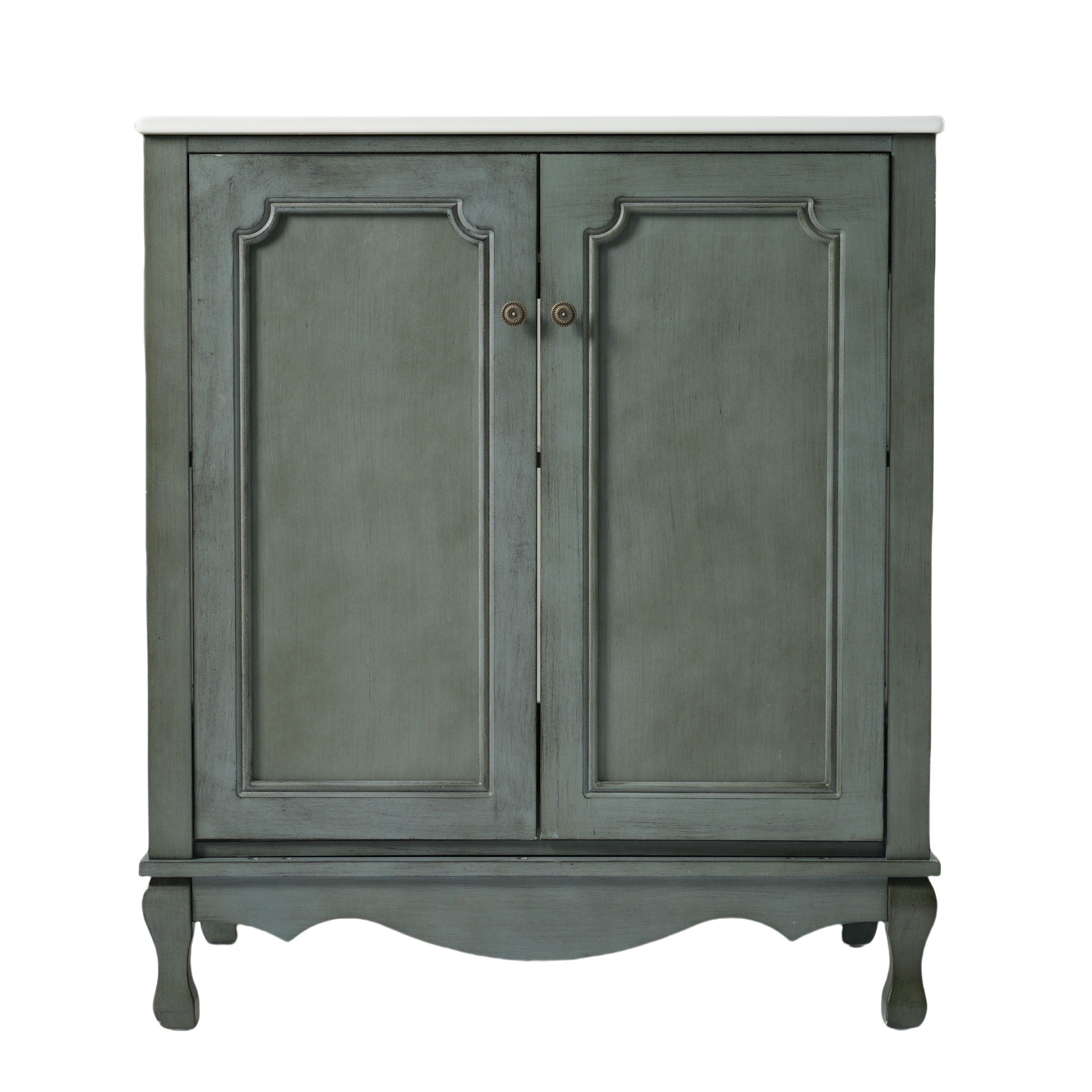 Seamless Cohesive Vintage Charm: Matching 30-inch vanities with identical antique knobs and weathered finish create a unified retro look when...