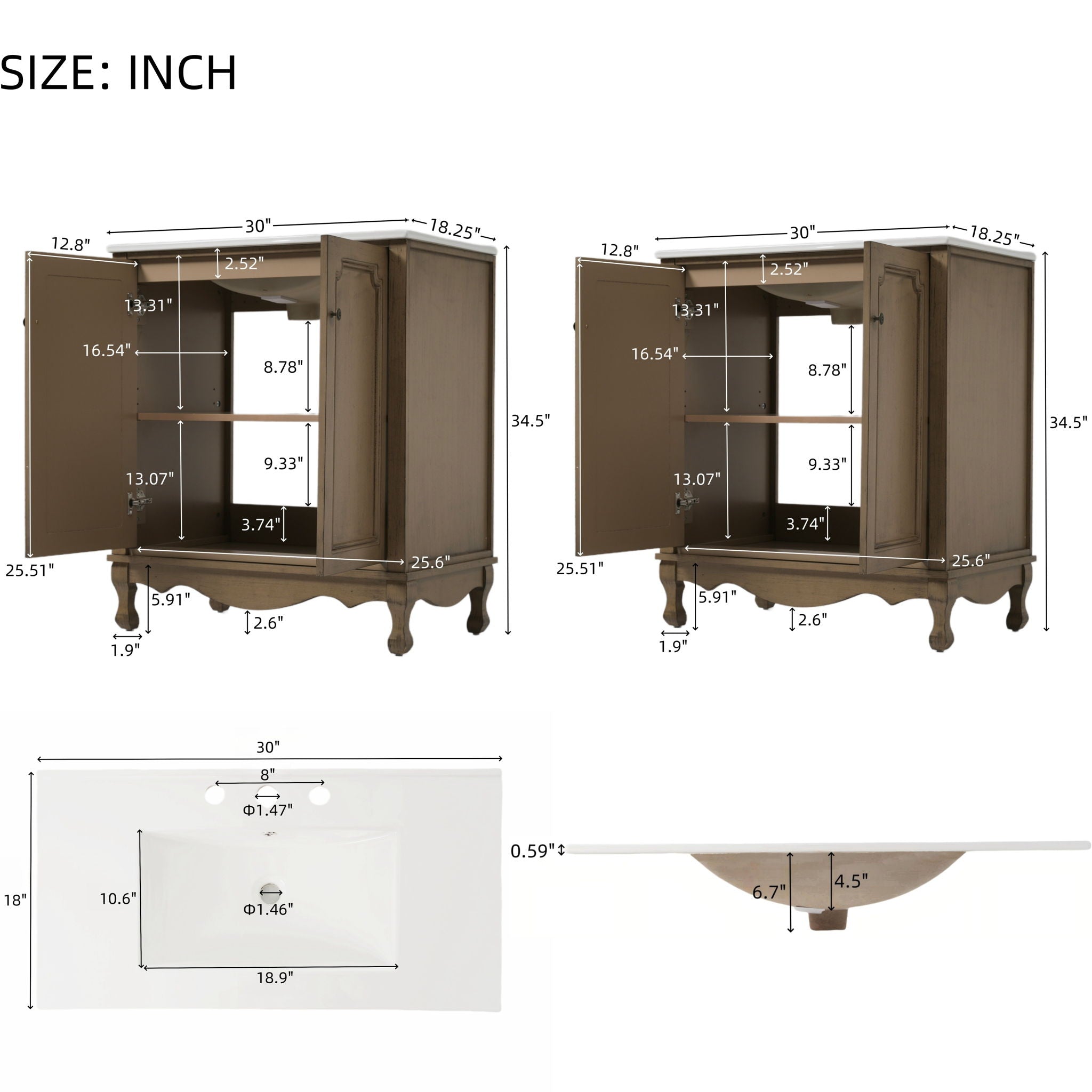 Vintage Double Sink Bathroom Vanity Set With Ceramic Sinks