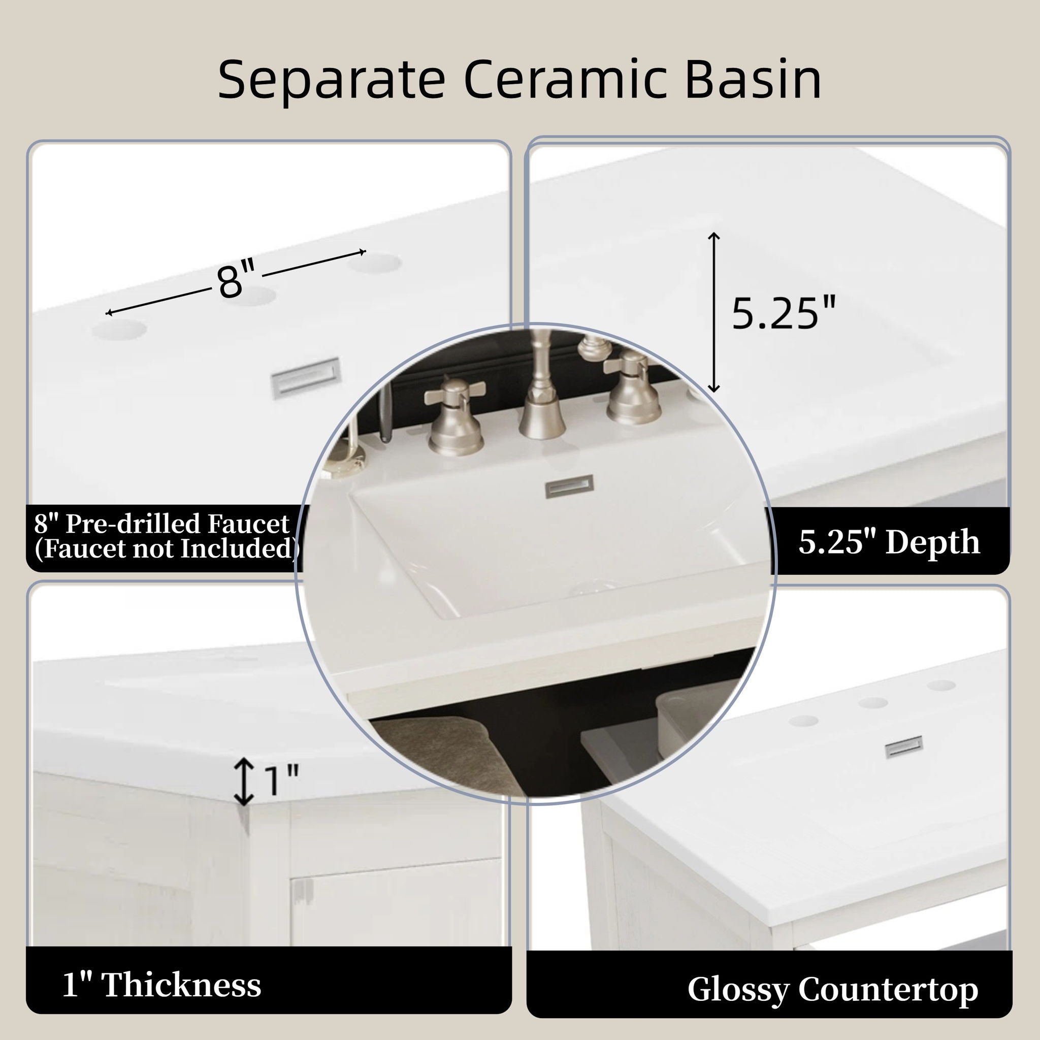 Vintage Farmhouse Design: finish with faux aged details creates a timeless, rustic look that complements various bathroom styles. Ceramic Sink...